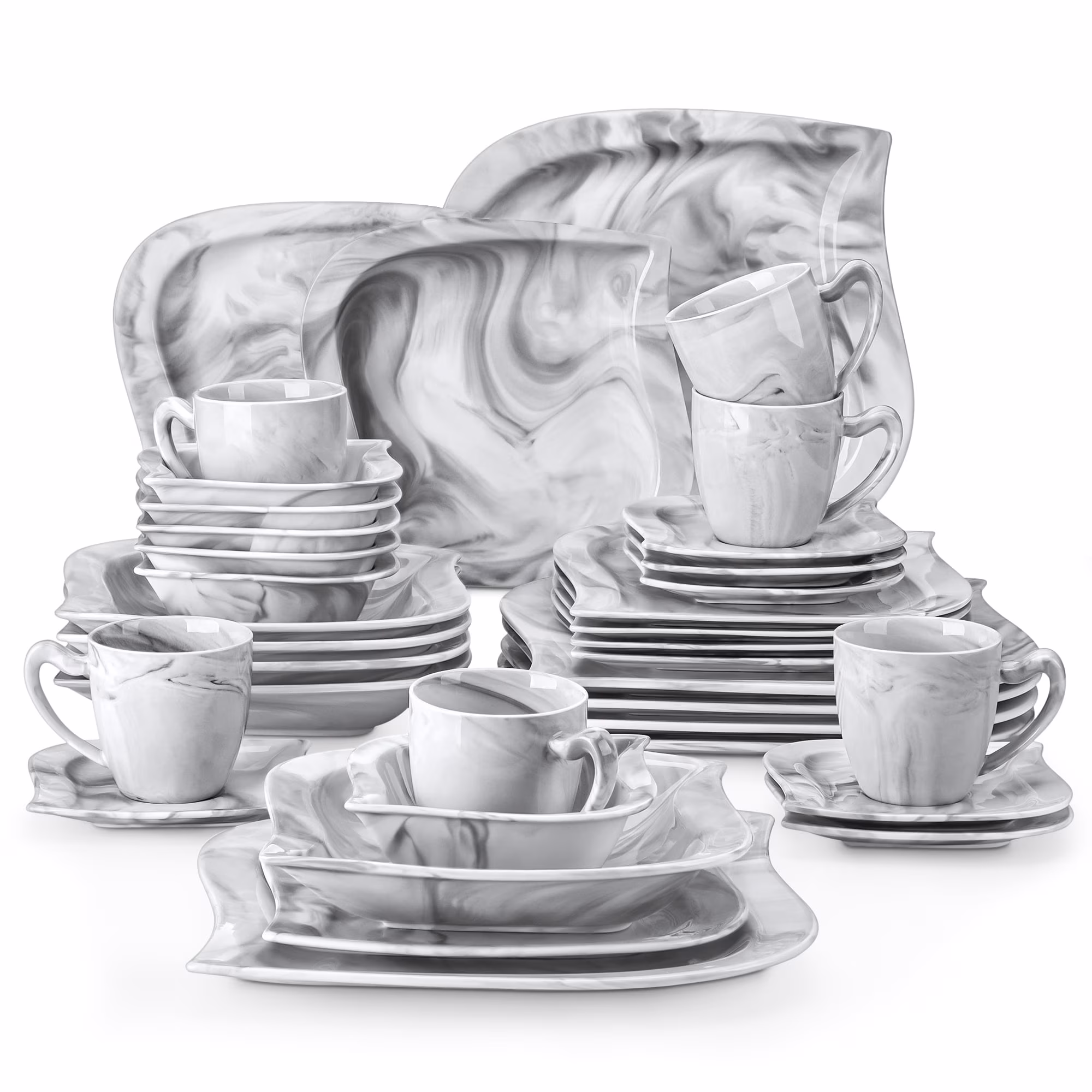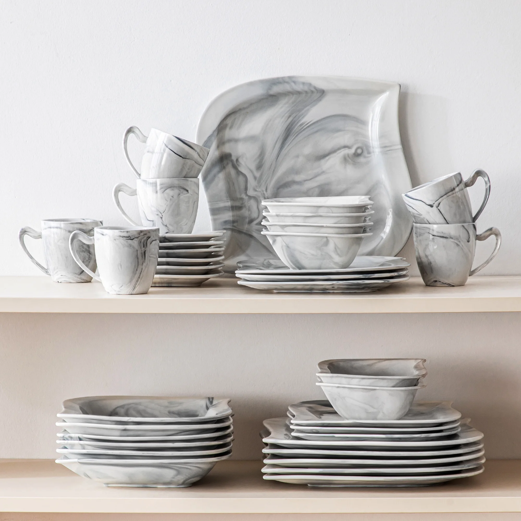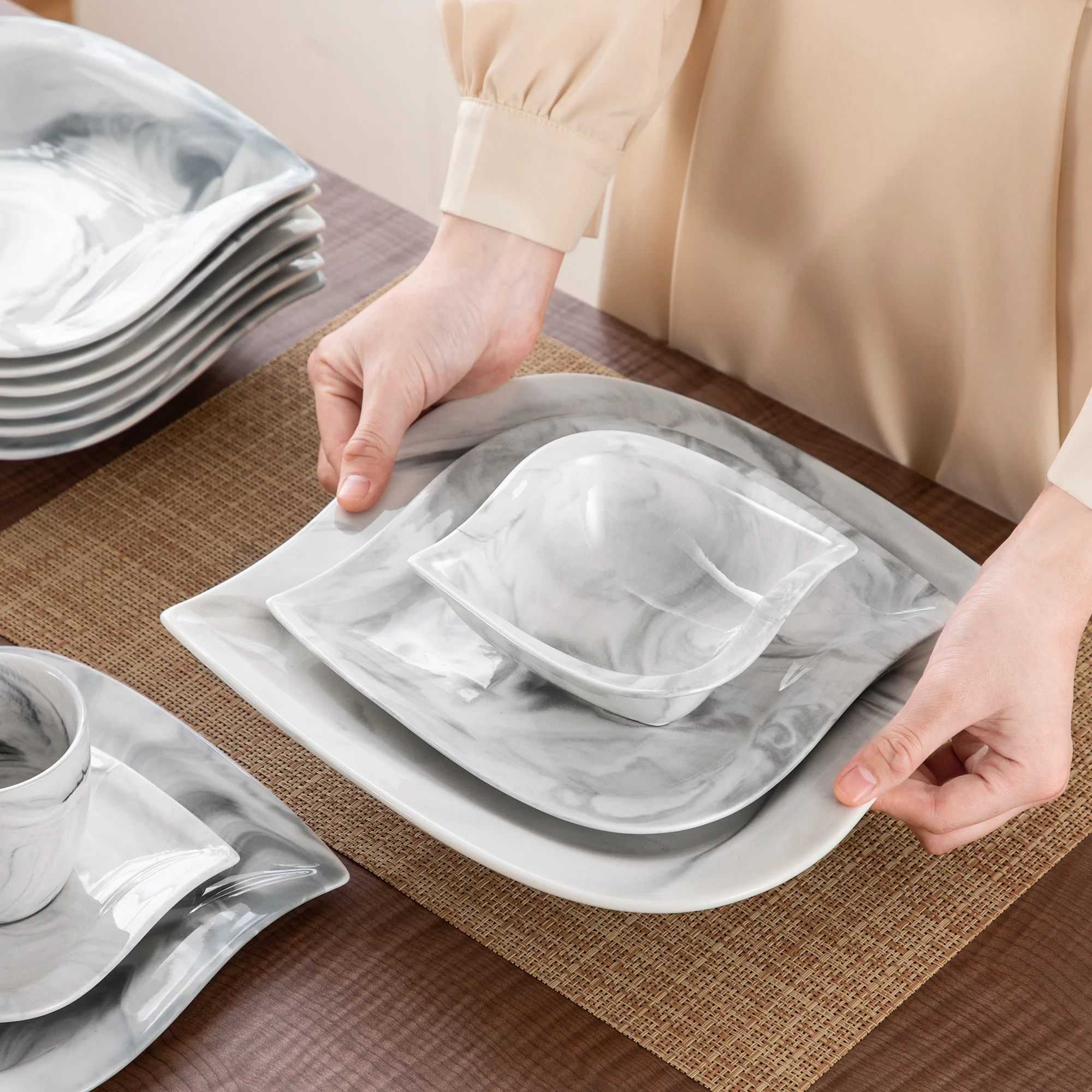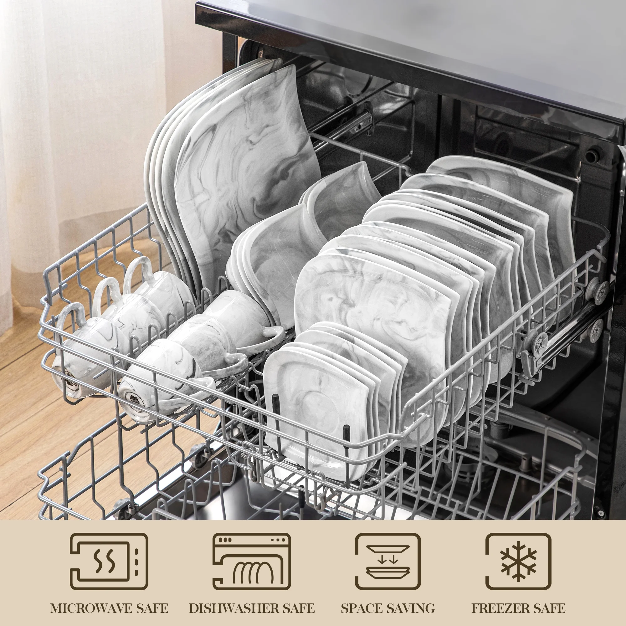Plates and Bowls Sets for 6 is matched with any kitchen style, ideal for any family get-together, restaurant, formal banquet, etc. Marble Gray dishes dinnerware sets also make a great gift for home d��cor, housewarming, wedding, family reunion, or other party. -