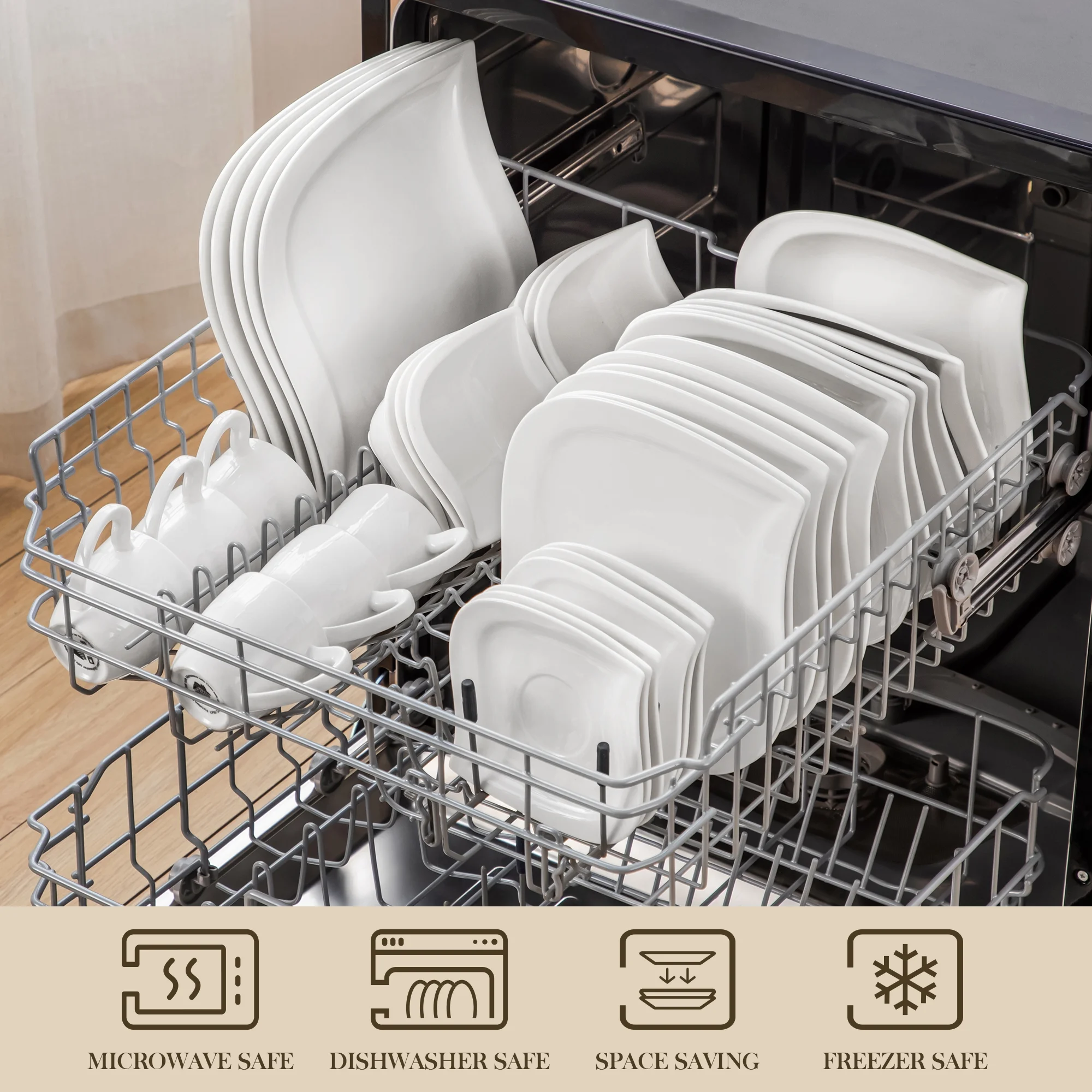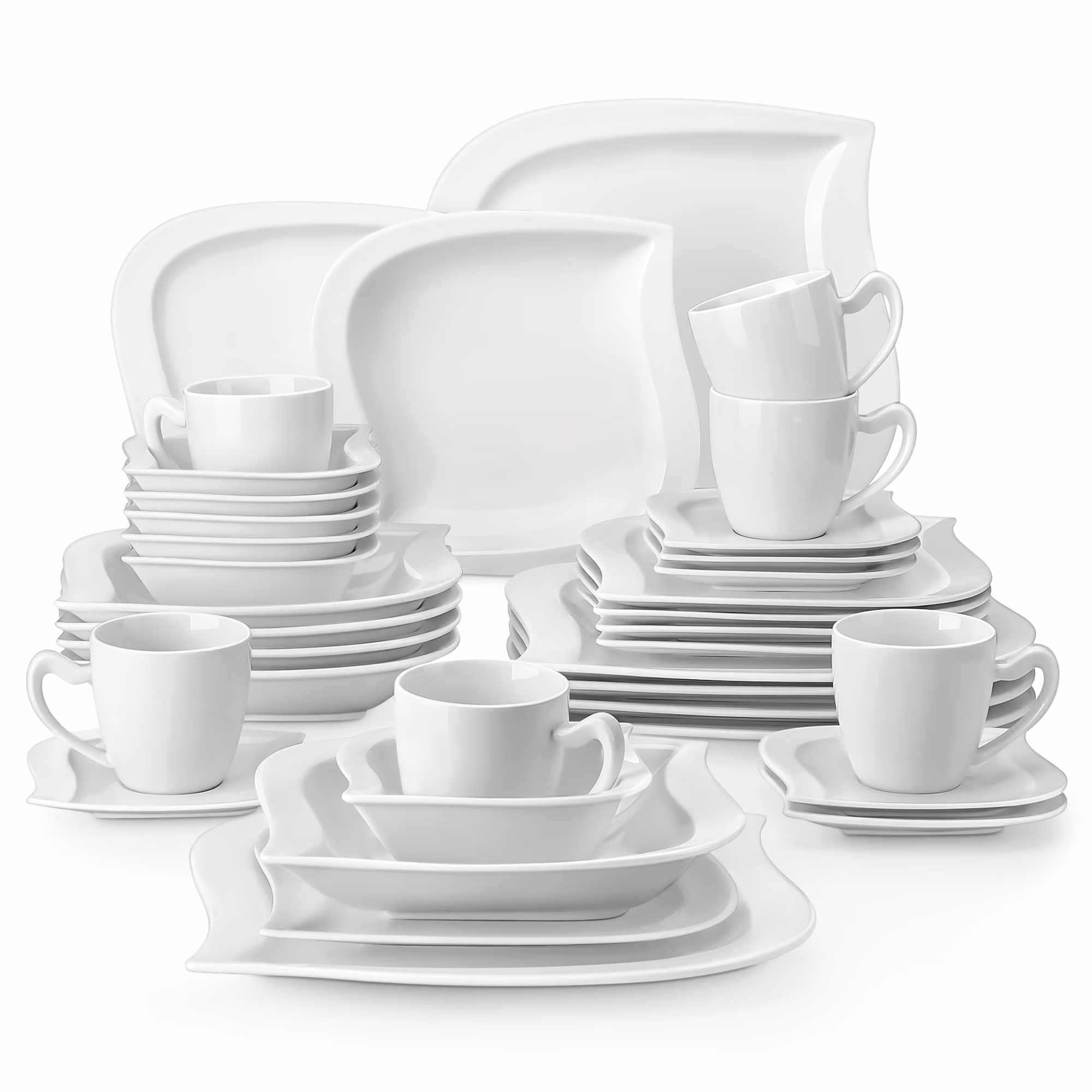 Tableware sets service for 6 includes: 6 Dinner Plates, 6 Dessert Plates, 6 Soup Plate, 6 Cup Holder, 6 Coffee Cup, 6 Cereal Bowls.