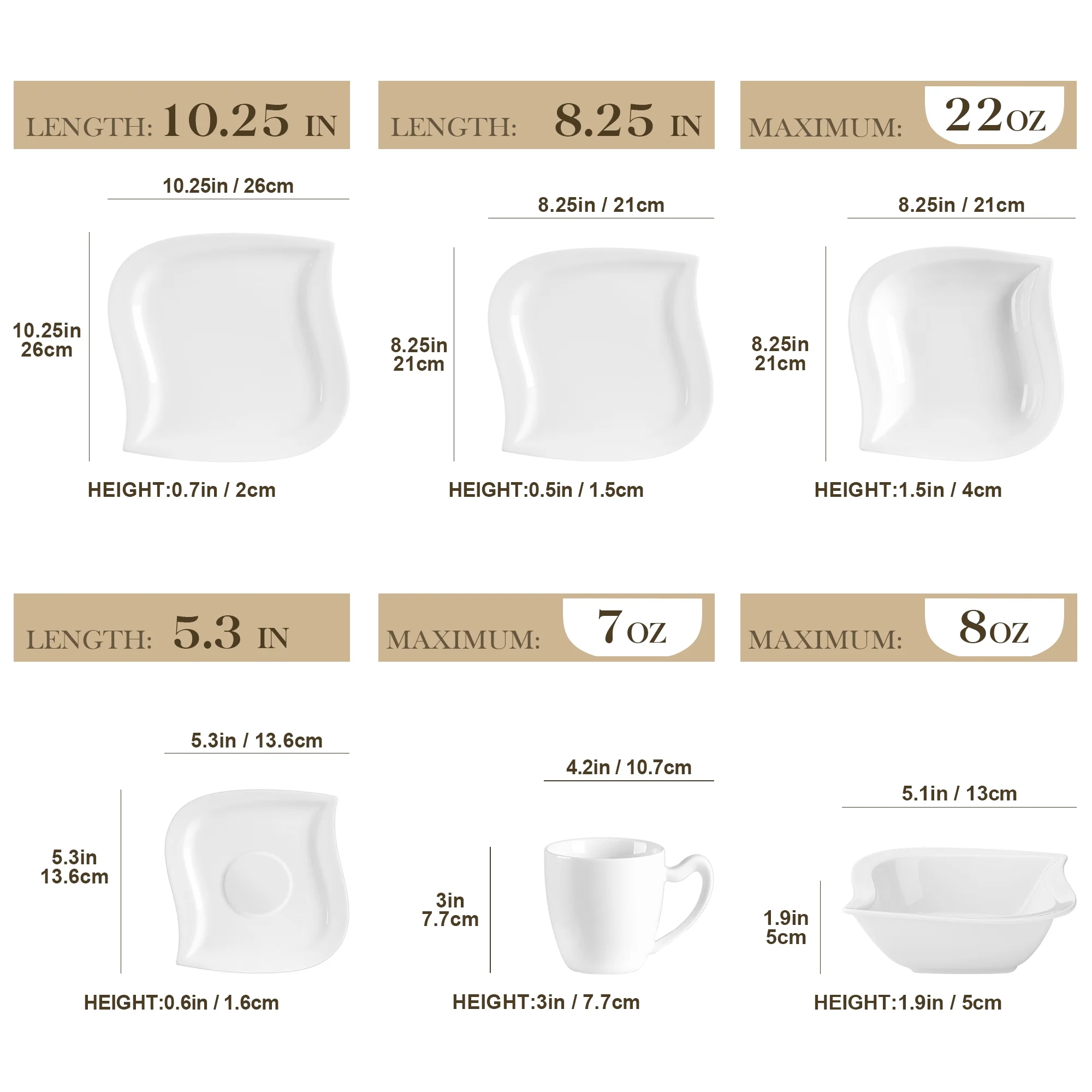 Dinnerware set of 6: 36 piece dinnerware sets for 6 includes 6 of each of the following dishes: 10.25�� Dinner Plates, 8.25�� Dessert Plates, 22 OZ Soup Plate, 5.3" Cup Holder, 70 OZ Coffee Cup, 8 OZ Cereal Bowls.
