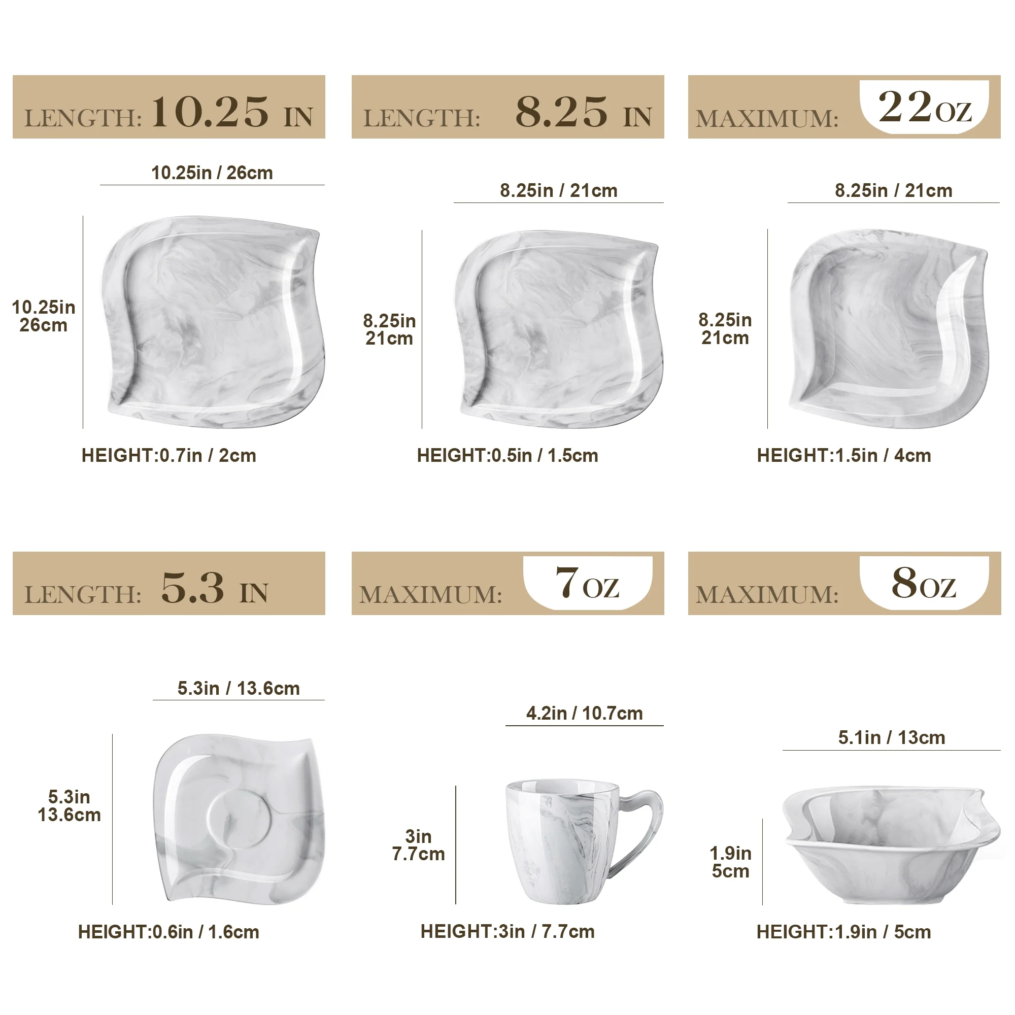 Quality & Minimalist Design��Marble Gray is exudes elegance, simplicity. Plates and Bowls Sets are versatile and can complement various table settings and dining styles. They can effortlessly blend with different colors, patterns, and themes, making them suitable for both casual and formal occasions.