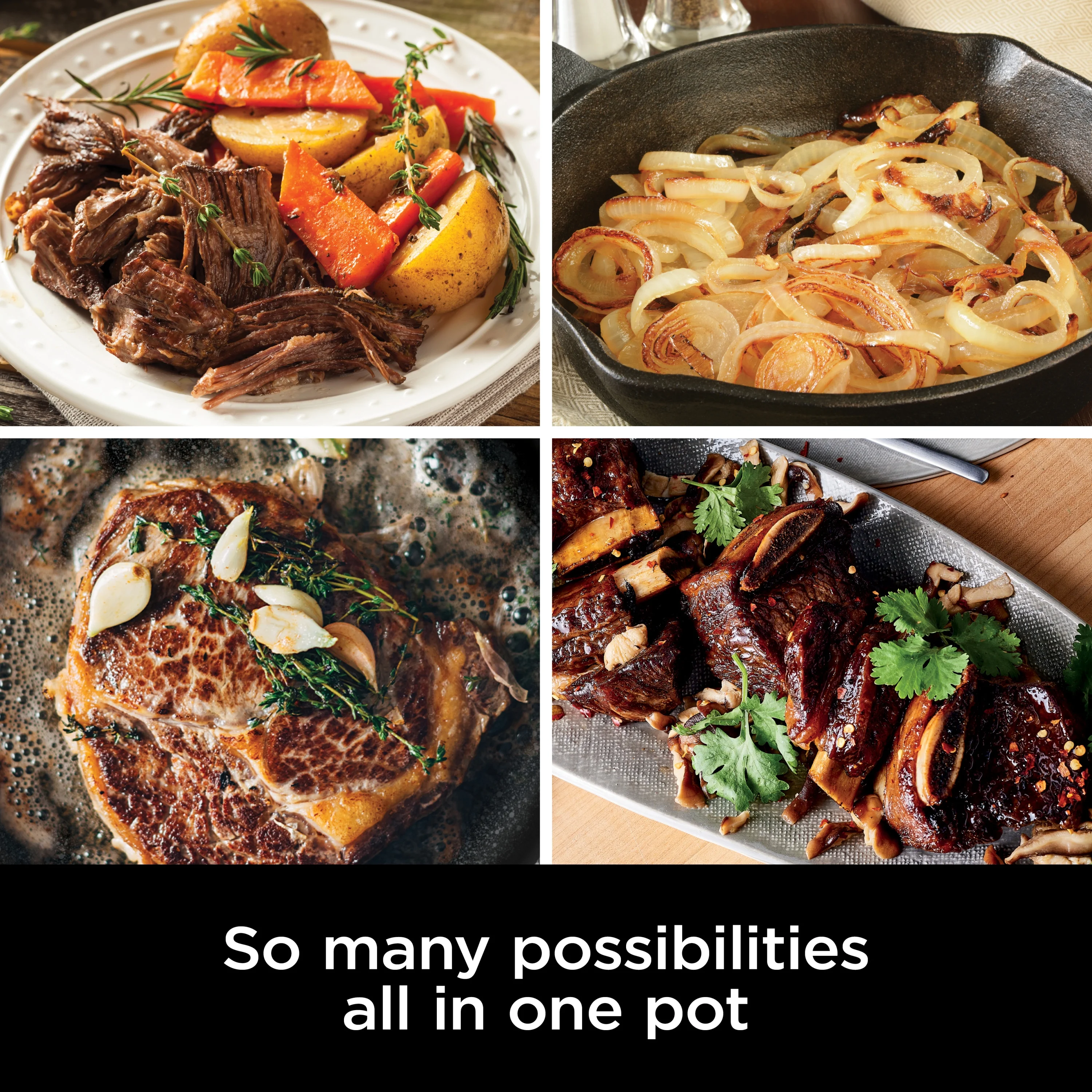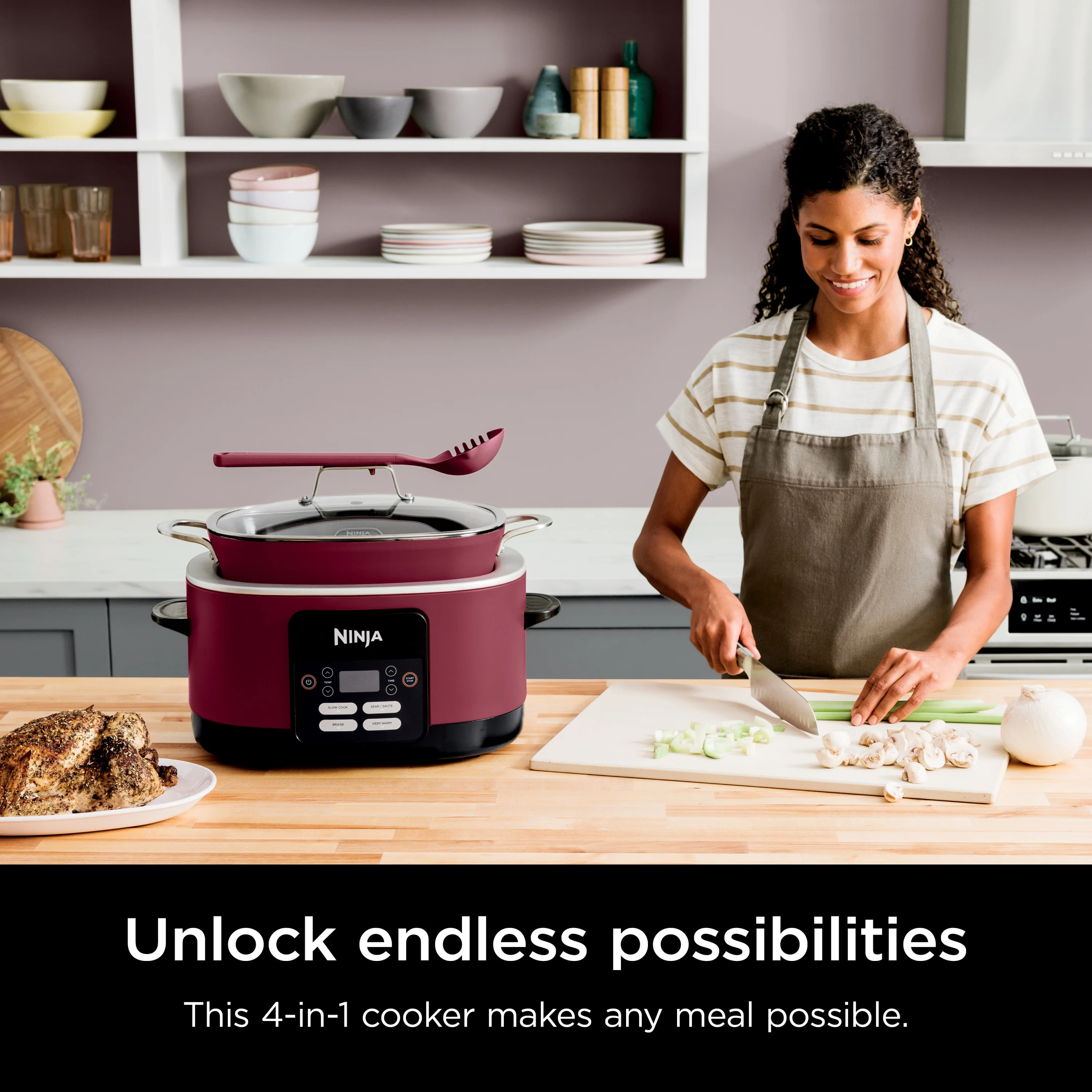- 4 COOKING FUNCTIONS: Slow Cook, Sear/Saute, Keep Warm, and Braise.