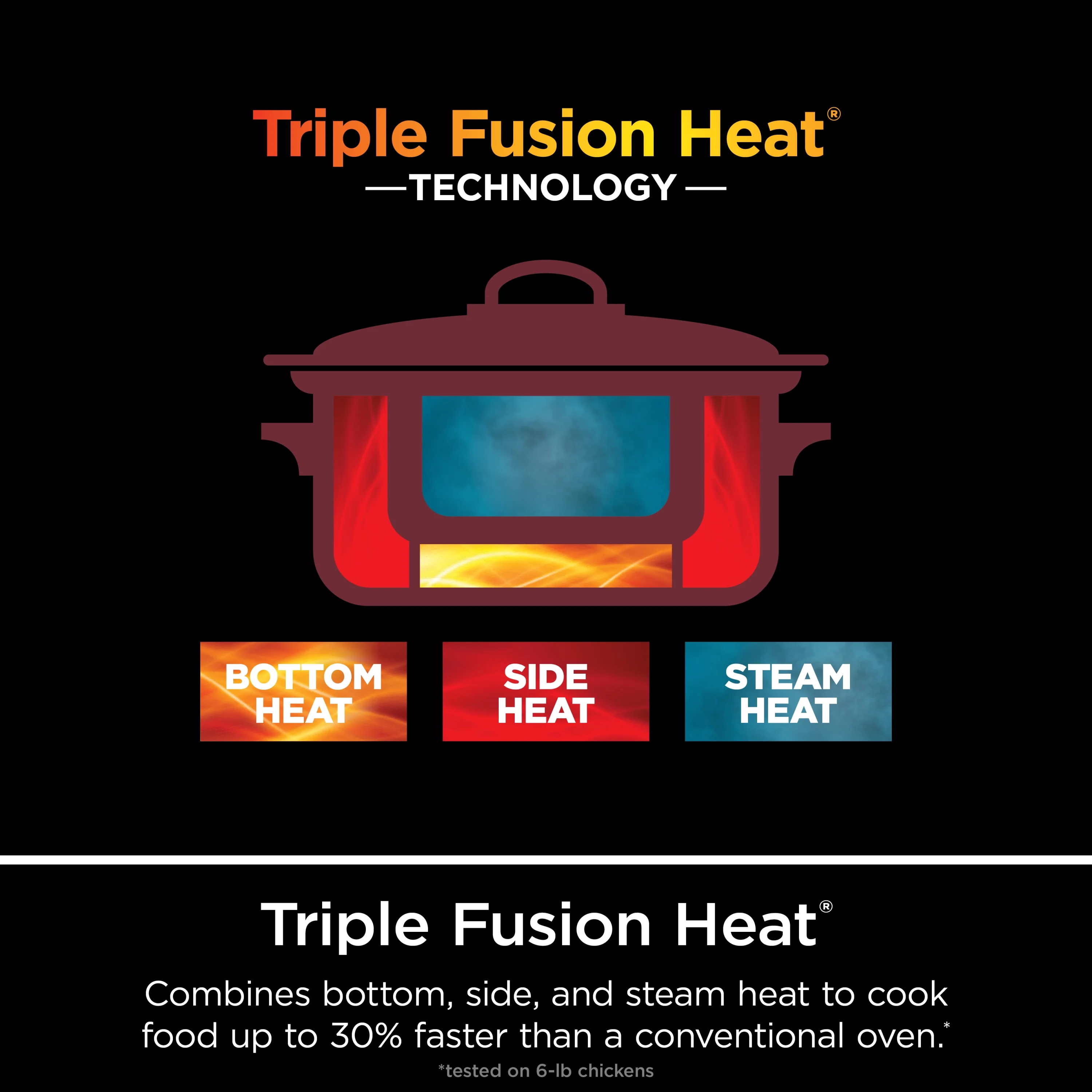 - TRIPLE FUSION HEAT TECHNOLOGY: Cook up to 30% faster* than conventional ovens by combining bottom, side, and steam heat. More heat, more possibilities. *Tested on 6-lb chickens.