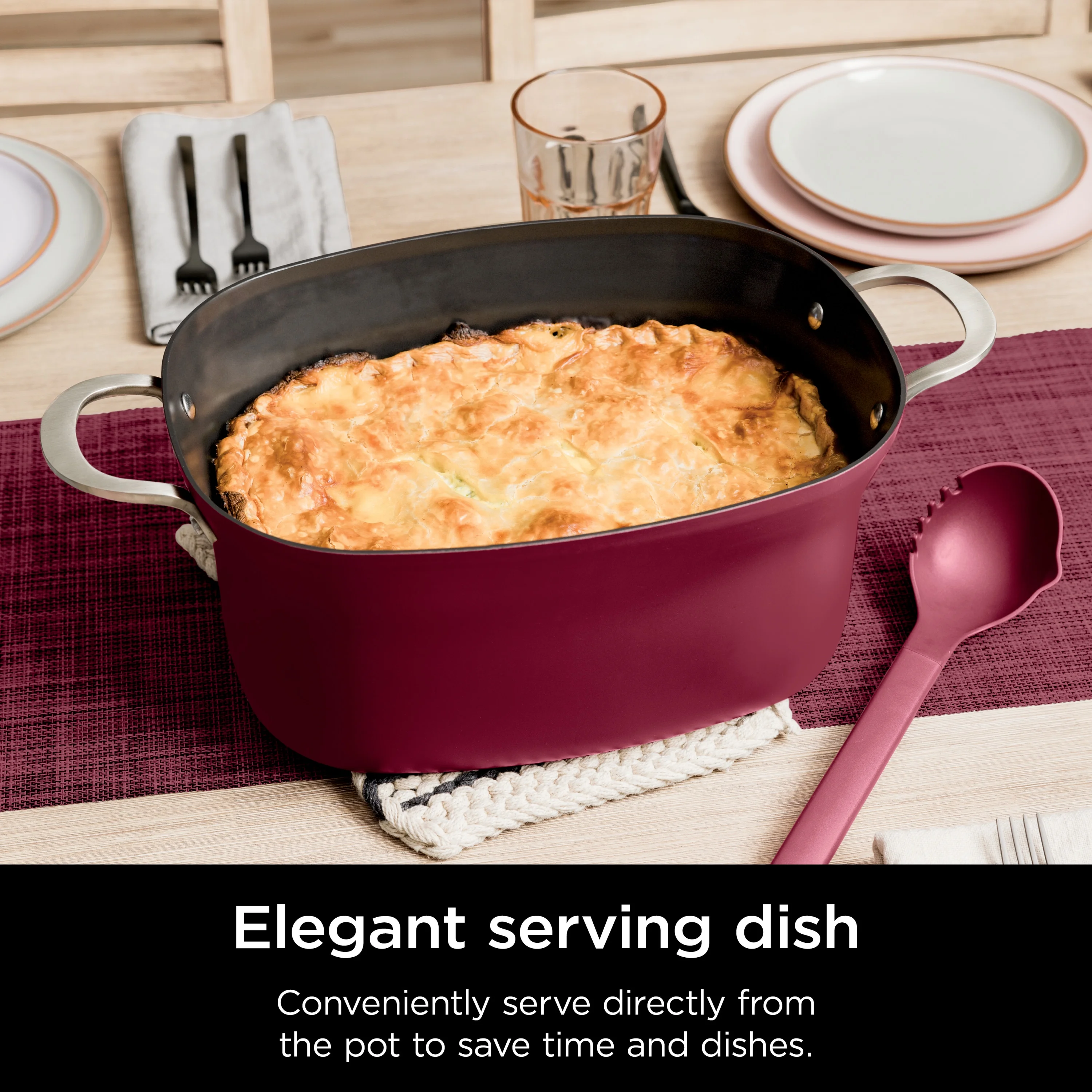 - INCLUDED UTENSIL: Multi-functional utensil works as a ladle and pasta fork, plus it has its own utensil rest right in the lid handle.