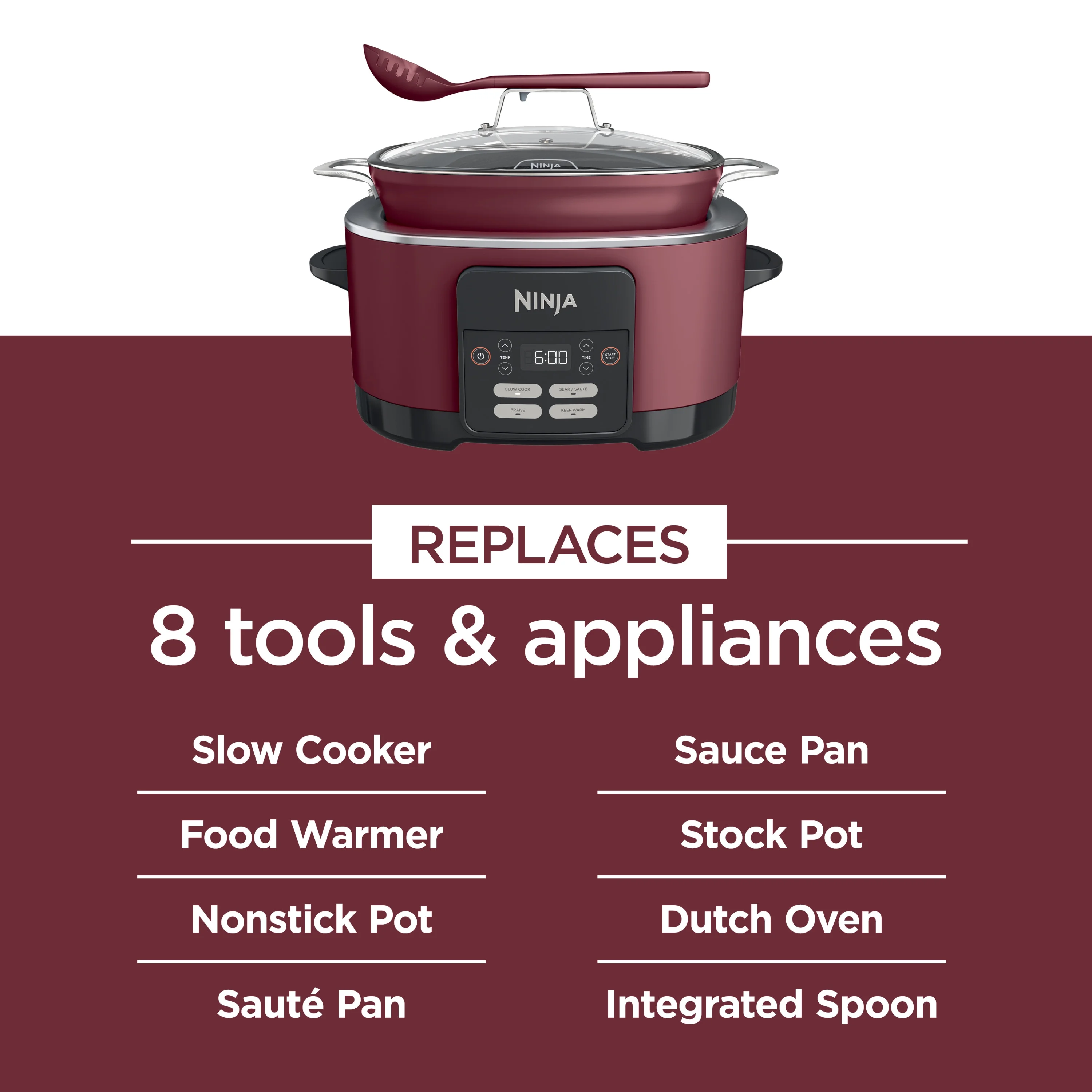 - REPLACES 8 COOKING TOOLS & APPLIANCES: This cooker replaces the need for a slow cooker, food warmer, nonstick pot, saute pan, steamer, stock pot, Dutch oven, and utensil.