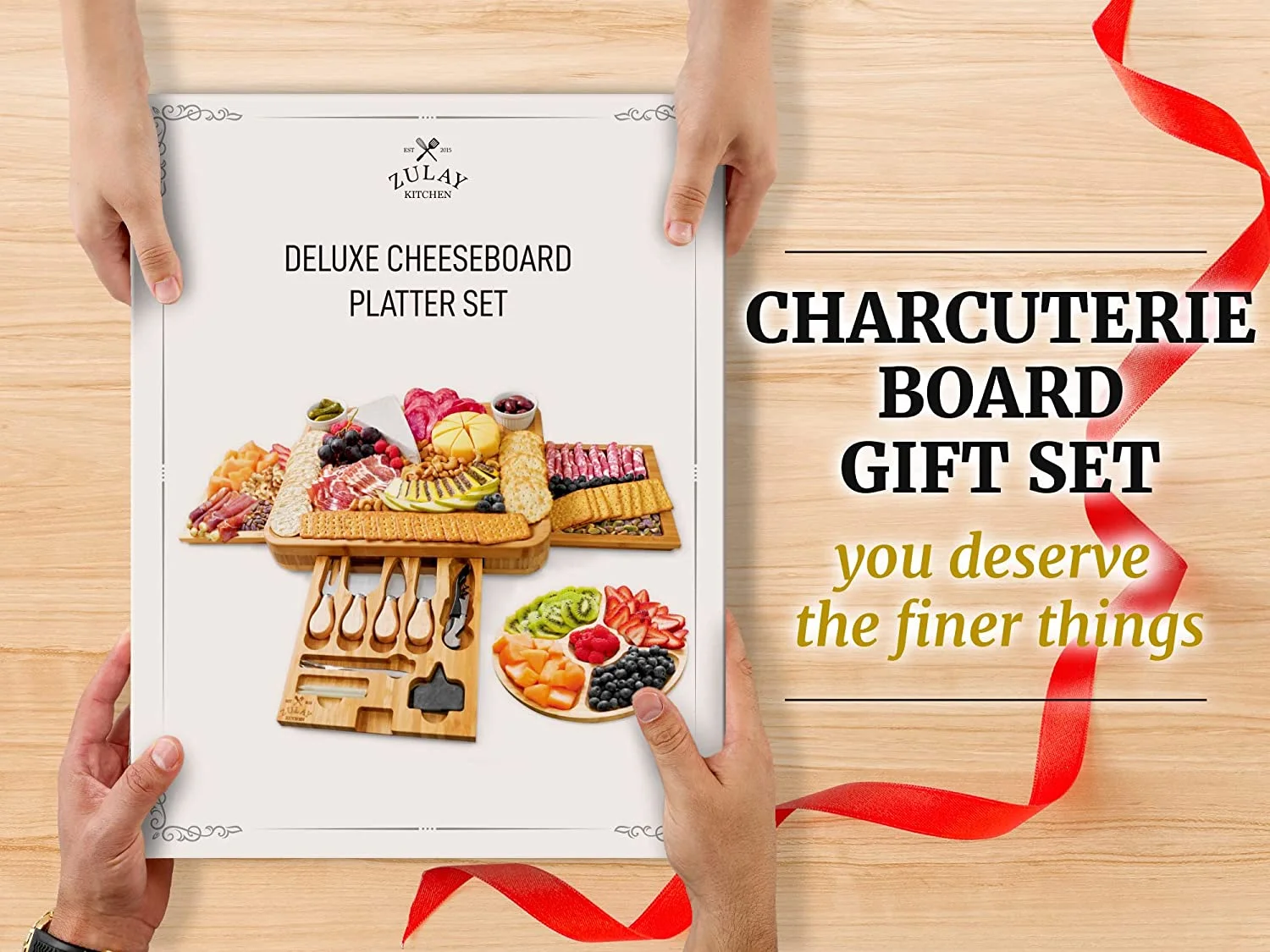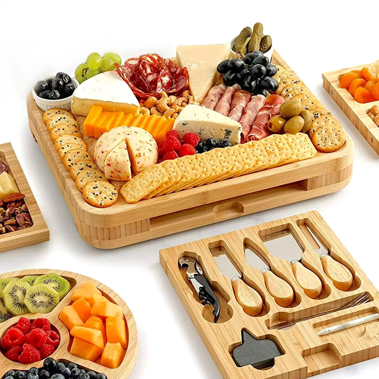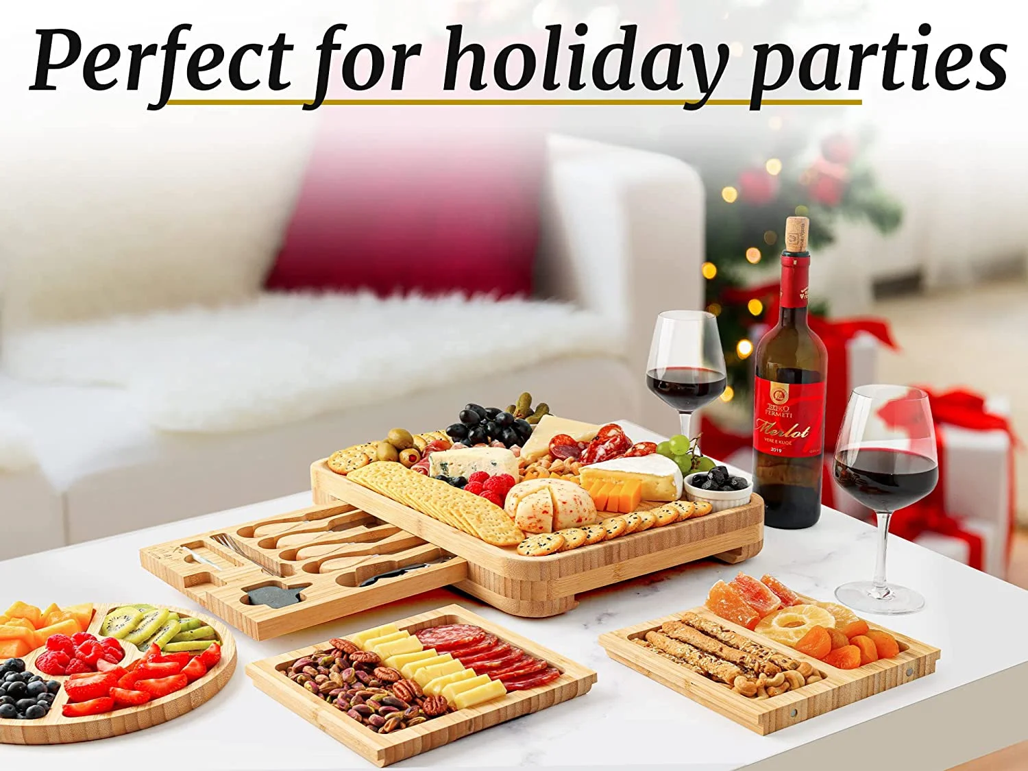 - DELUXE CHEESE PLATTER: Set to be a crowd favorite, this fancy cheese and cracker board is what you need at your next family or friends gathering; crack open a bottle of wine using our wine opener to start the evening. Experience elegance and quality with our cheese board made of 100% natural and eco-friendly bamboo wood.