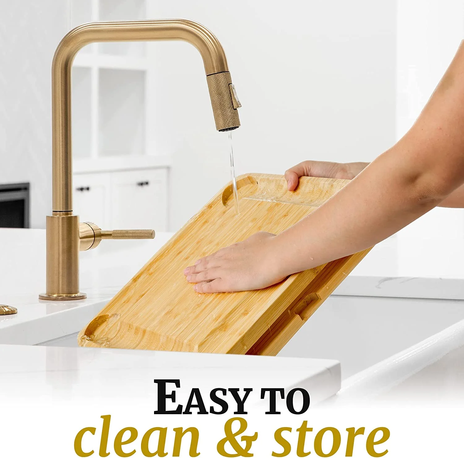 - MESS-FREE, KITCHEN FRIENDLY SET: Wipe away the platter with water and soap; premium bamboo wood with a smooth finish keeps the cheese serving set stain free and prevents the absorption of bad odors even after cleaning. 4 silicone non-slip feet keep the appetizer platter from sliding off the kitchen counter