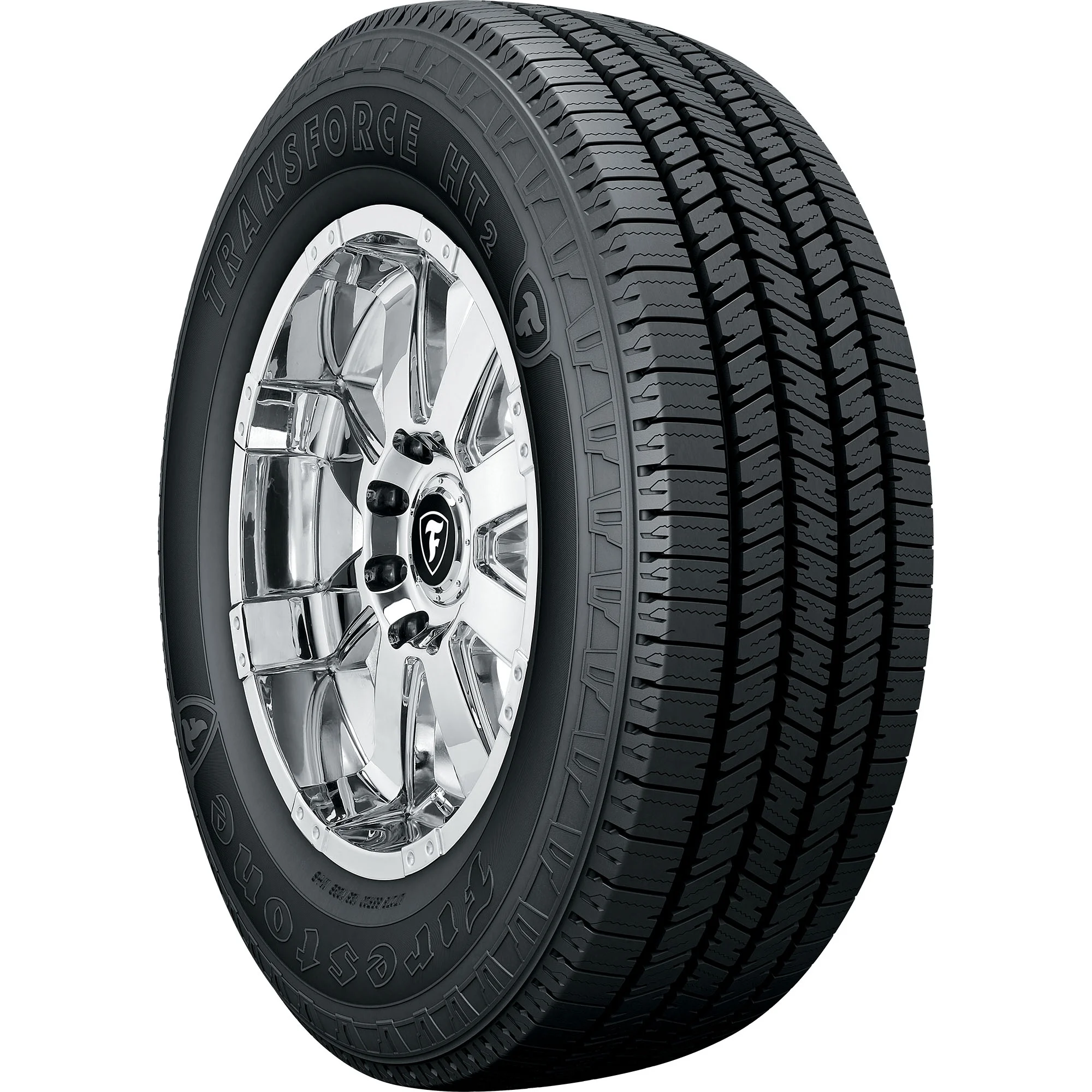The Firestone Transforce HT2 is and all-season tire designed for use on light trucks and commercial vans and features and optimized design that increases ride comfort and fuel efficiency. and optimized design boosts strength and durability for a higher load carrying capacity and to prevent uneven wear, and the Transforce HT2's sawtooth edge siping bites into the road to increase grip on snowy roads. Wide grooves funnel water out of the tread to improve hydroplaning resistance, and the Transforce HT2's full-depth lateral sipes strengthen wet grip by biting into the road.