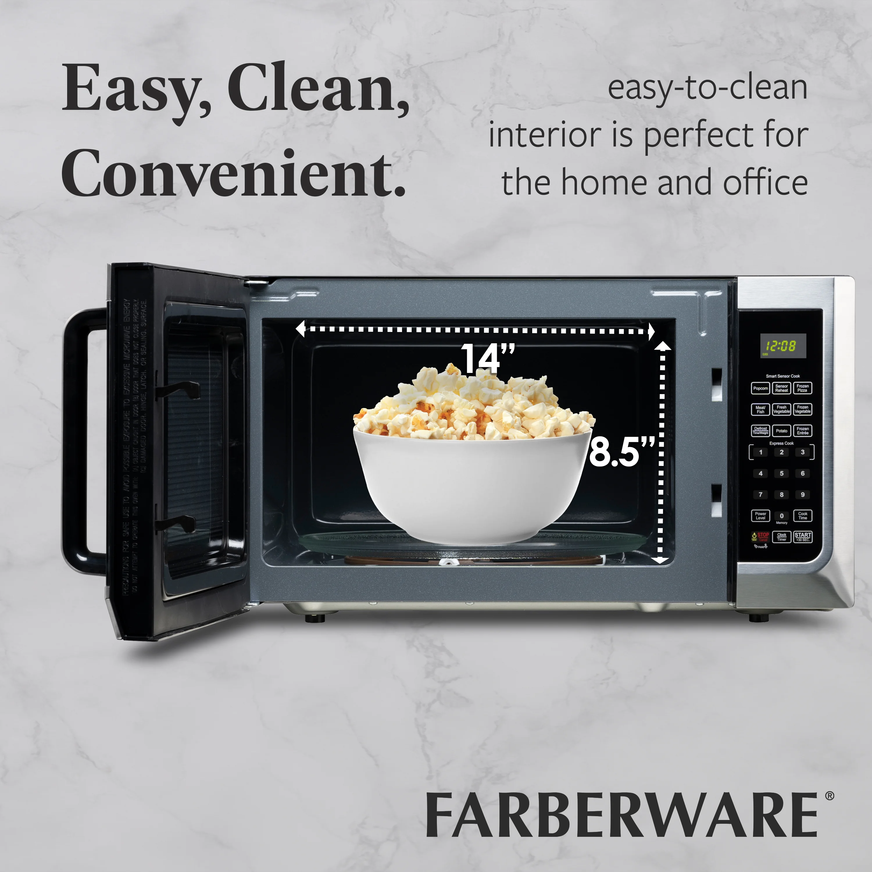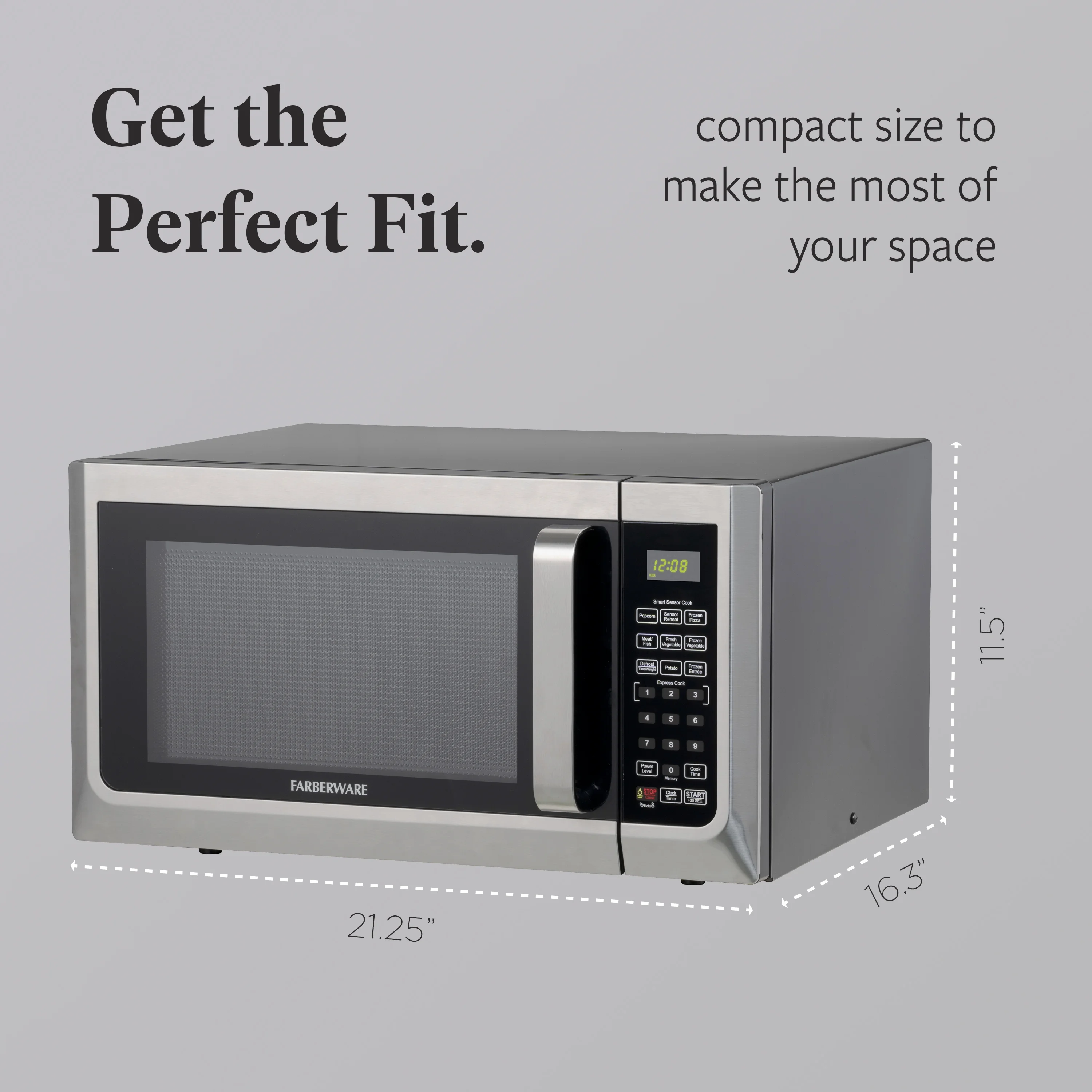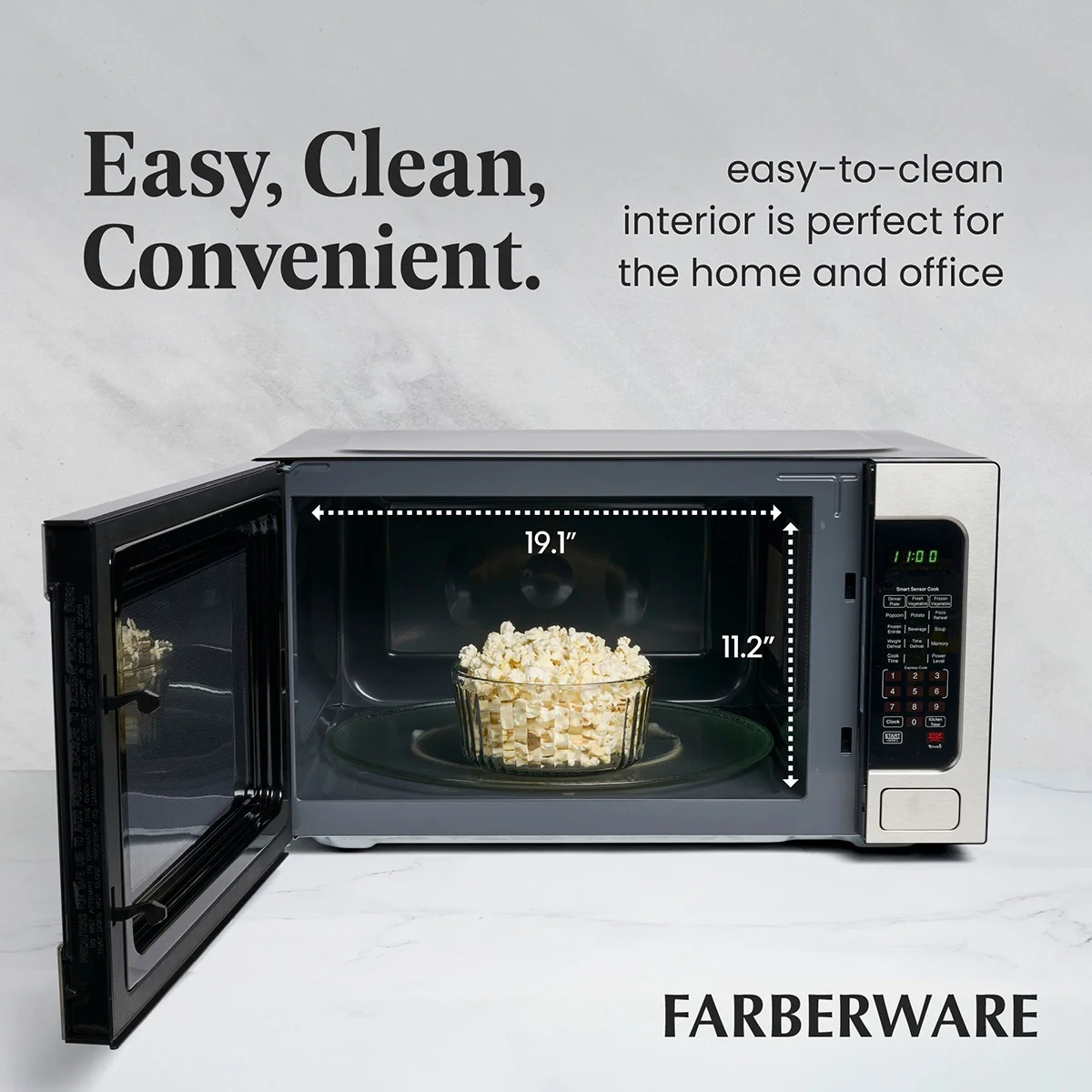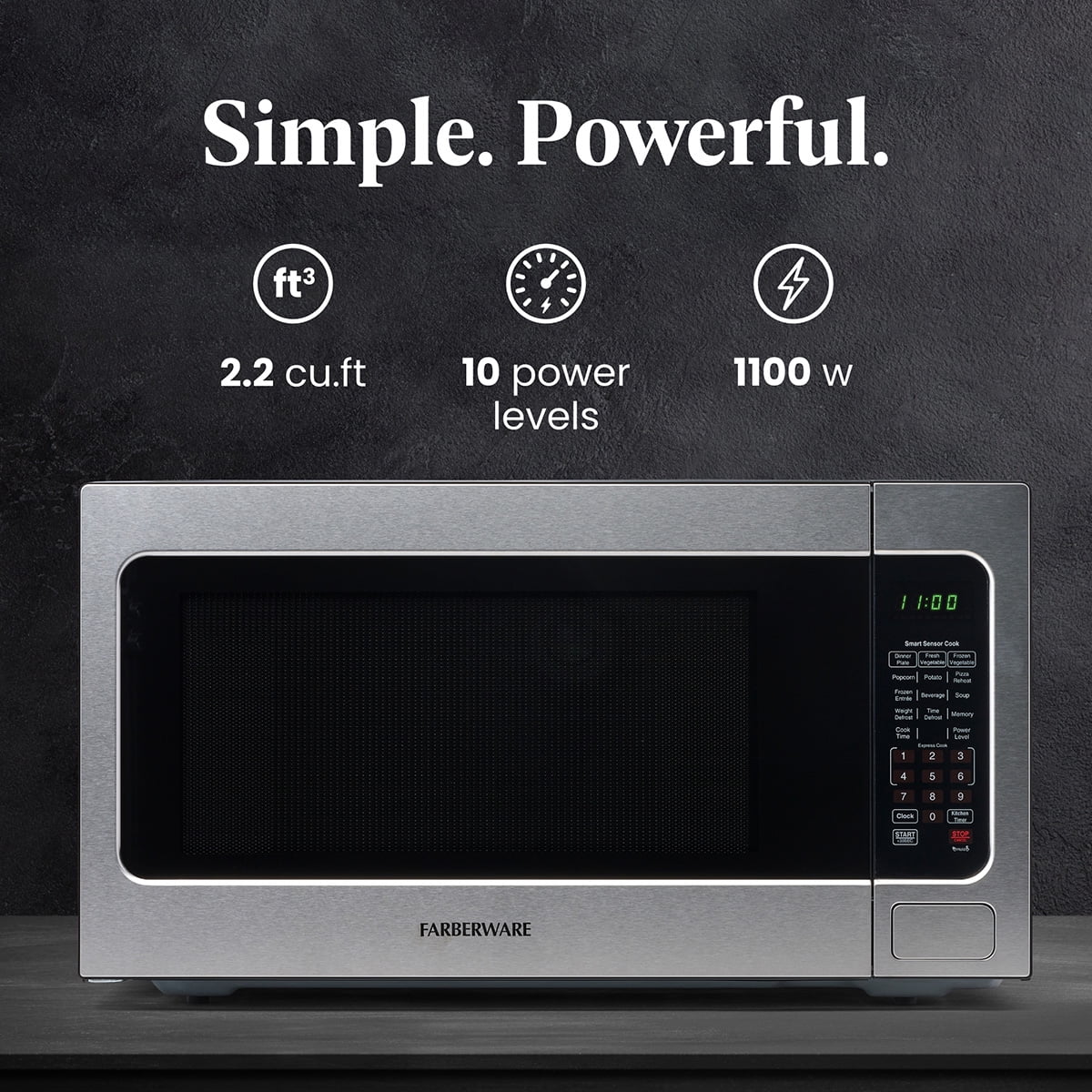 Farberware Countertop Microwave Ov 1100 Watts, 2.2 cu ft - Smart Sensor with LED Lighting and Child Lock - Perfect for Apartments and Dorms - Easy Clean Black Interior, Stainless Steel