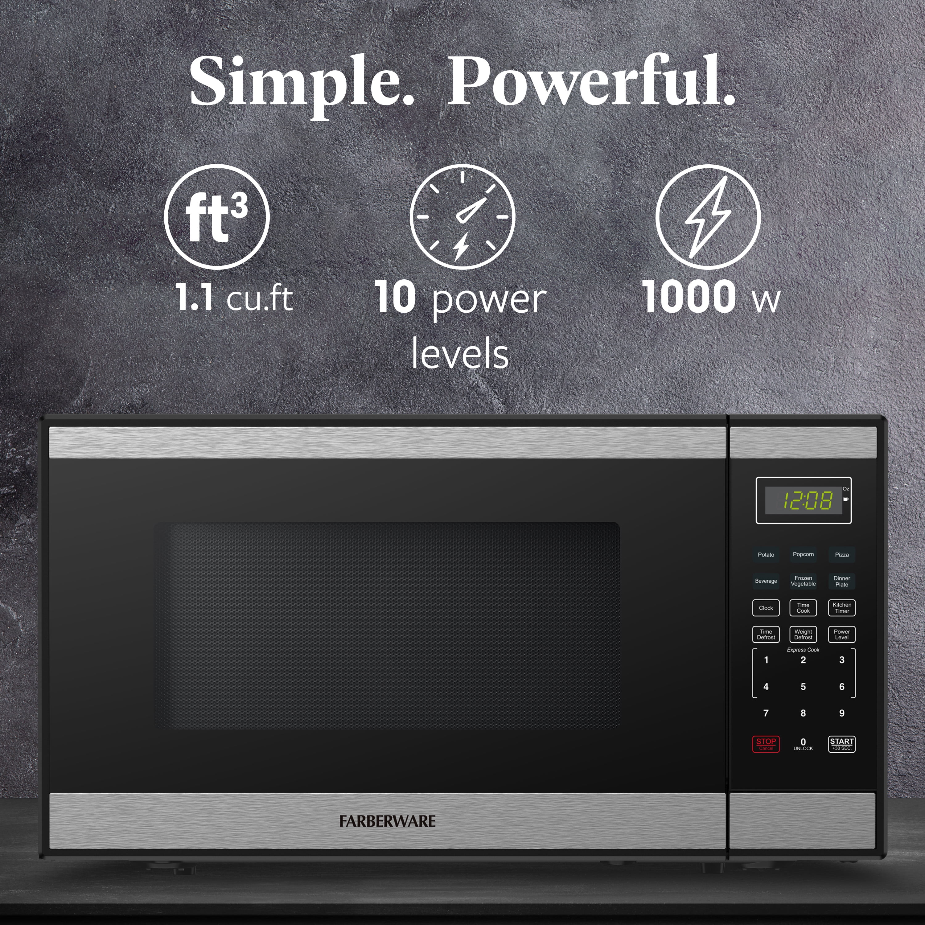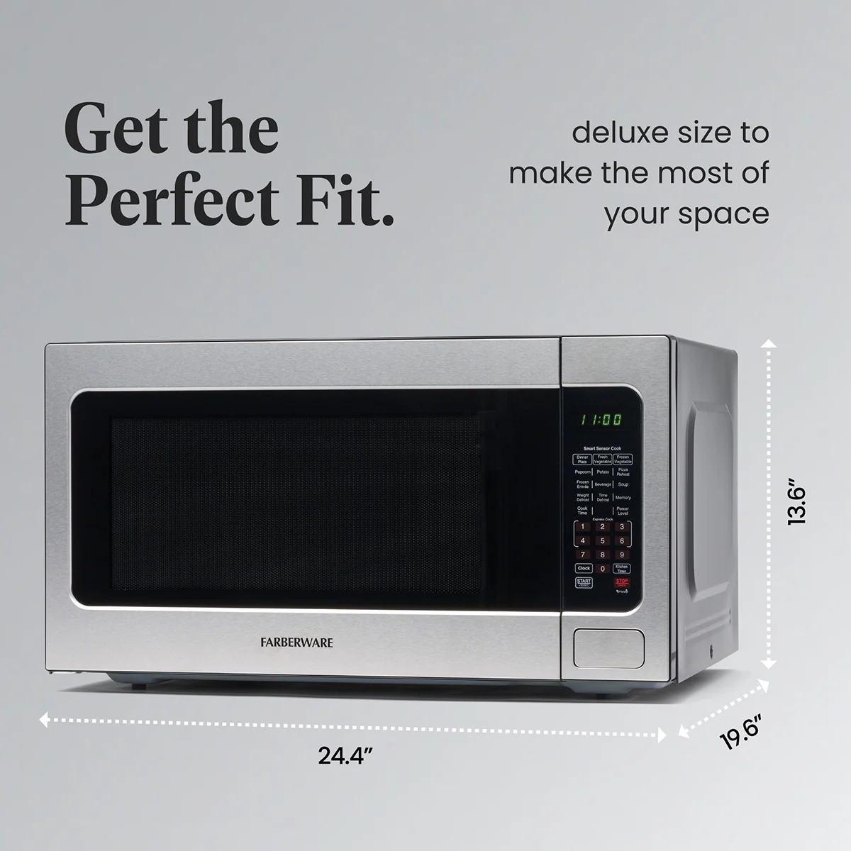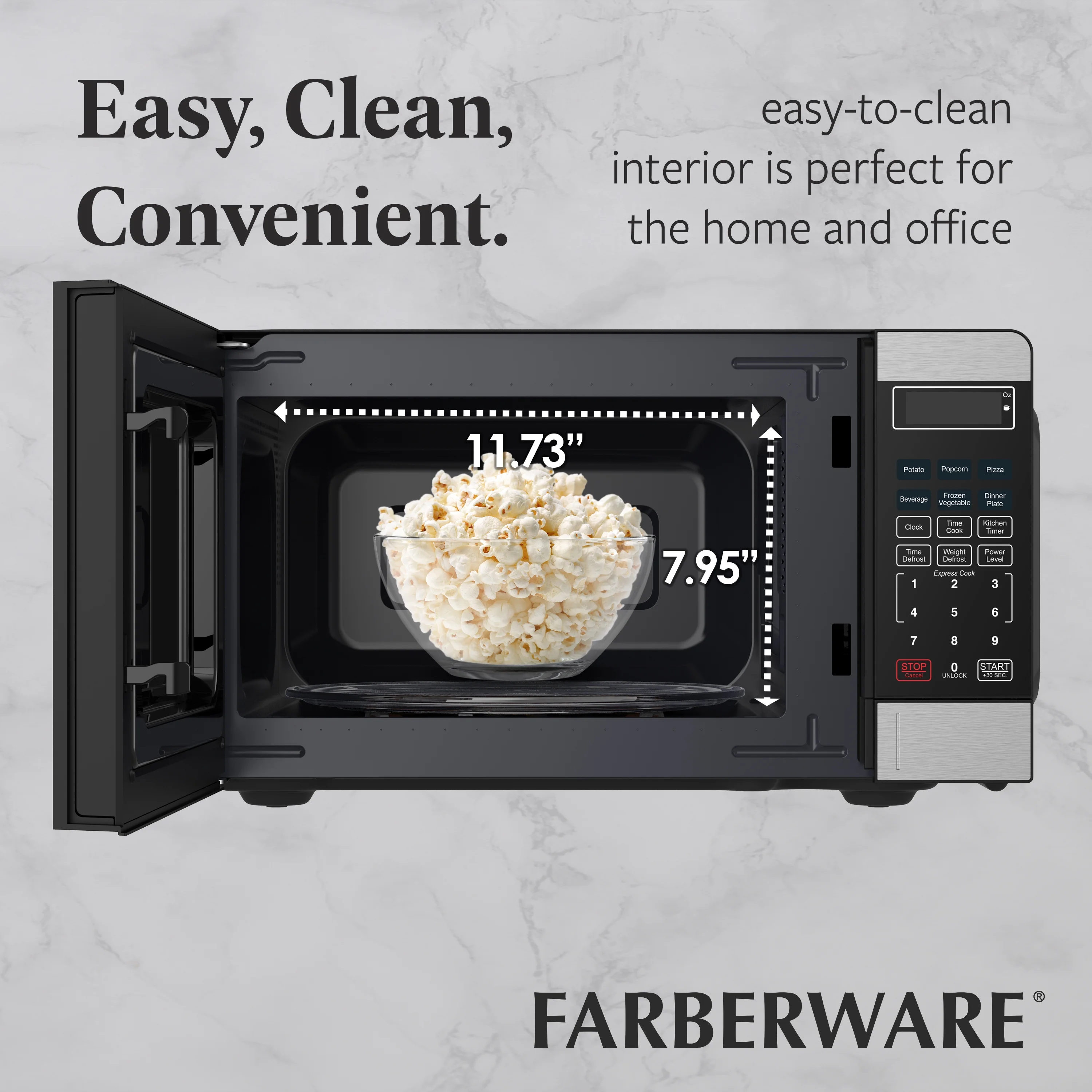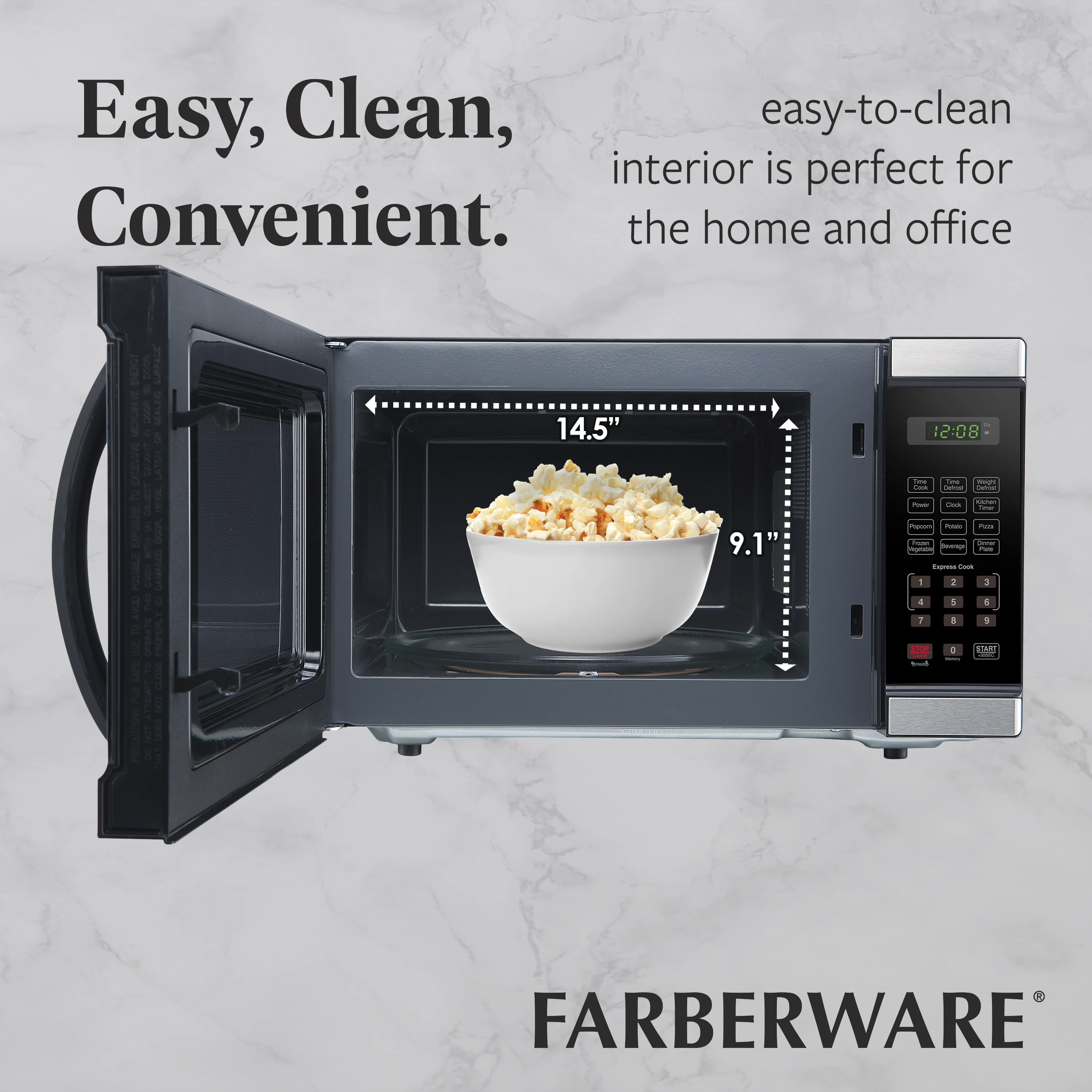 Farberware Countertop Microwave Ov 1100 Watts, 2.2 cu ft - Smart Sensor with LED Lighting and Child Lock - Perfect for Apartments and Dorms - Easy Clean Black Interior, Stainless Steel