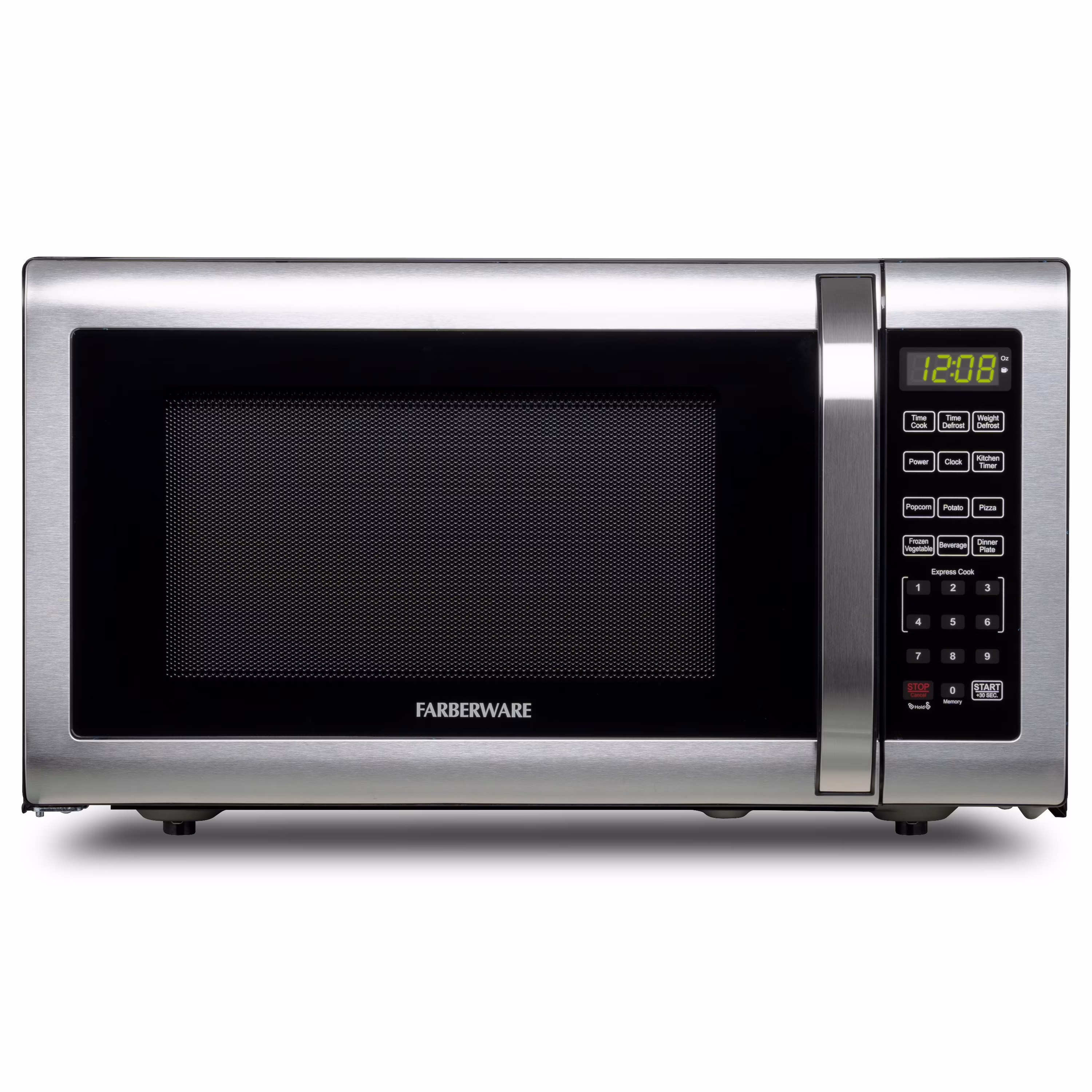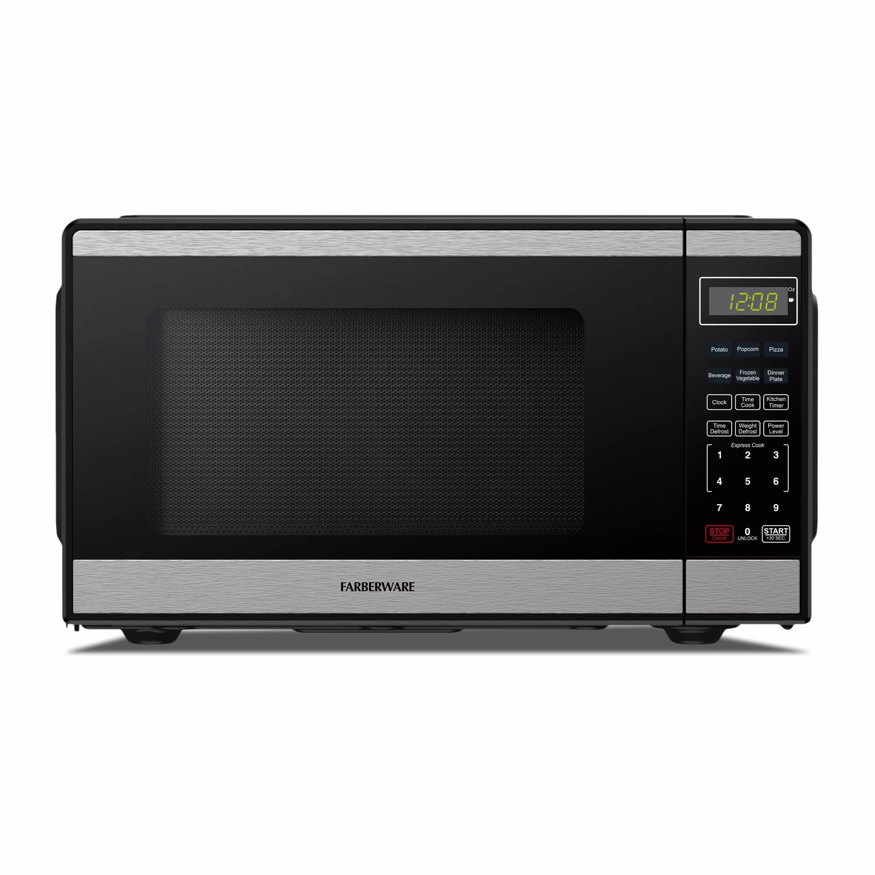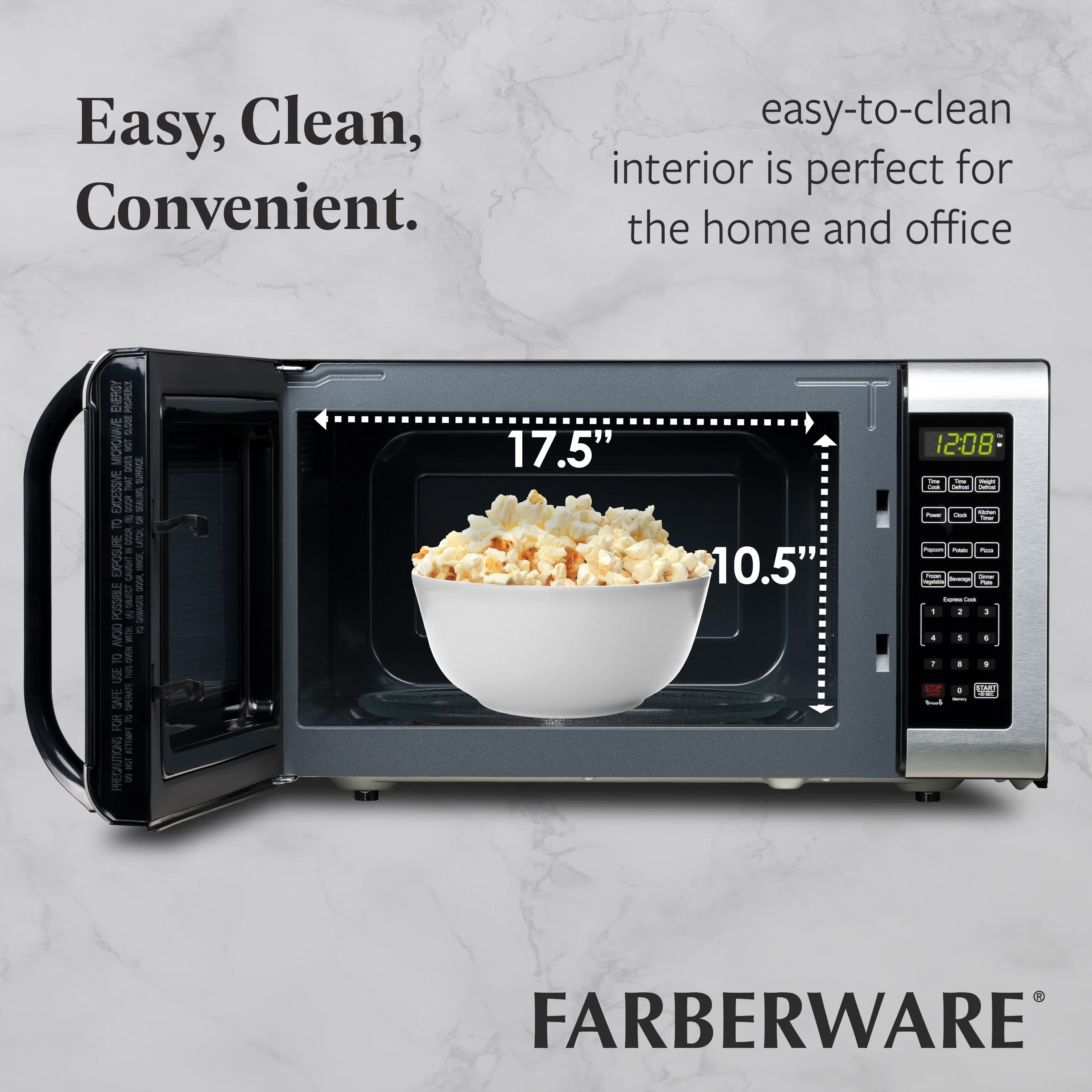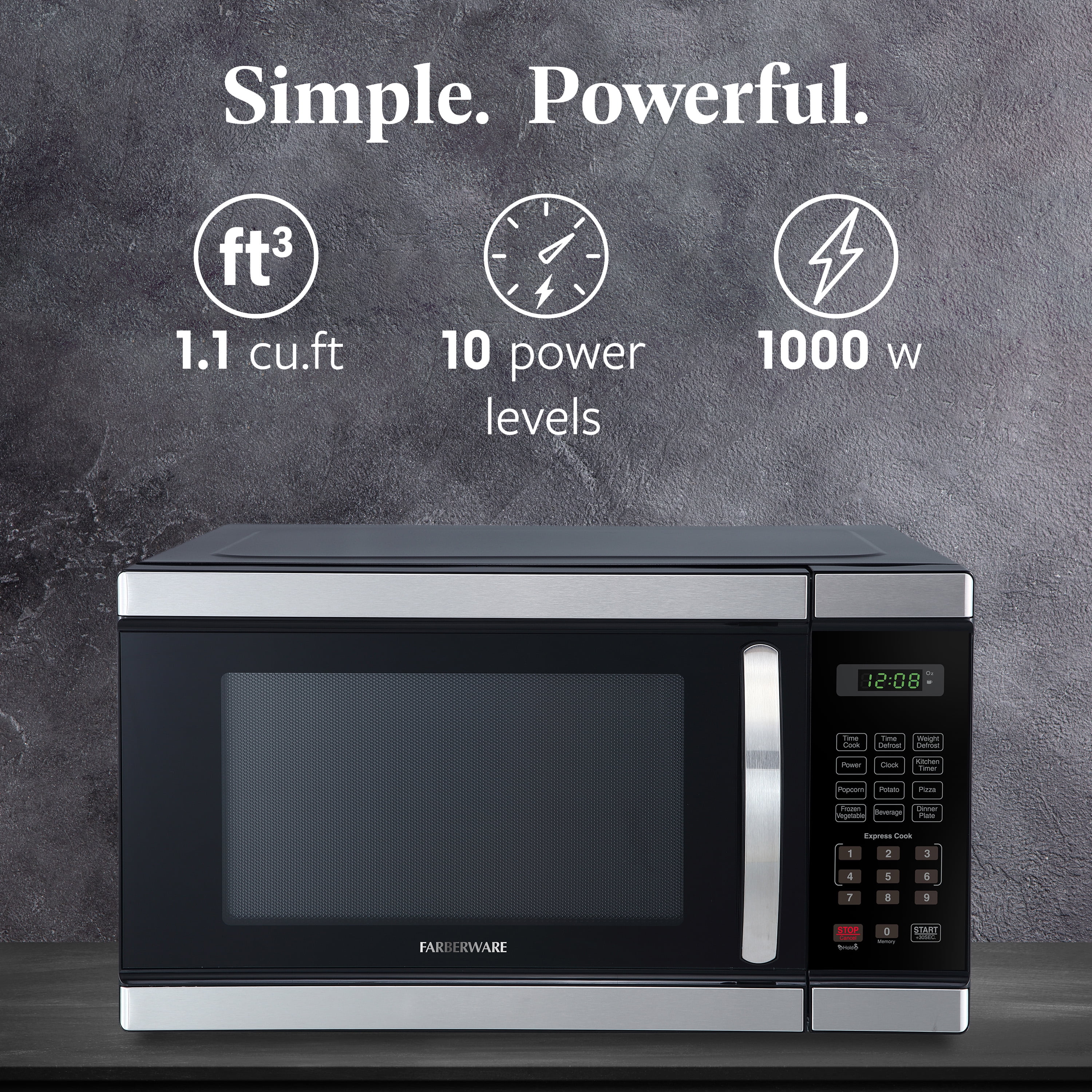 Farberware Countertop Microwave Ov 1100 Watts, 2.2 cu ft - Smart Sensor with LED Lighting and Child Lock - Perfect for Apartments and Dorms - Easy Clean Black Interior, Stainless Steel
