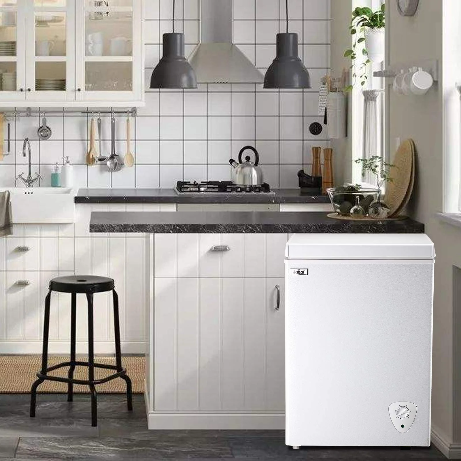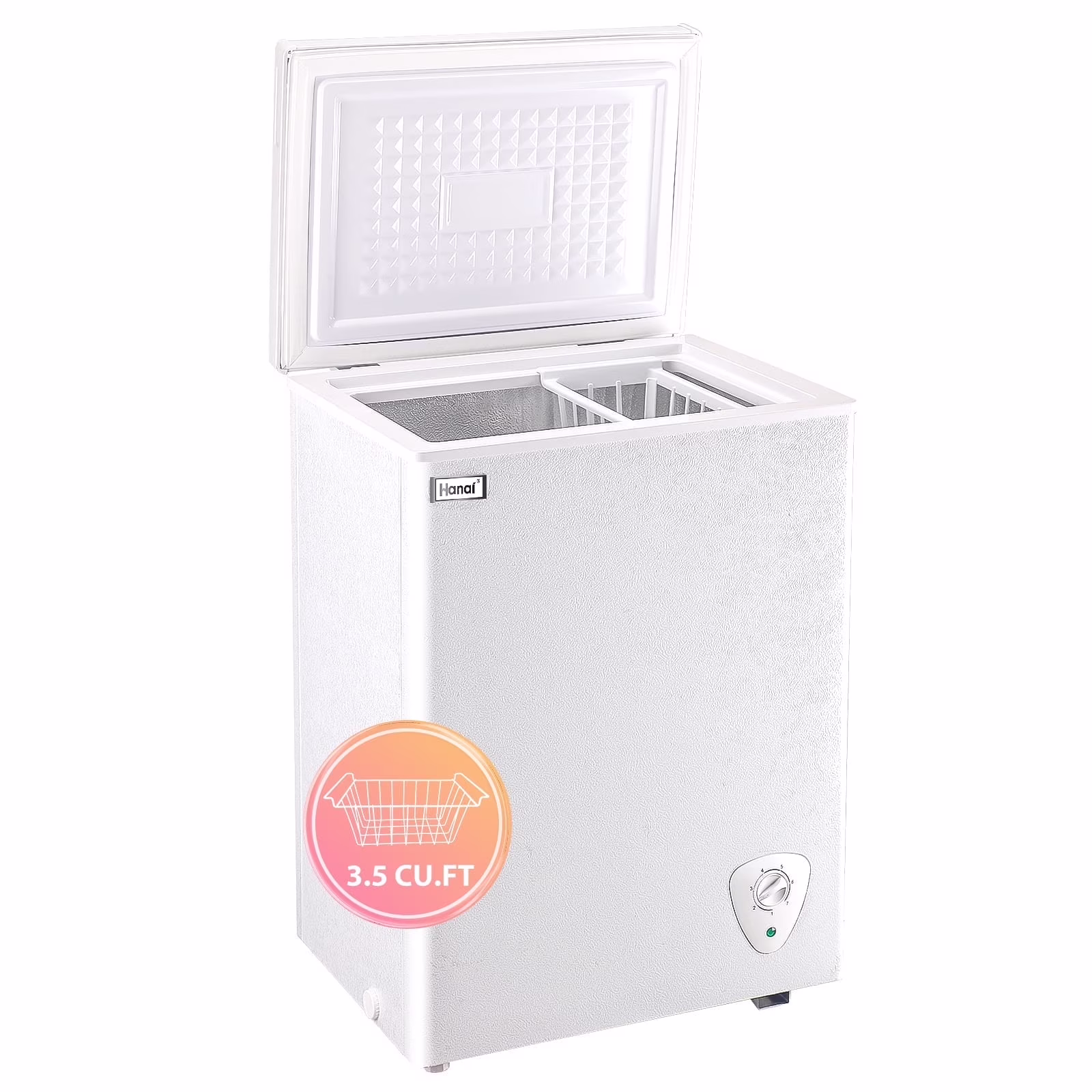 WANAI 3.5 Cu ft Freezer, Chest Freezer,White This compact unit gives you extra space to store frozen foods, looks stylish, and takes up minimal space in your home or business. Whether you are working for your house, garage, basement, apartment, kitchen, cabin, lake house, timeshare, or business shopping, the White Closet refrigerator can meet your frozen food needs. Removable storage basket with easy-to-clean interior makes for easy use. White blends easily into almost any personal or professional environment.