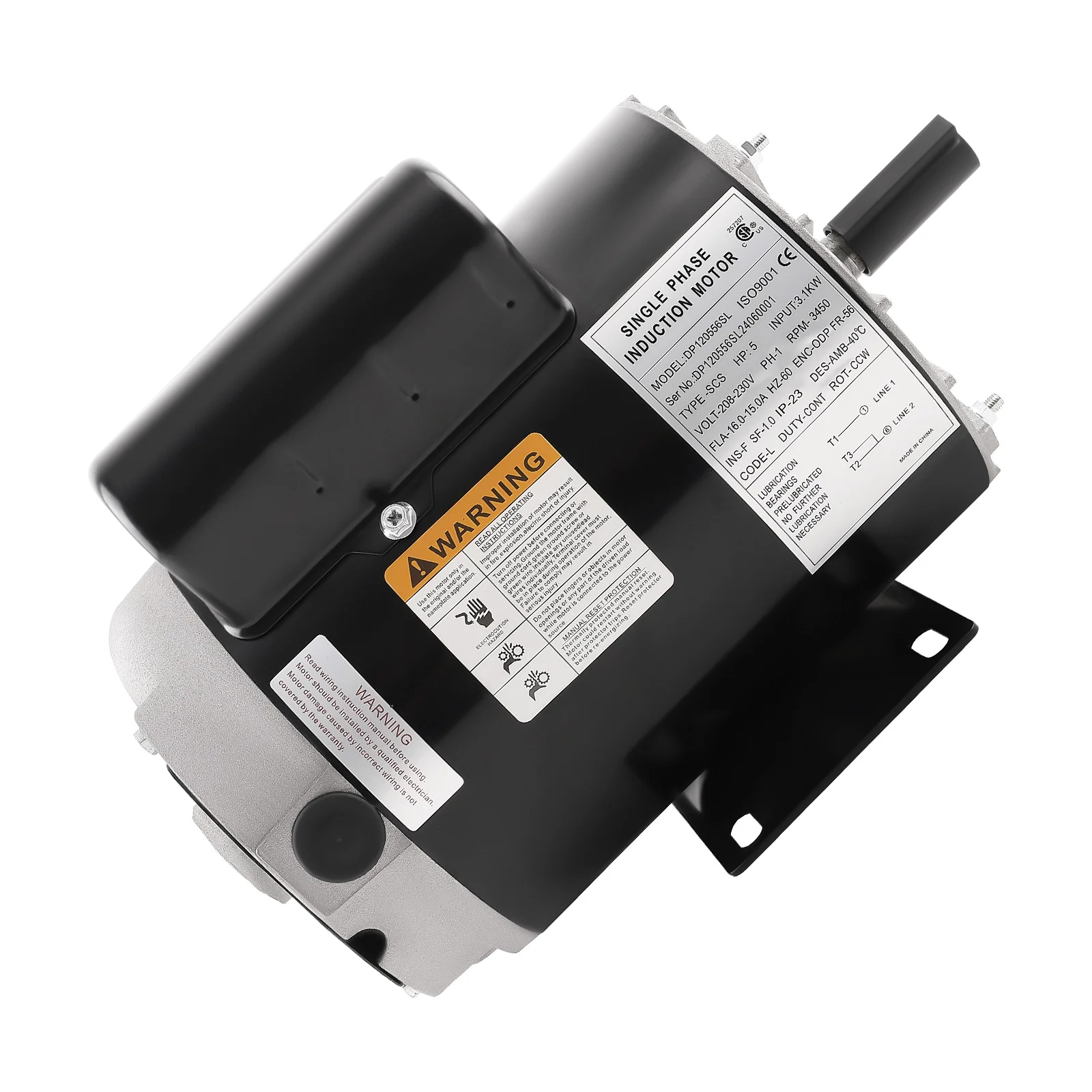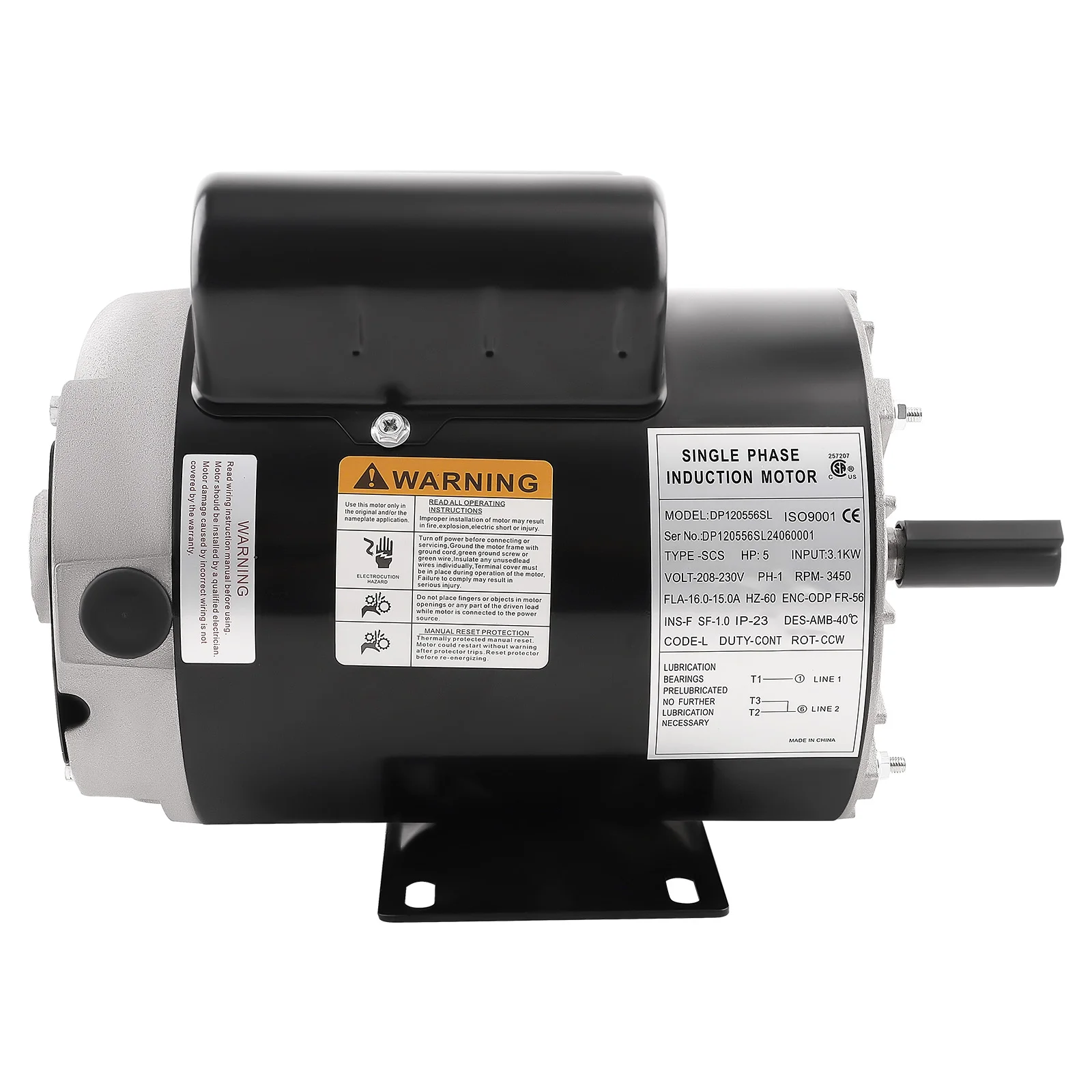- [Specification]: Voltage: 230V 60Hz, Horsepower: 5HP SPL, Rotation Speed: 3450RPM, Frame Size: 56
