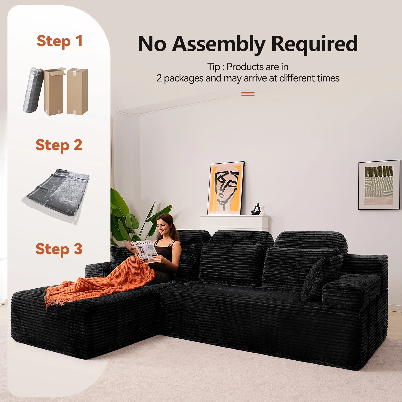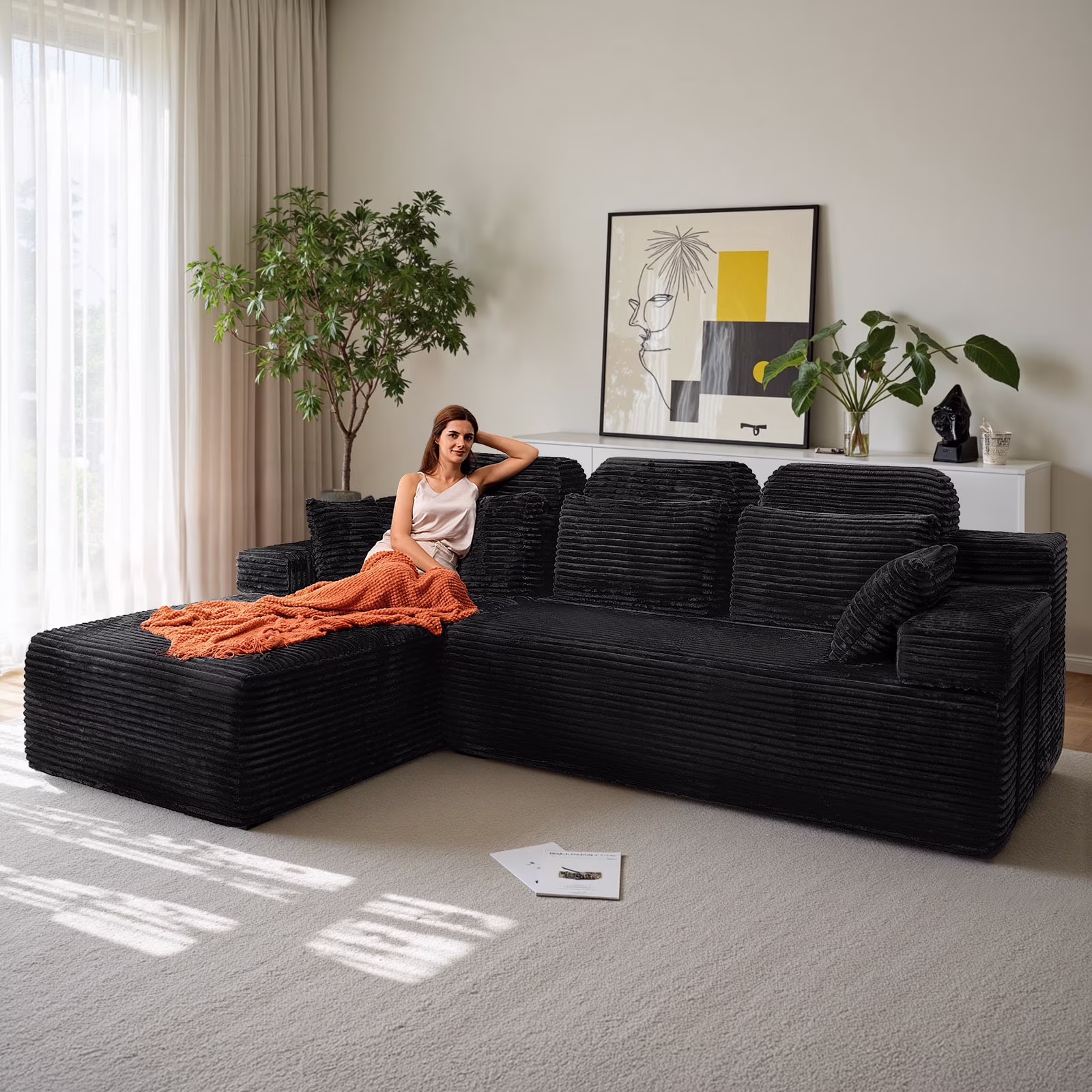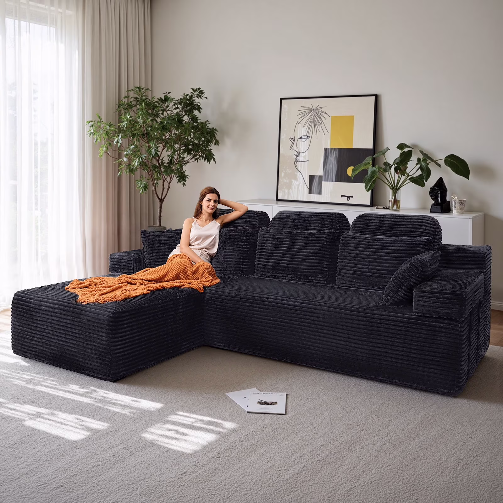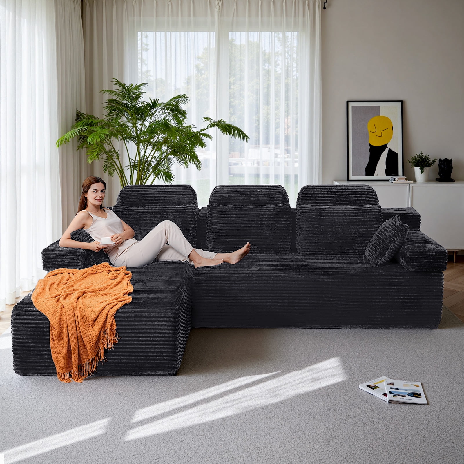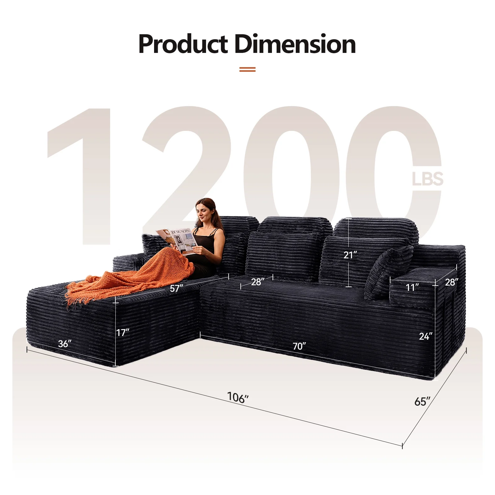 - ????[L-Shaped Extra-Wide Design, Luxurious Dimensions] With a total length of 106 inches and a U-shaped wraparound layout, it easily accommodates the entire family or a gathering of friends, making it the centerpiece of your luxury living room!