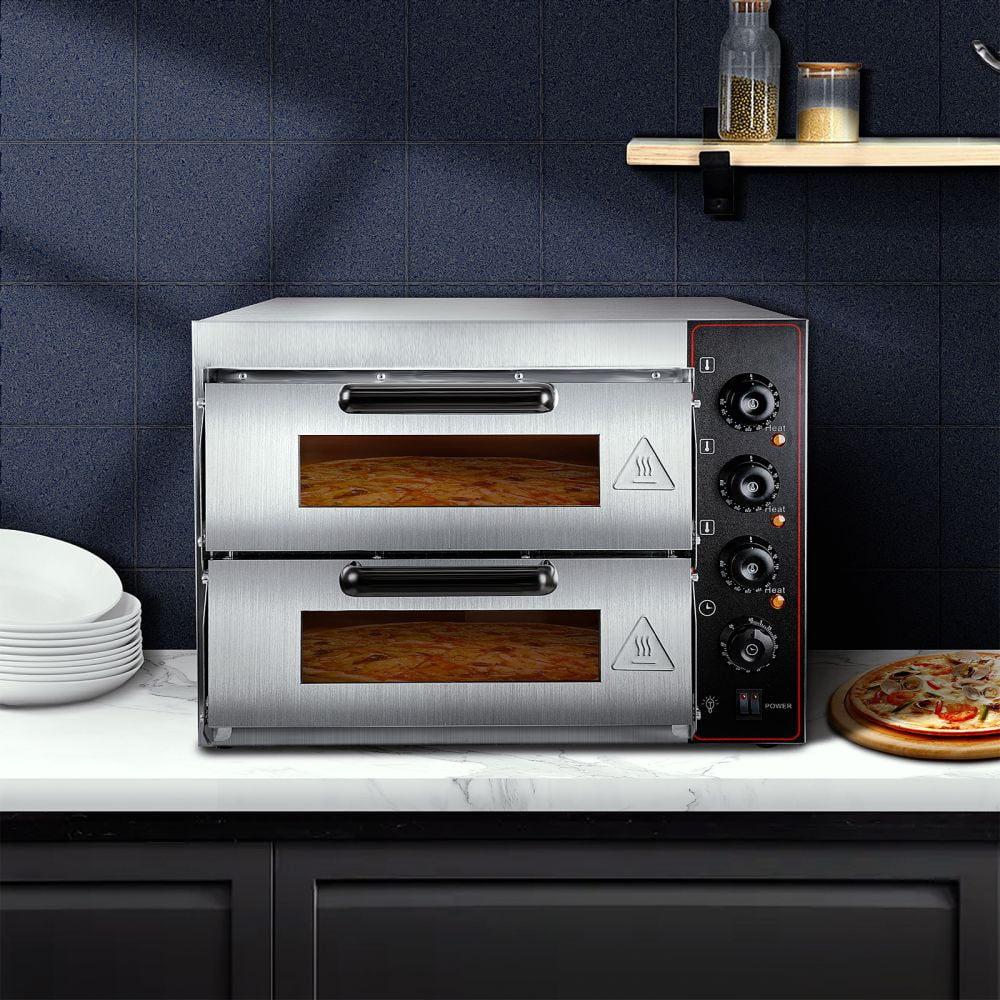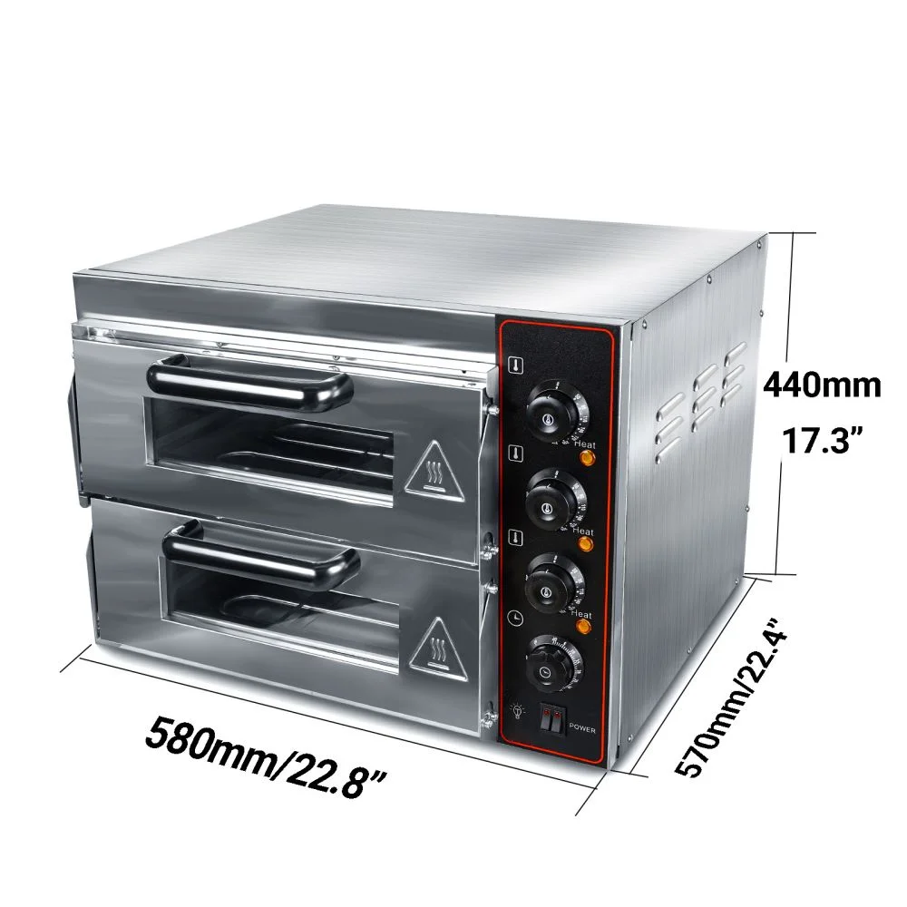 Commercial Pizza Oven 16 in Pizza Double Deck 3000W 110V Electric Oven Multipurpose Toaster Bake Broiler 40 L Stainless Steel for Restaurant Home Pizza Pretzels Baked Roast Yakitori