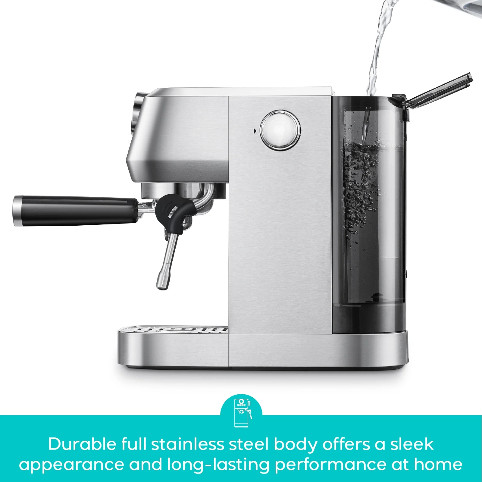 - Convenient Refill: Our 43.9 oz water tank ensures smooth operation, enhancing your overall coffee experience with less hassle and more efficiency.