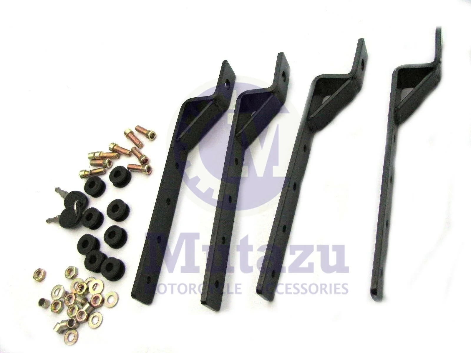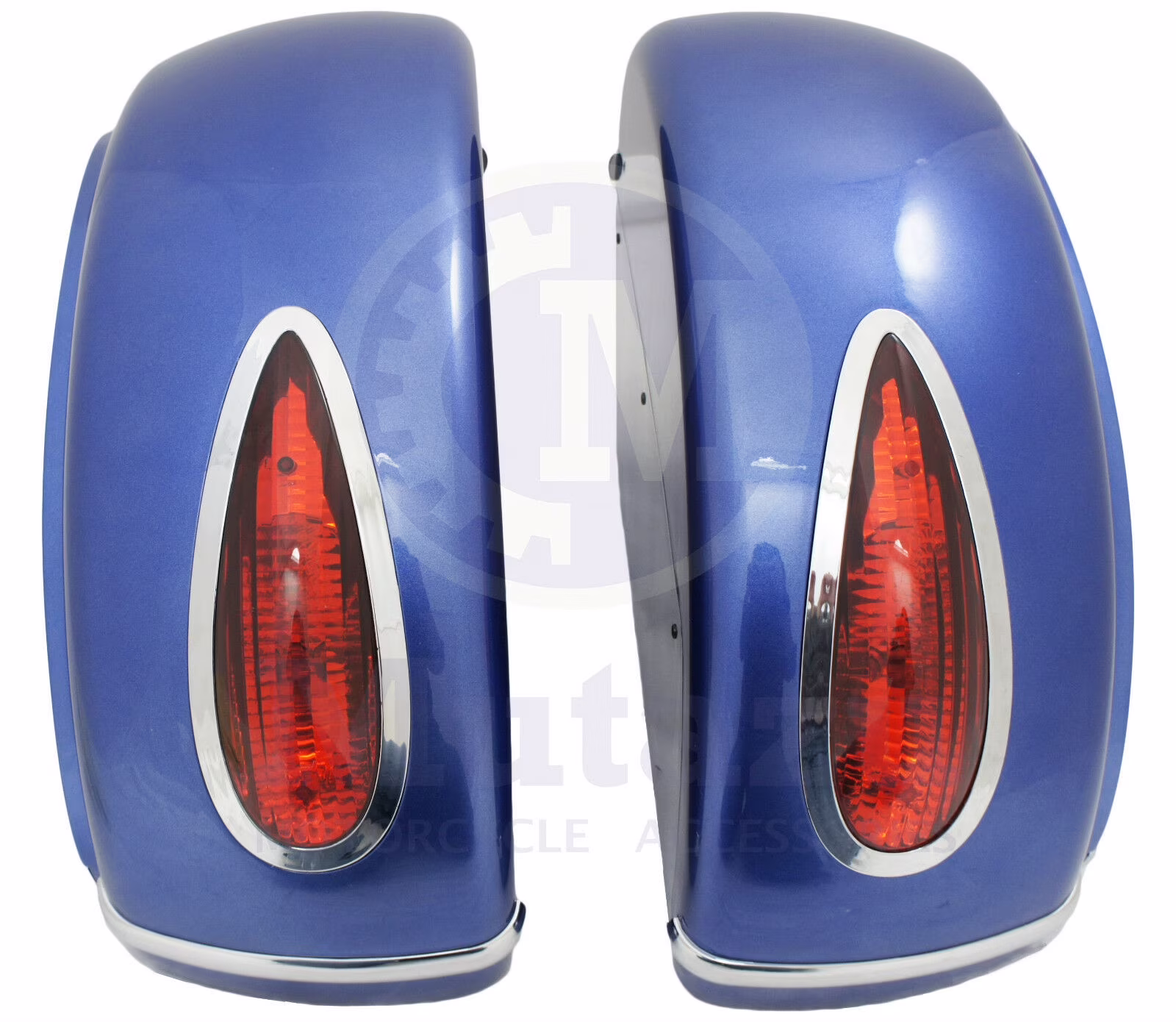 Mutazu Cobalt Blue MU Universal Hard Saddlebags (color match not guaranteed). For each set of MU saddlebags purchased, we'll throw in the mounting kit Free of charge. Universal hard bags are a great way to add storage to your motorcycle without the huge investment involved with most OEM bags on the market. They're a one size fits most concept, keeping in mind YOUR make and model and clearance concerns. If your turn signals don't provide clearance, relocation will be required. Bags are not pre drilled to allow our customers room for flexibility on how they're mounted to each individual's bike. Also a minimum of 1" clearance from bags to exhaust must be allowed for safe and proper mounting. All bags are sold in sets (one left, one right) and included is a set of FREE universal mounts with each purchase. Optional alternatives are available, please contact or consider your options before payment and checkout. *All universal bags include free universal mounts, 3 additional upgrade options are available if you don't wish to use the included mounts, please contact before checkout for details and options. Please consider upon application the benefit of adding additional side wall support as seen on many OEM style bags (for better more even weight distribution) and also any additional base support (to help with stabilization and continuing the weight distribution factor as well). * Overall outside Dimensions: Length 22" x Height 14 1/2" x Width 8 1/2" Due to the irregular shape of the saddlebags, the measurements are measured from the farthest point to the farthest point of the bags. The measurements are approximately measured. Colors available: Black, White, Silver, Burgundy Red, and Matte Black