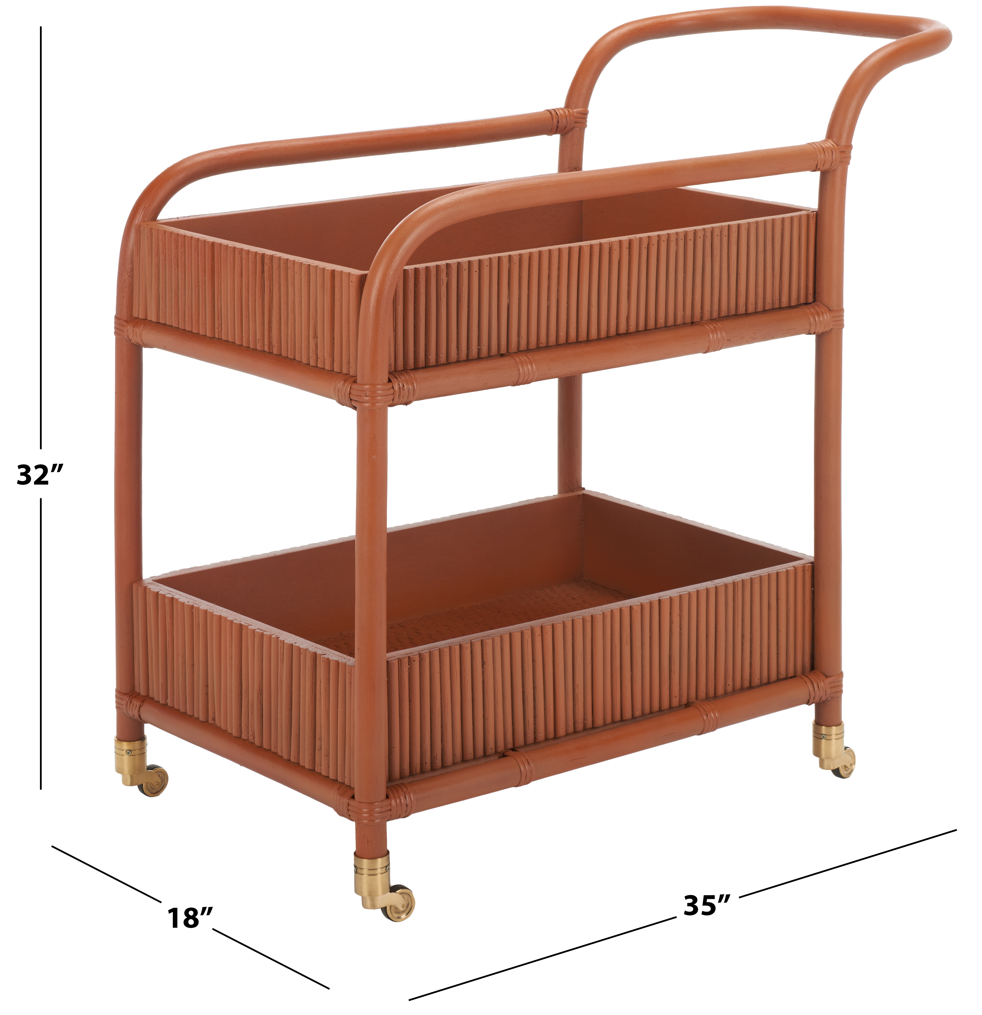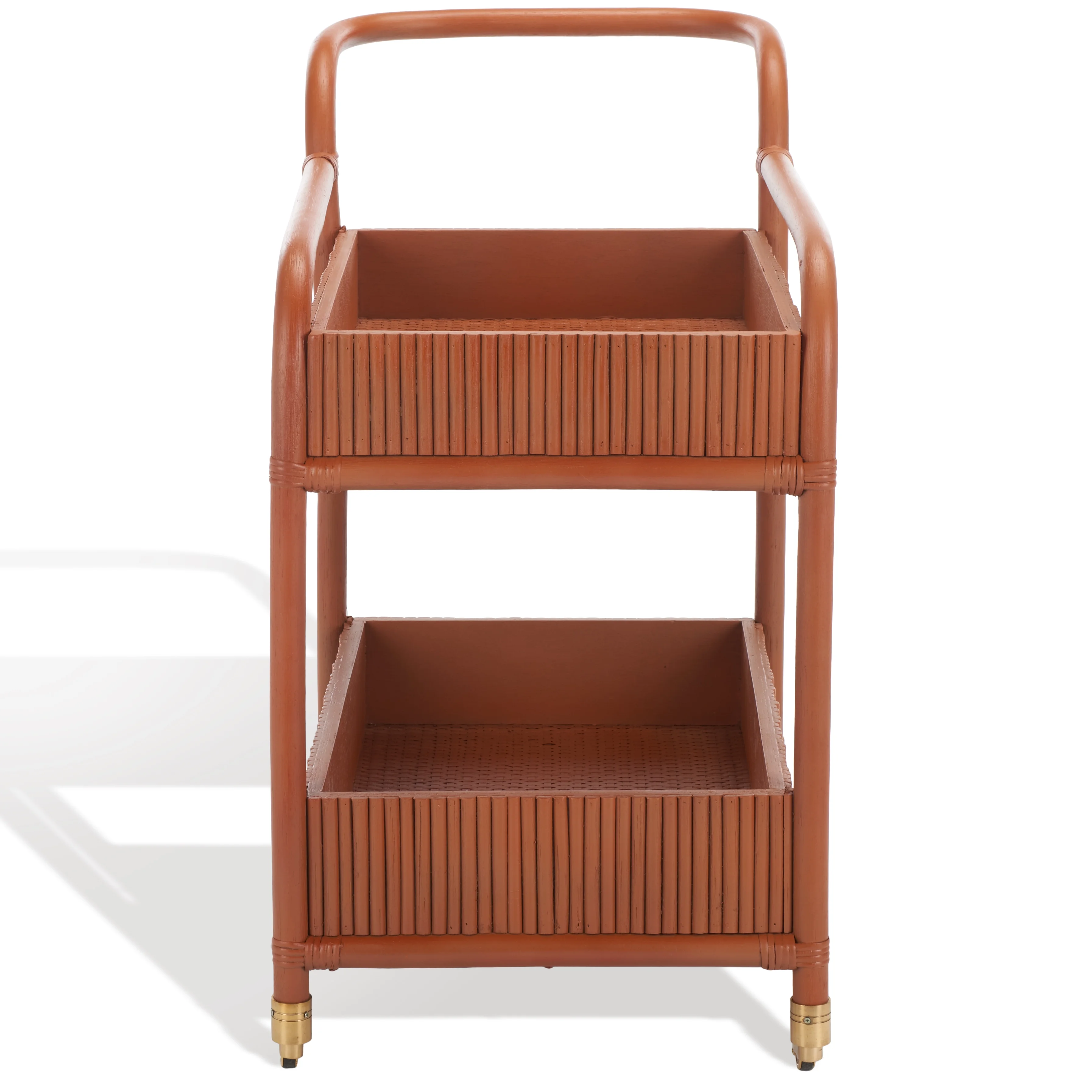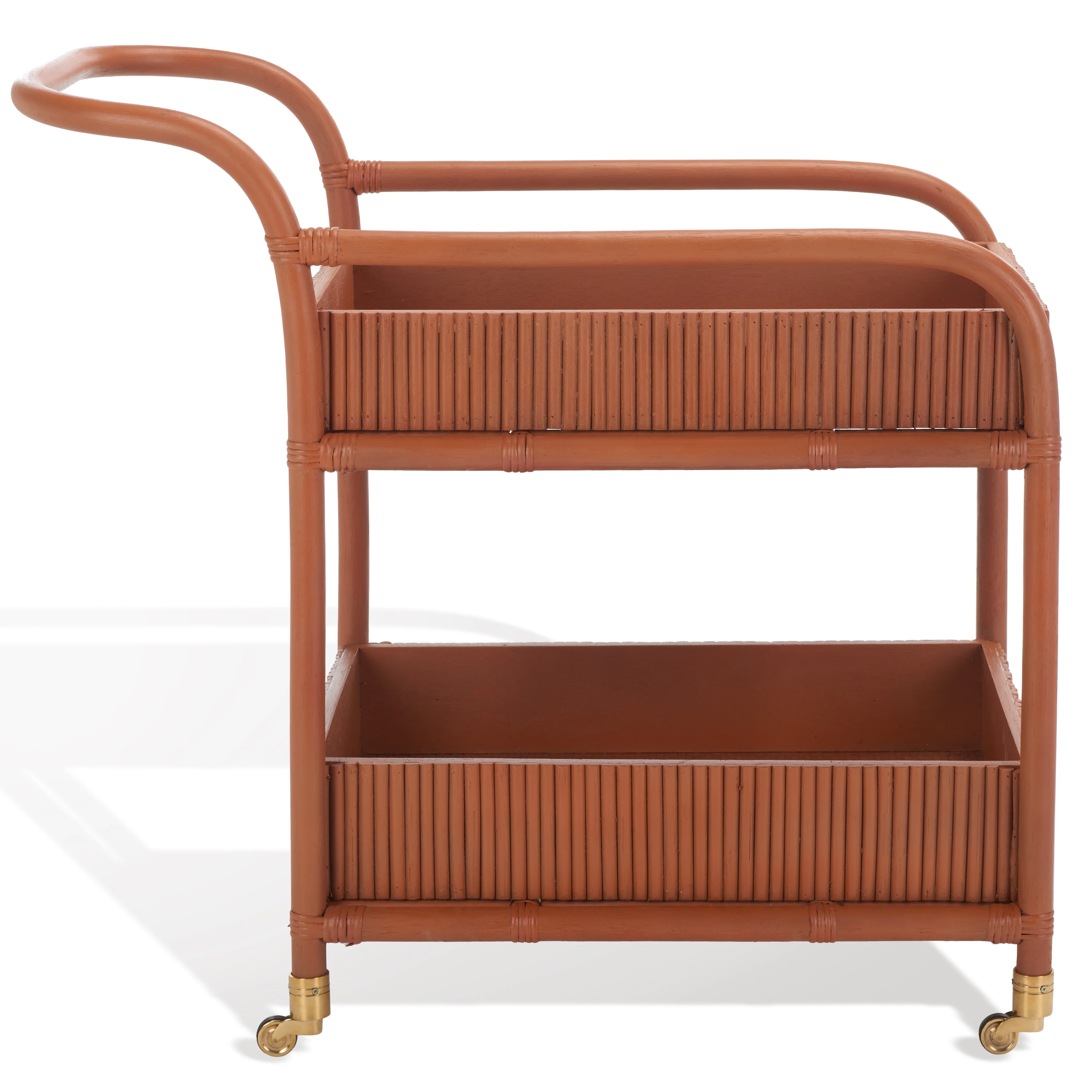 SAFAVIEH Couture Barnette Modern 2-Tier Wheeled Rattan Pole Bar Cart, Amber