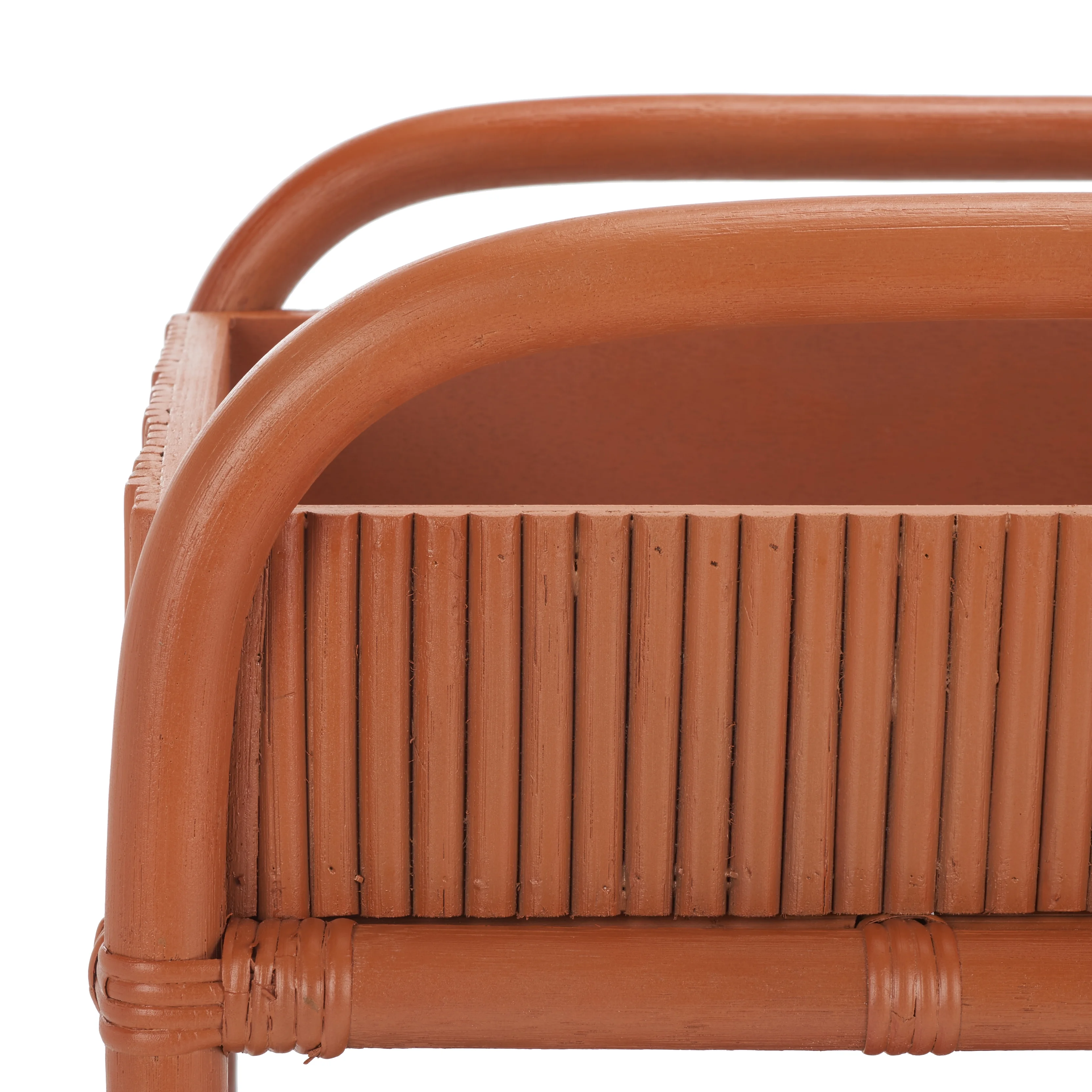 Entertain in style with our warm and chic Barnette bar cart. Elevating a clean and streamlined design with rich natural textures, our bar cart attains an eye-catching appeal. It features two shelves covered with rattan poles to exhibit the distinct warmth, texture, and tonality of the material. Making a chic statement in any corner, the bar cart features brass casters to easily roll from one room to another. It provides ample space for organizing and keeping all your cocktail essentials, glassware, and serve ware within easy reach.- Durable wood frame for long lasting longevity.