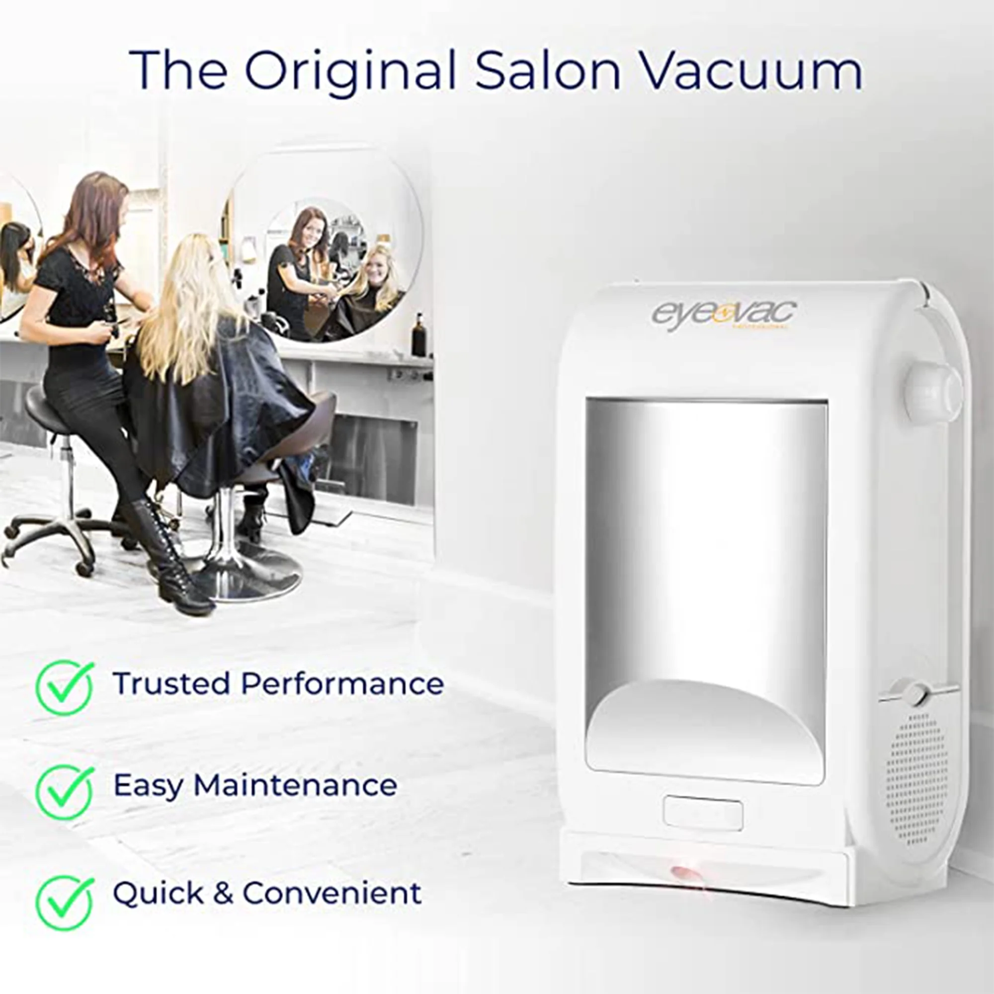 - Touchless, stationary vacuum ideal for commercial use including hair salons, boutiques, hospitality, kitchens, and small businesses