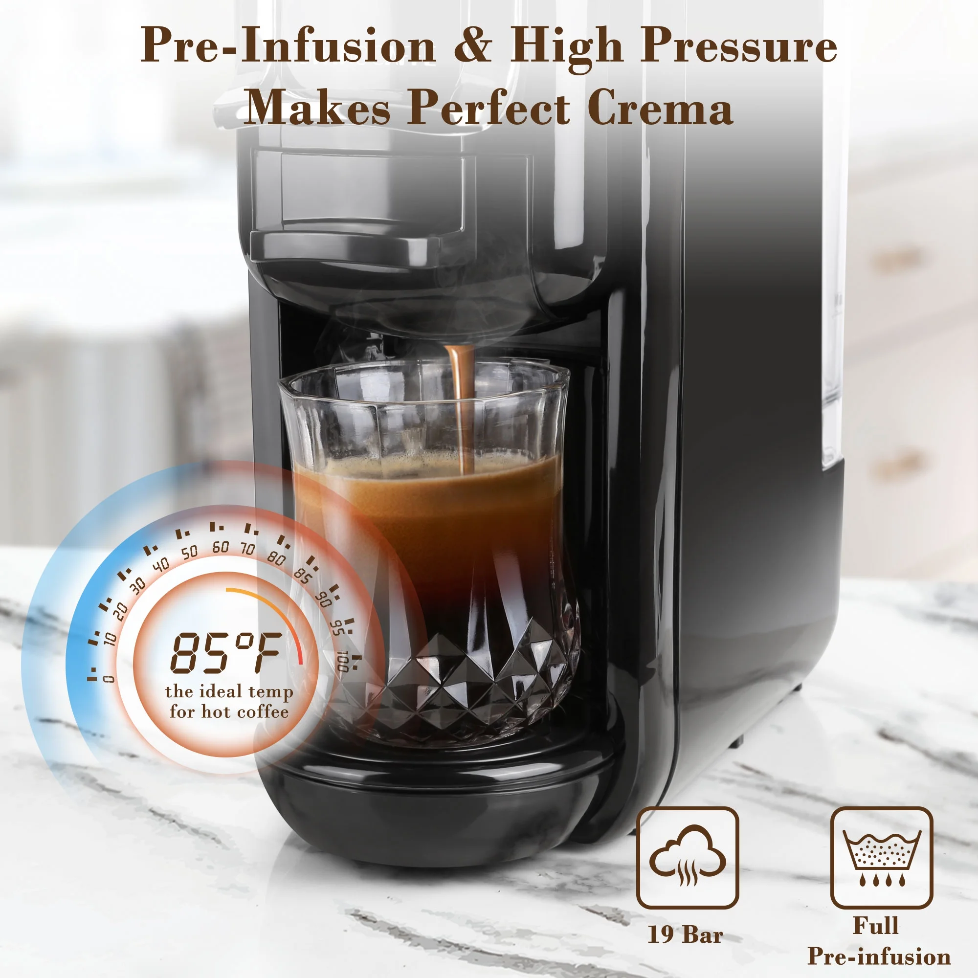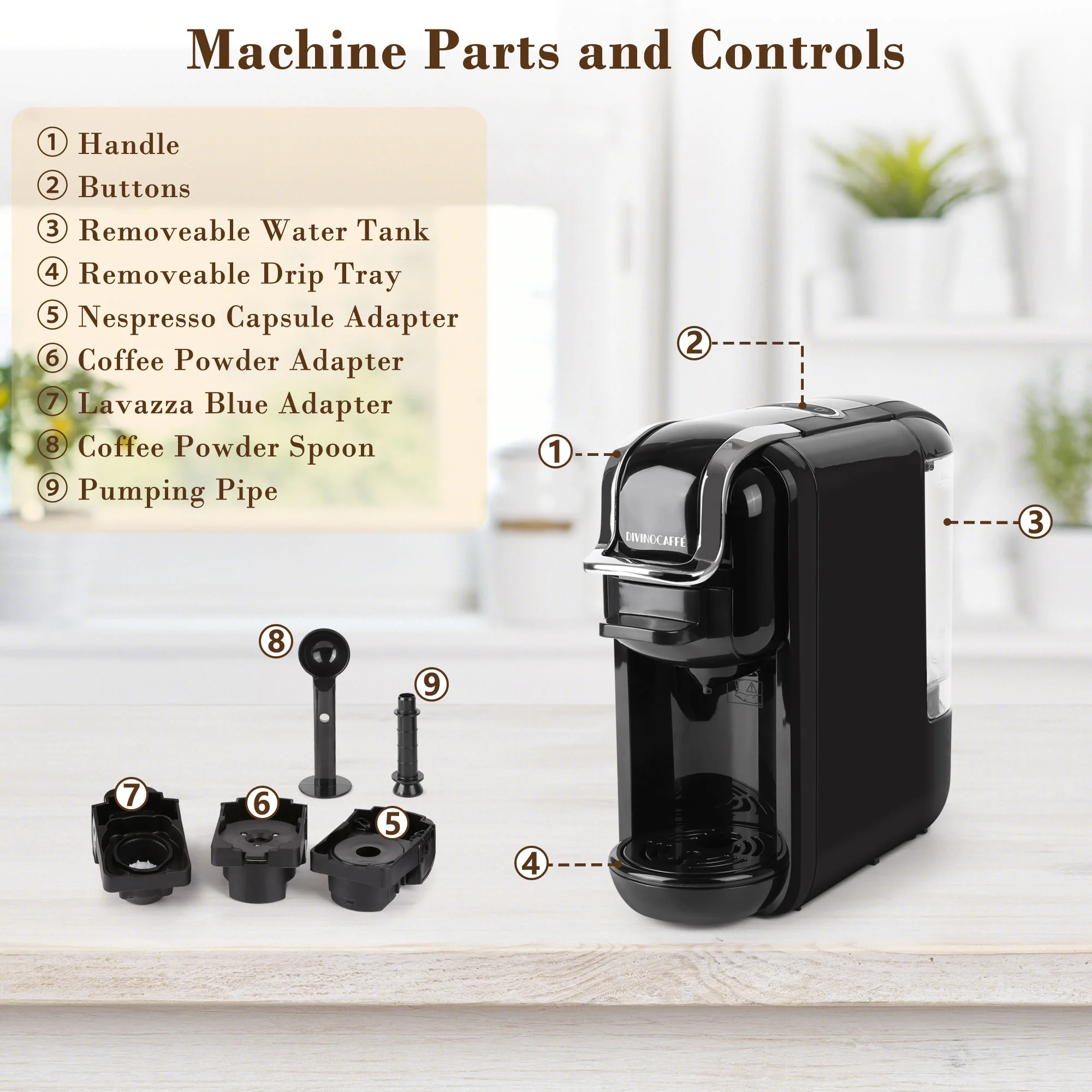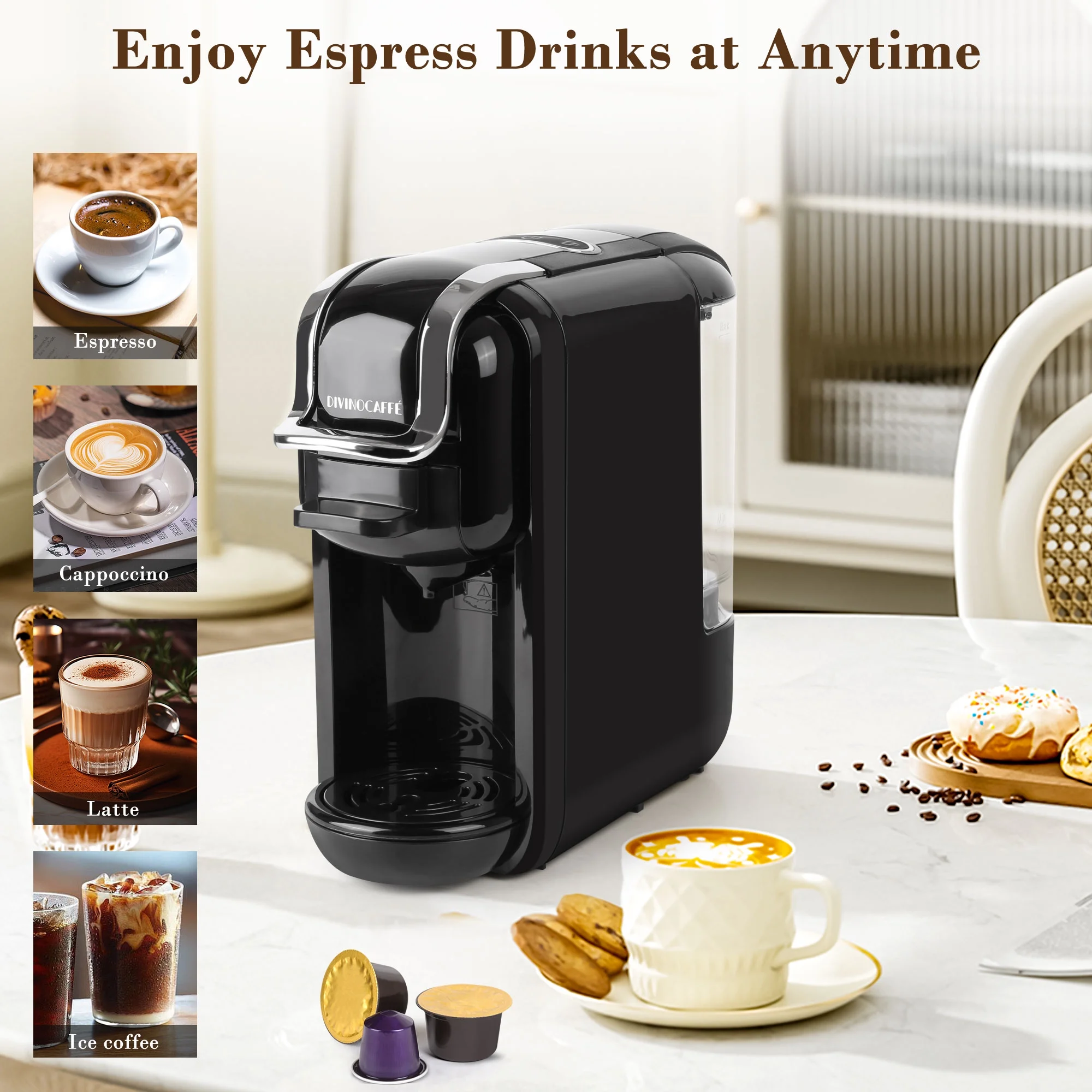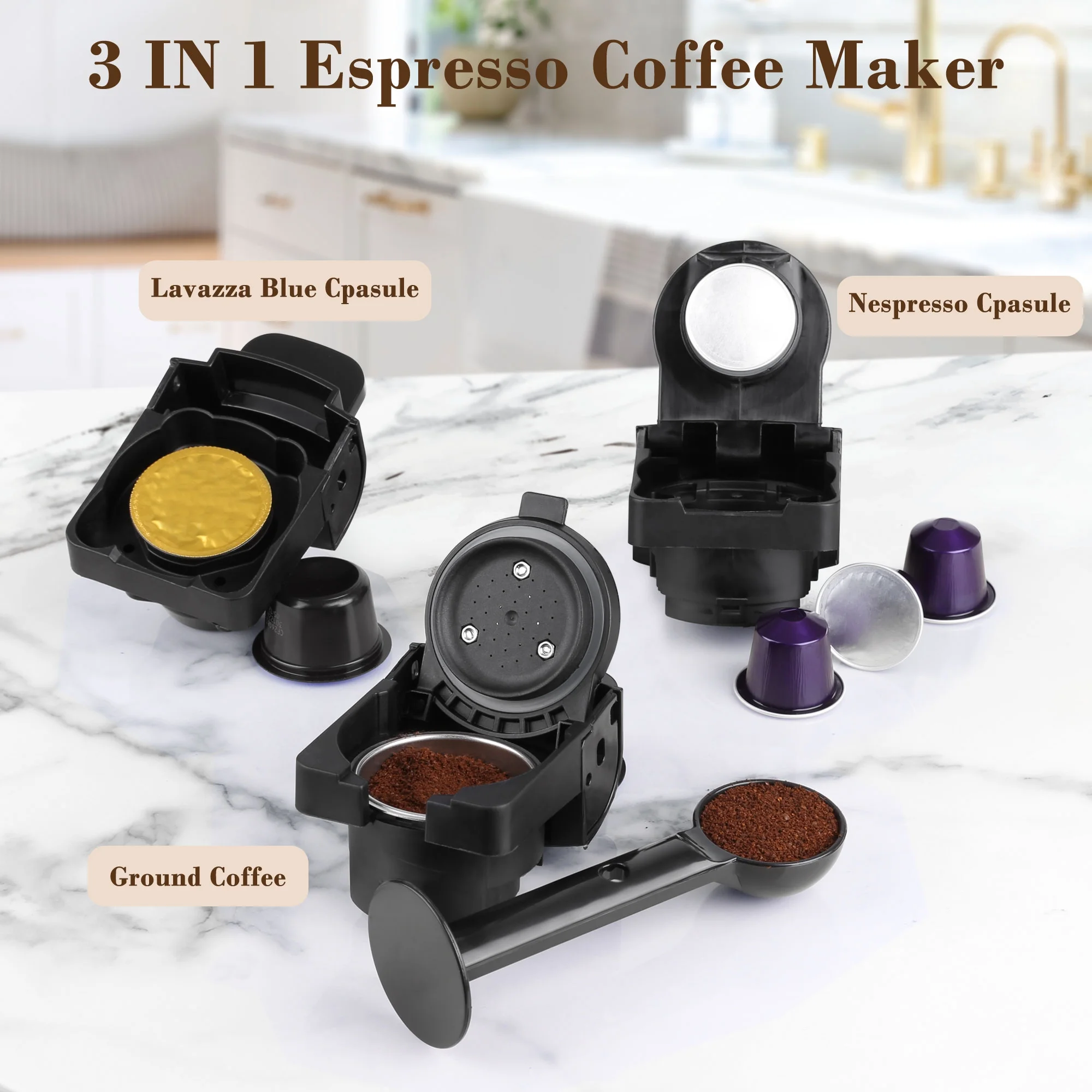 Espresso Maker for Nespresso Capsule, Lavazza Blue Capsule & Coffee Powder, 19 Bar Pump Pressure Makes Authentic Espresso Coffee, Mini Espresso Coffee Machines with Removable Water Tank