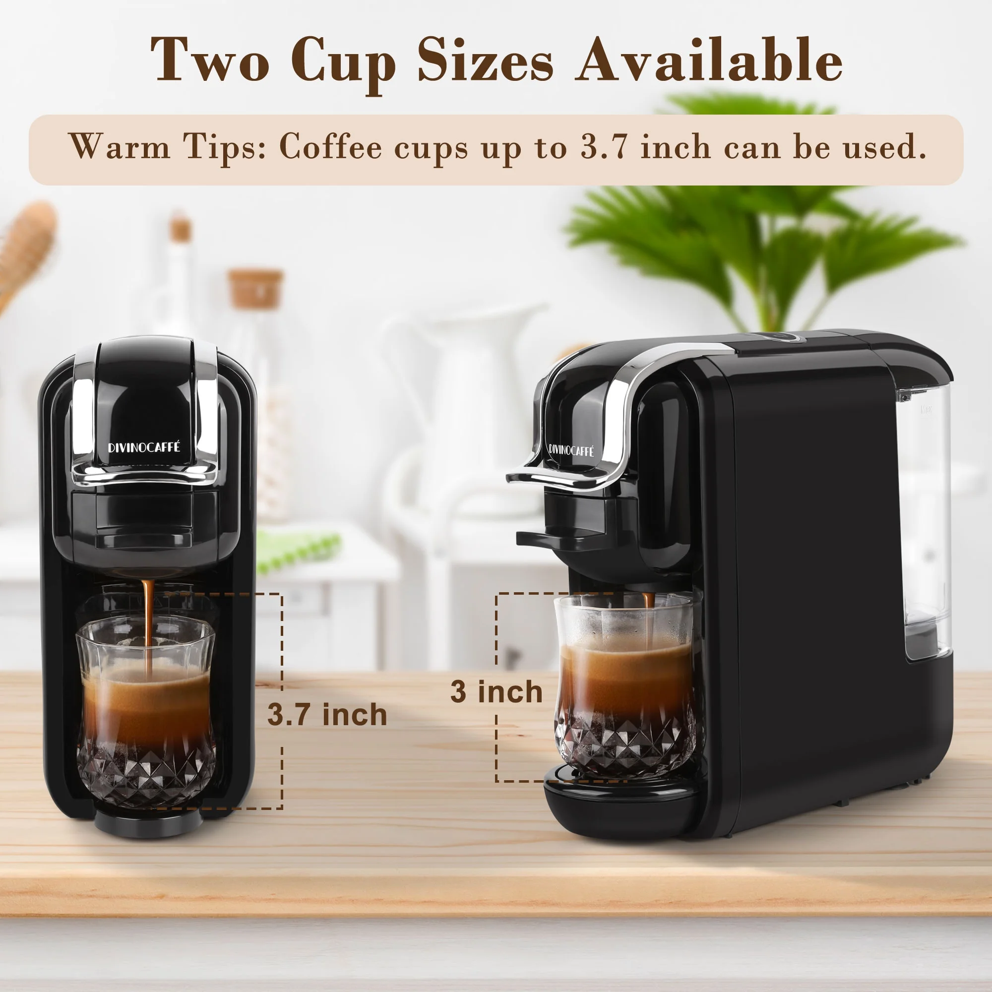 - 3 In 1 Espresso Maker: The Divinocaff�� Espresso Machine is designed to work seamlessly compatible with nespresso capsules and lavazza blue capsules. It is also suitable for ground coffee, so you can brew a perfect cup of coffee with the right amount of ground coffee for your taste. If you are looking for a great espresso machine, look no further than us.