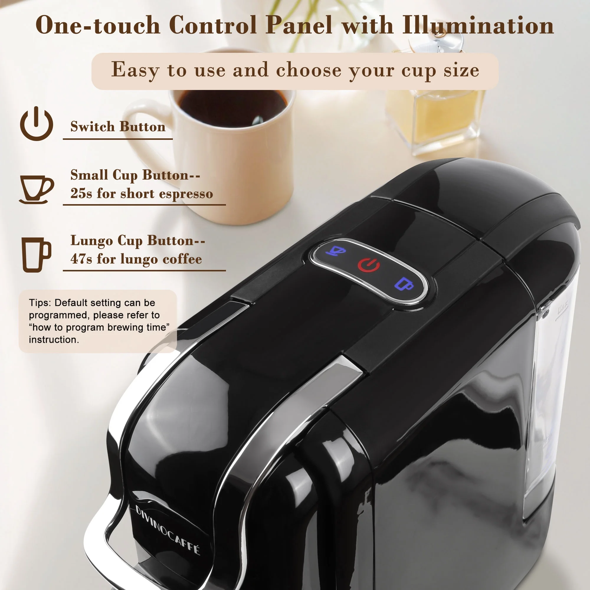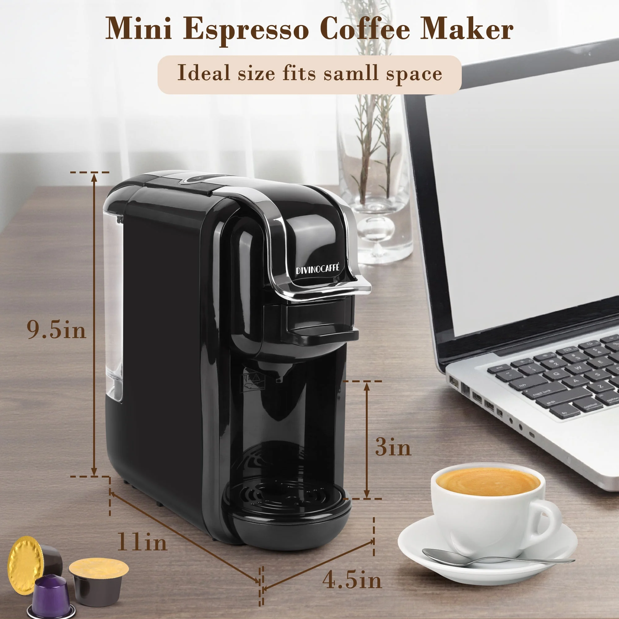 - Make a Cup of Authentic Espresso Coffee: The Divinocaff�� coffee machine allows you to make all your favourite espressos. You can enjoy a barista-brewed latte, cappuccino or macchiato at home. This compact espresso machine is perfect for any size kitchen. Not only is it perfect for home or office use, it is also ideal souvenirs for wedding, birthday, Christmas.