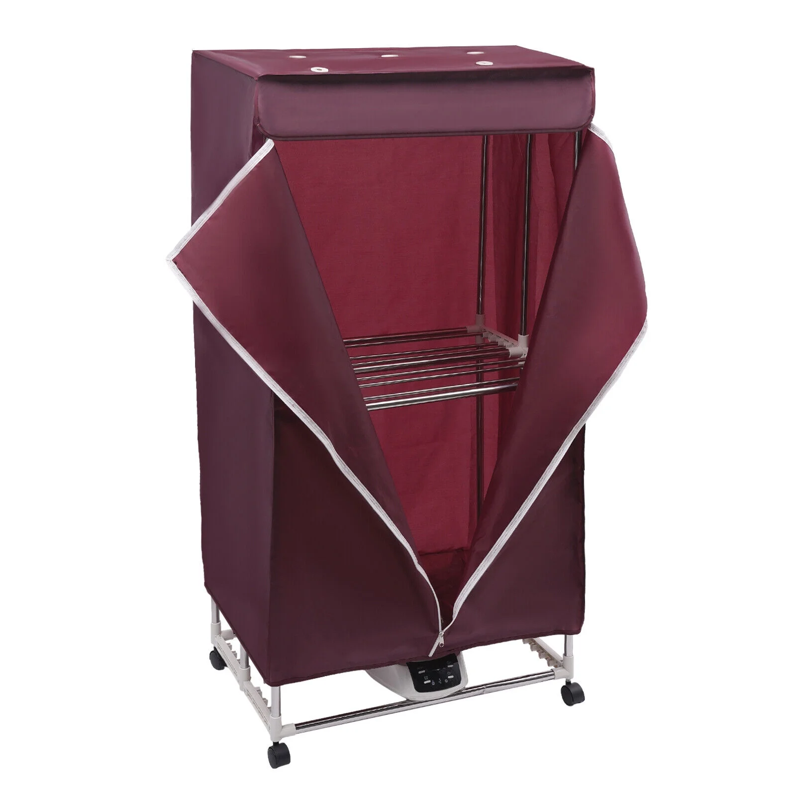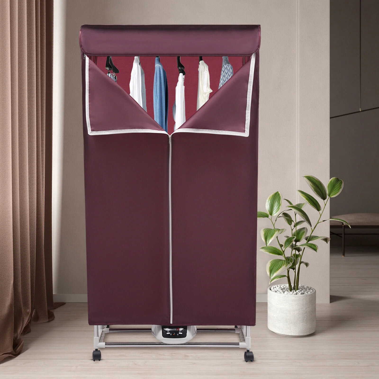 High Safety: It has a thermostat, thermal fuse, and IPX1 waterproof rating, over-temperature and abnormal power failure to ensure your safety when using it. - Thoughtful Design: You can set the drying time (0-240mins) according to the different clothes without the need to be around all the time. The universal wheels( two of them have brakes) make it easy for you to move and fix the product.