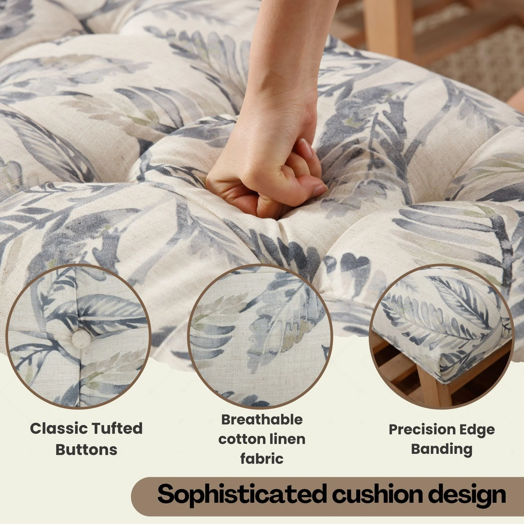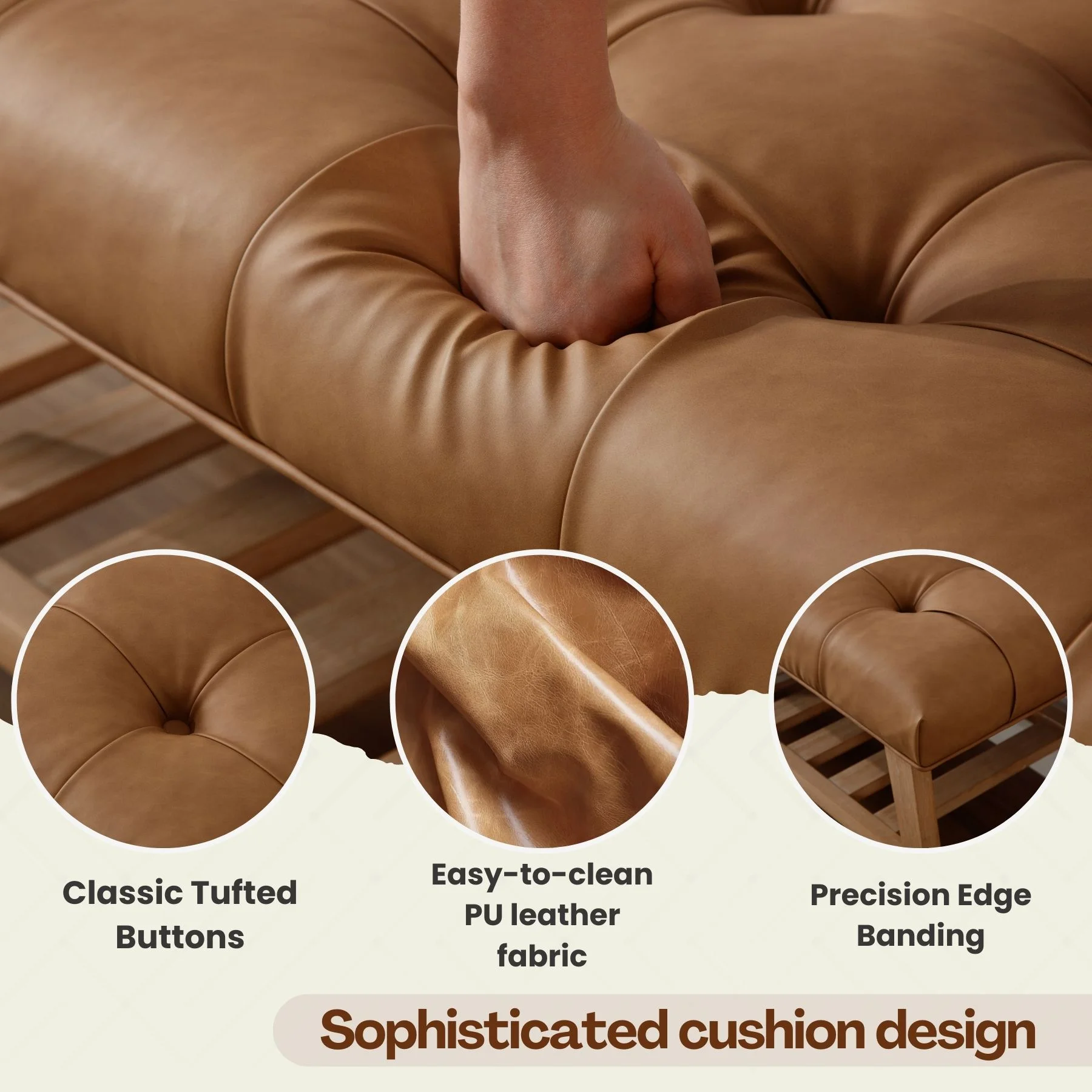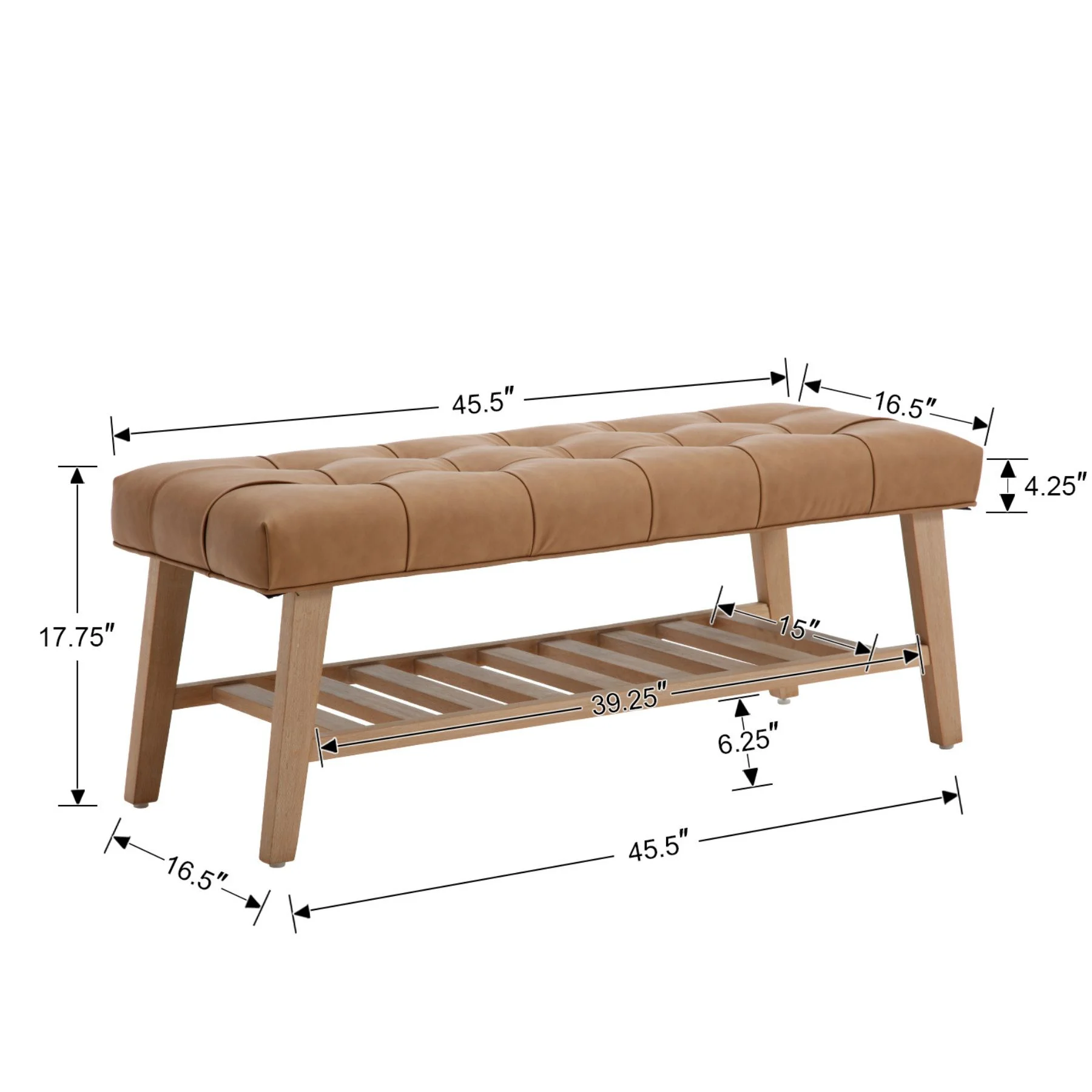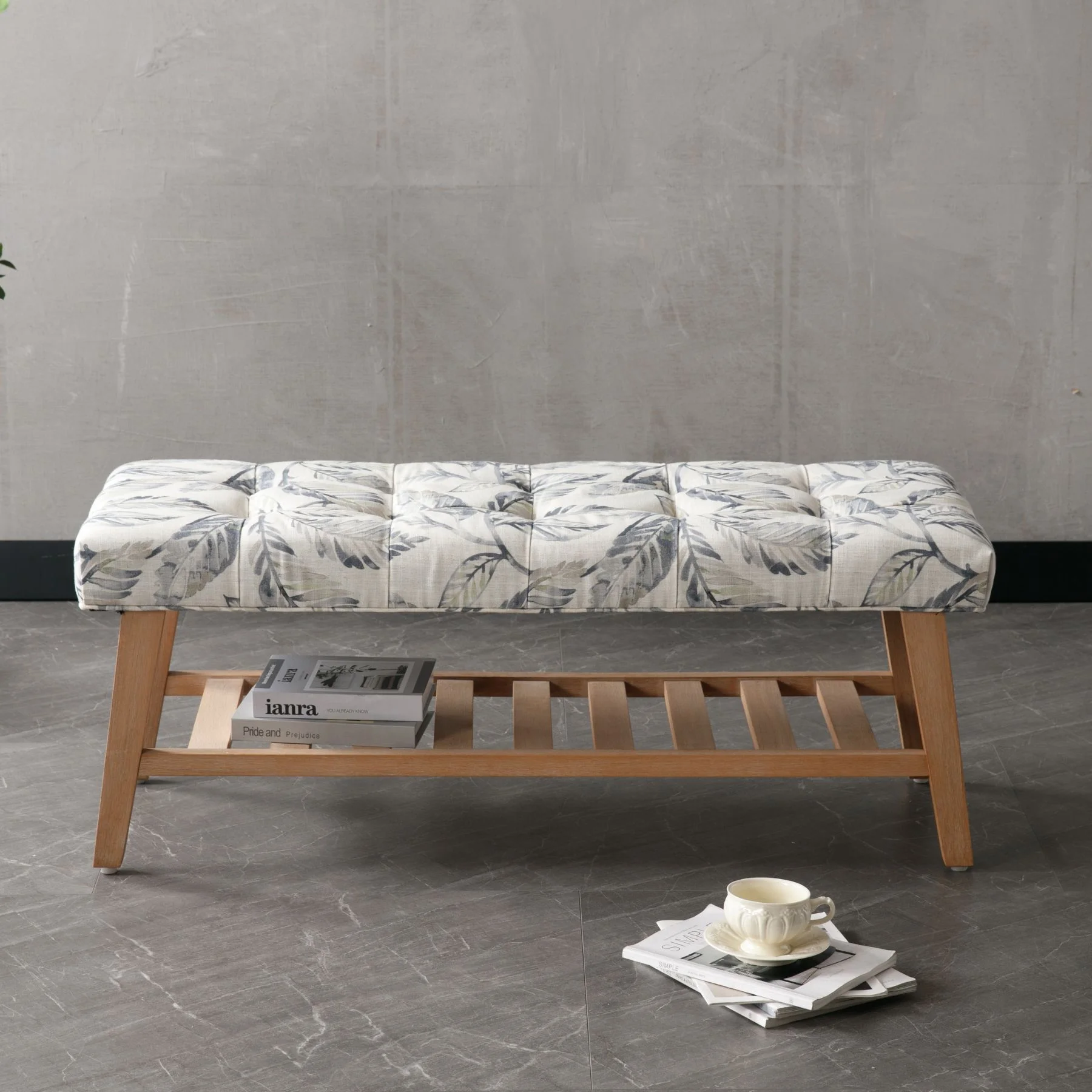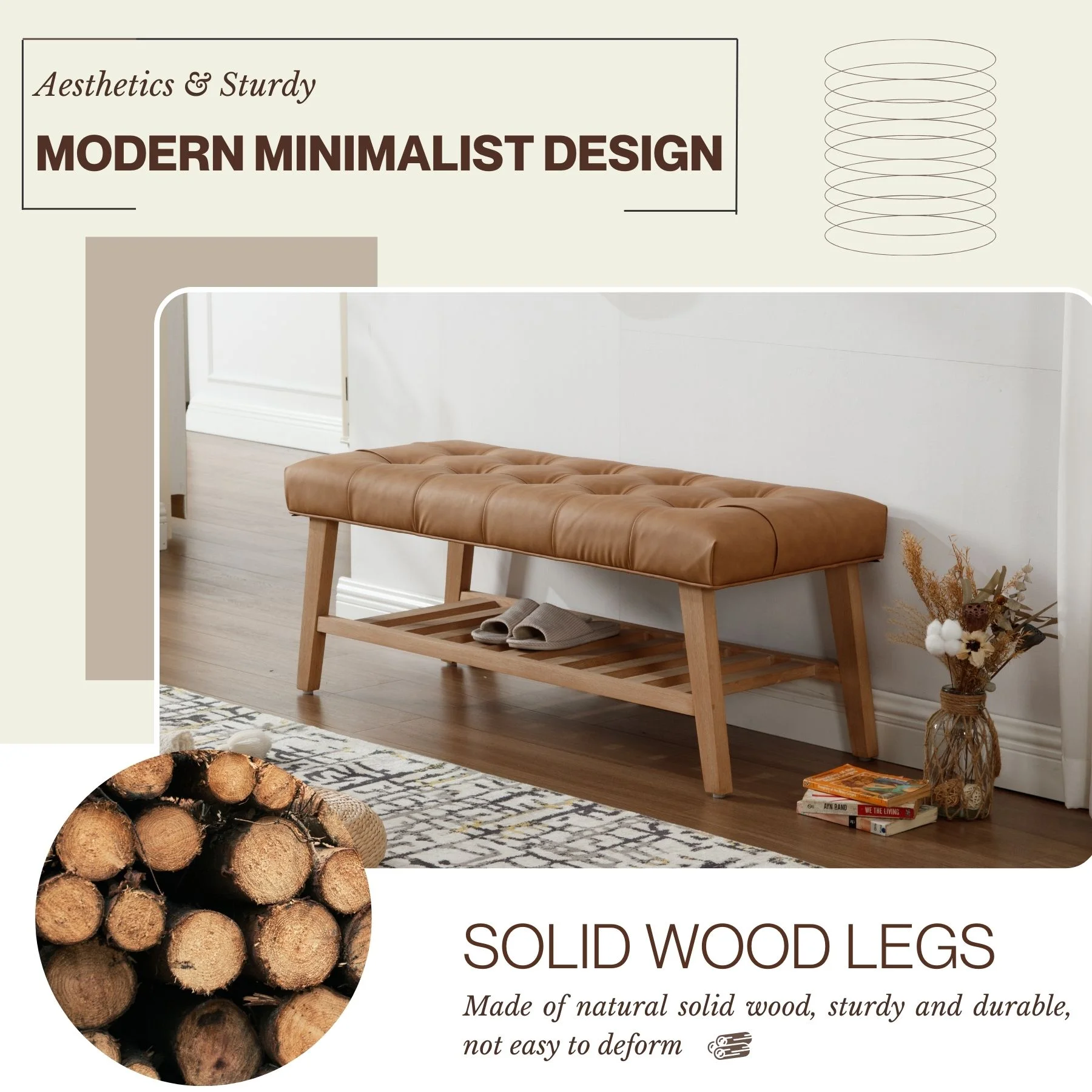 - Dual-Purpose Design:Combines a tufted linen seat (4.25" thick cushion) with open wooden shelf for shoes/baskets (holds 6-8 pairs)