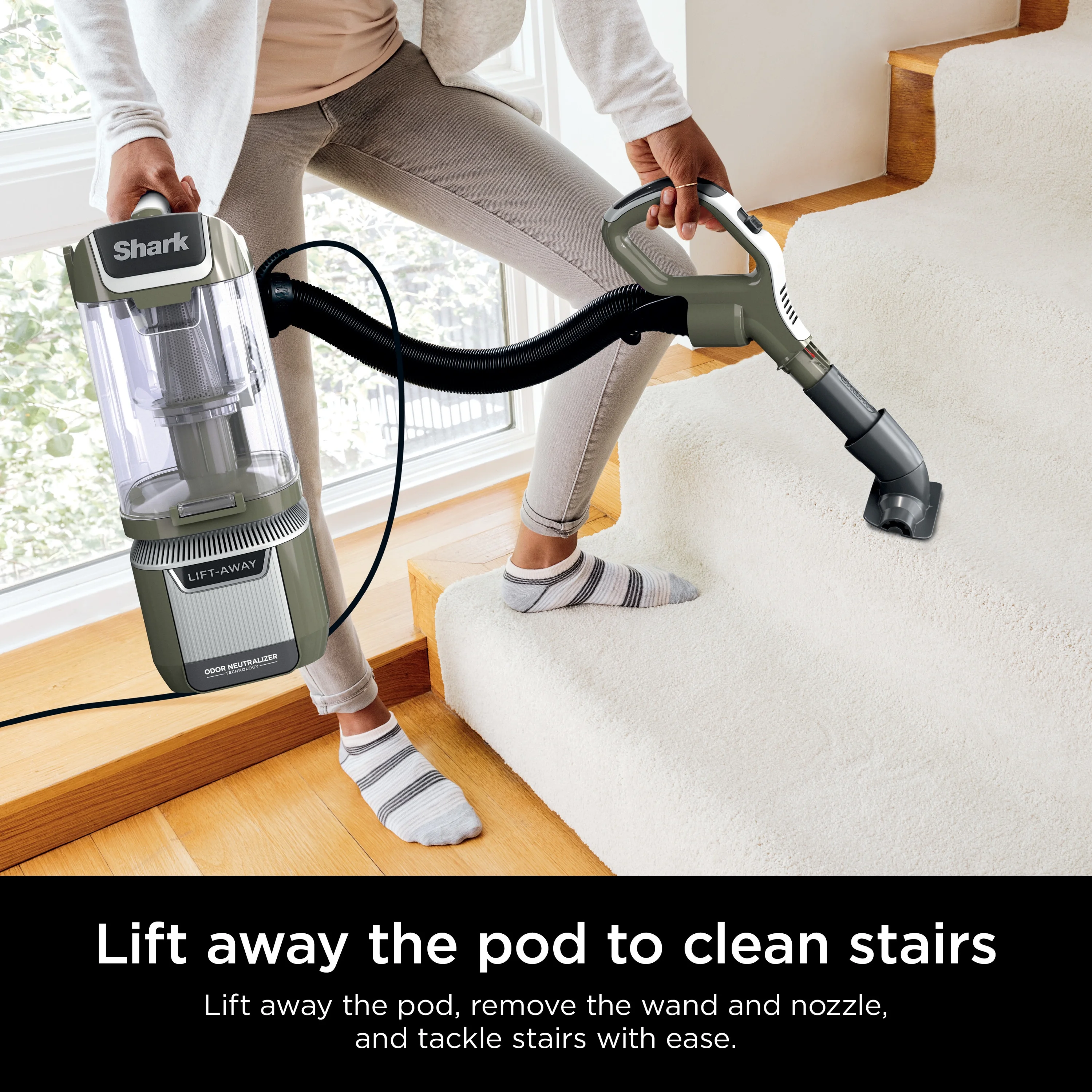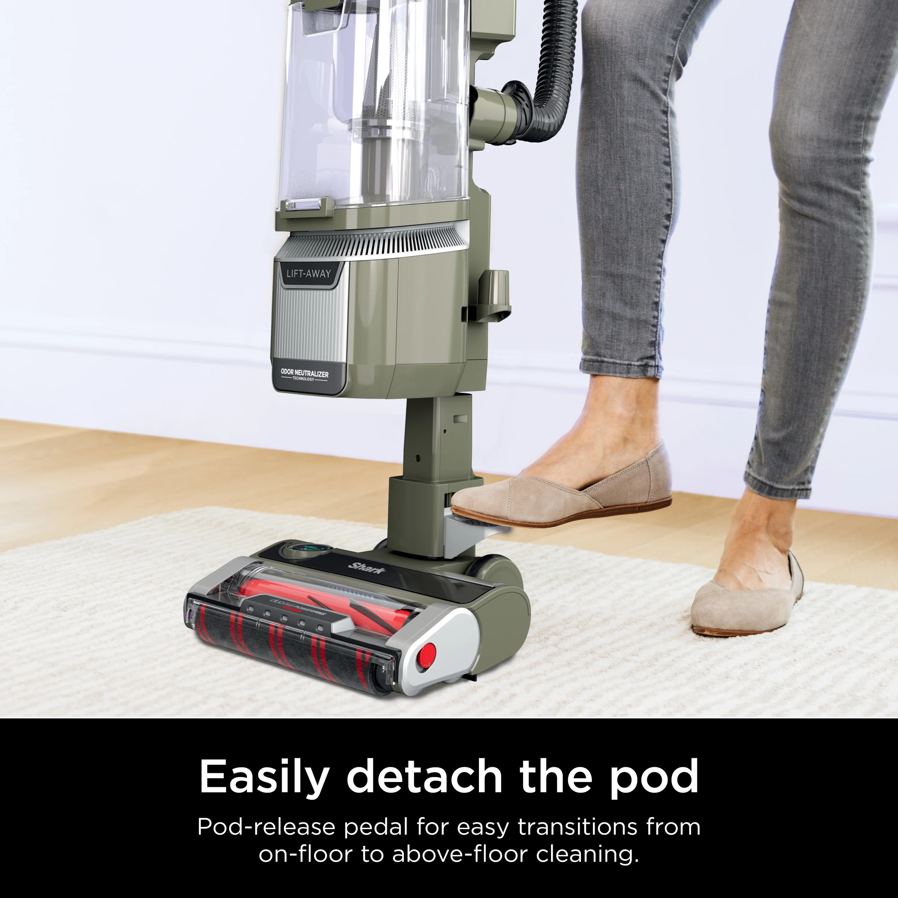 - LIFT-AWAY: Just step on the pedal to lift away the pod to clean stairs, furniture, and everywhere else in your home.