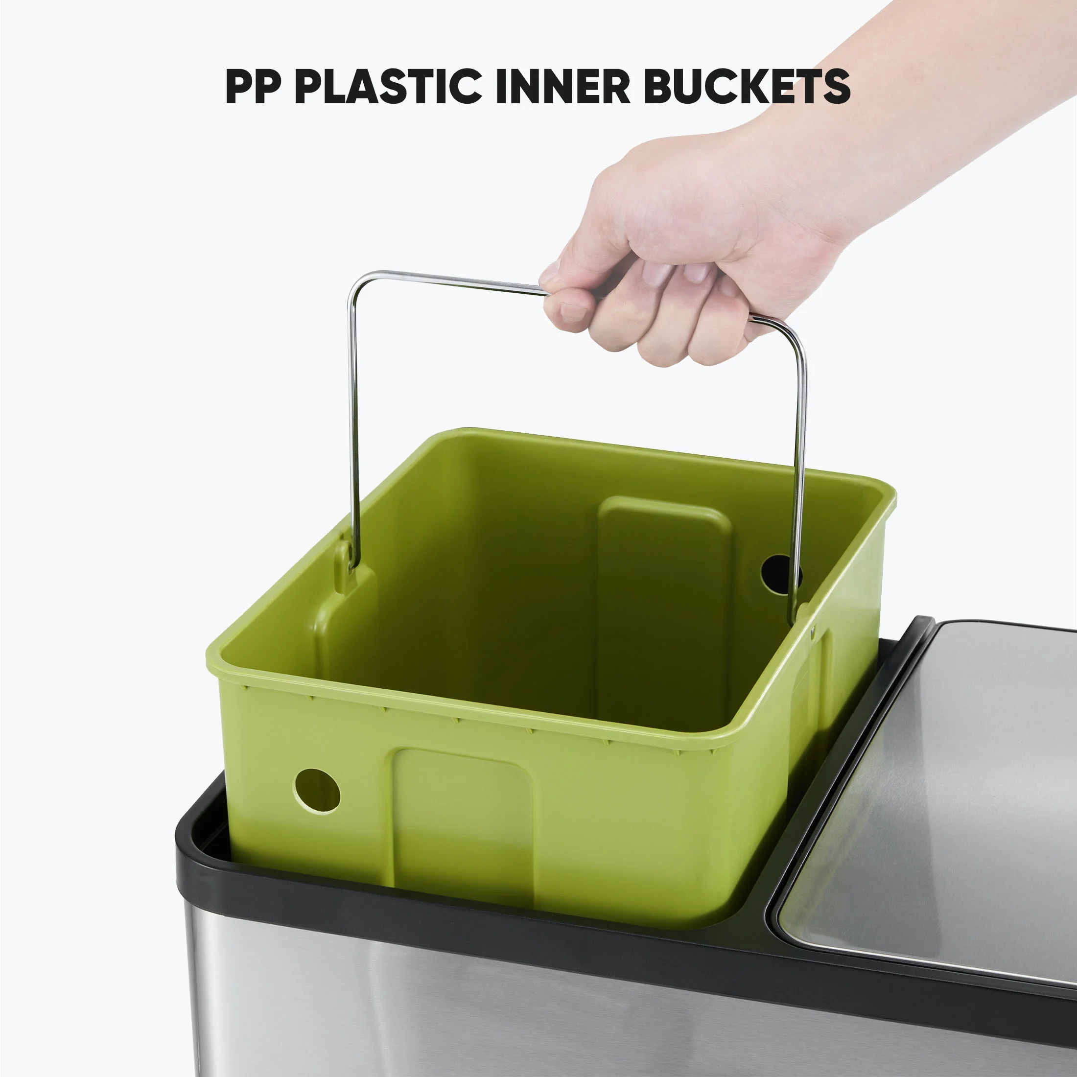 - ��Quiet Lid Closure��Effortlessly operated by foot pedal, the GIANNA trash can features a smooth and noiseless lid closure. Boasting two separate ergonomic pedals, each lid can be gently opened for convenient access, allowing even children to use with ease.