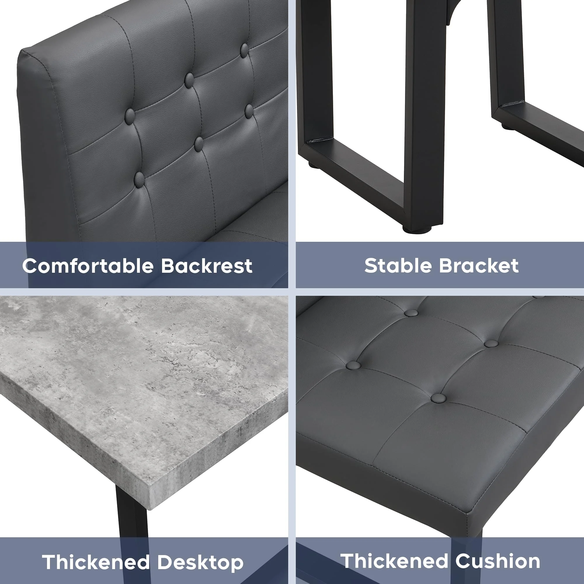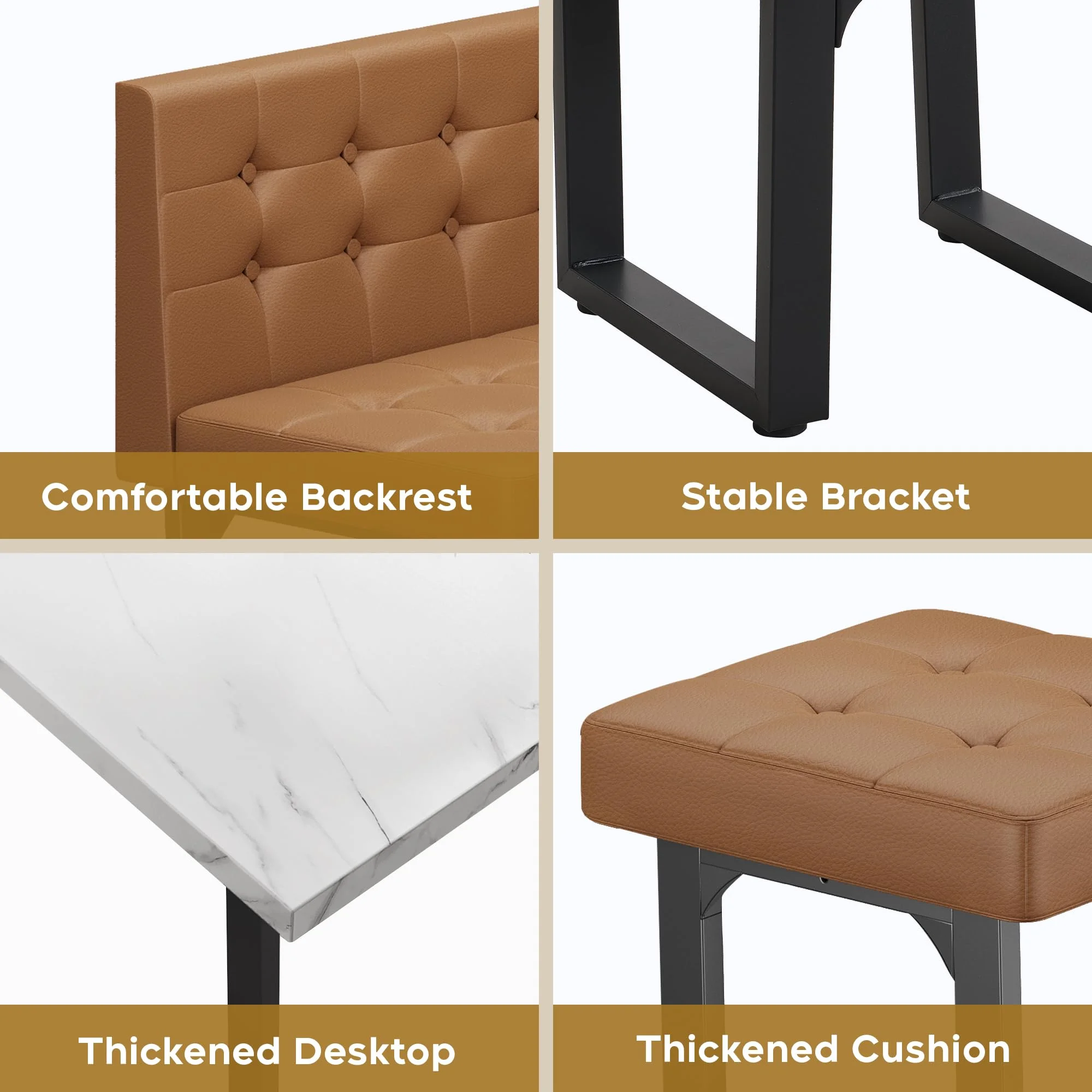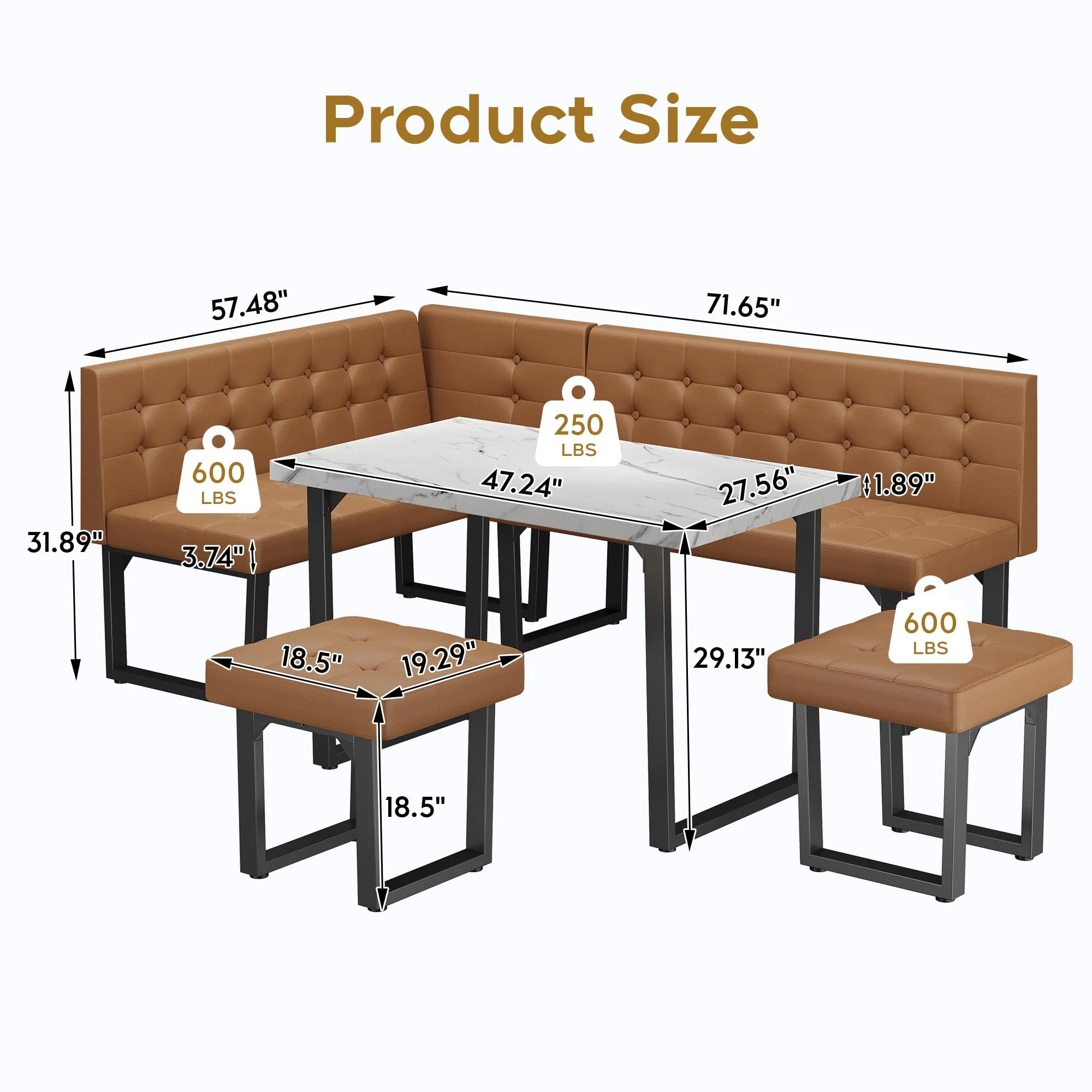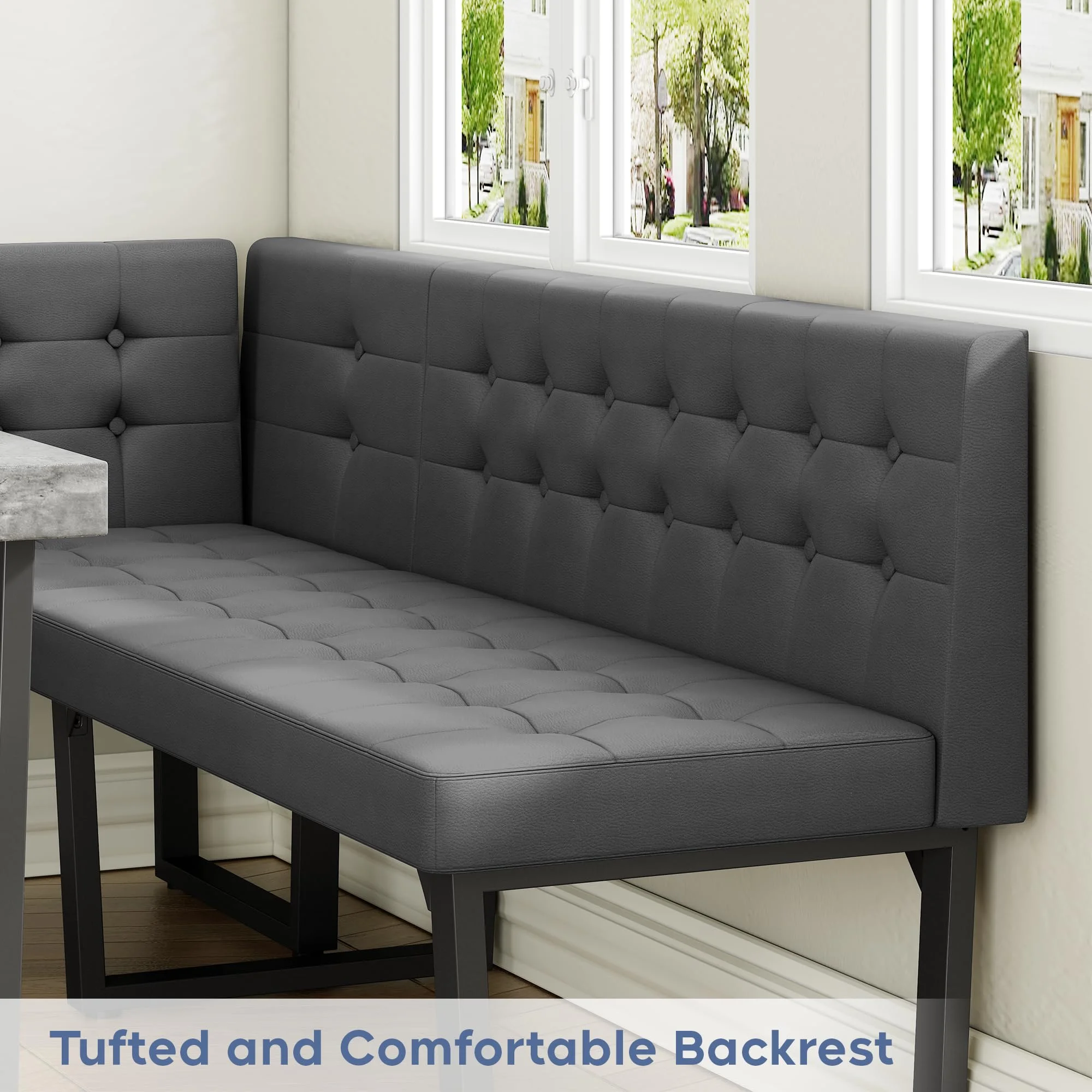 - [Durable and Sturdy] Crafted from , this corner dining table set is built to last. The wide U-shaped metal legs offer strong support, ensuring stability and durability over time��no more worrying about wobbling like with wooden-legged tables. With a surface area of 47.2" x 27.5", it comfortably seats 4-6 people for meals, games, or casual gatherings.