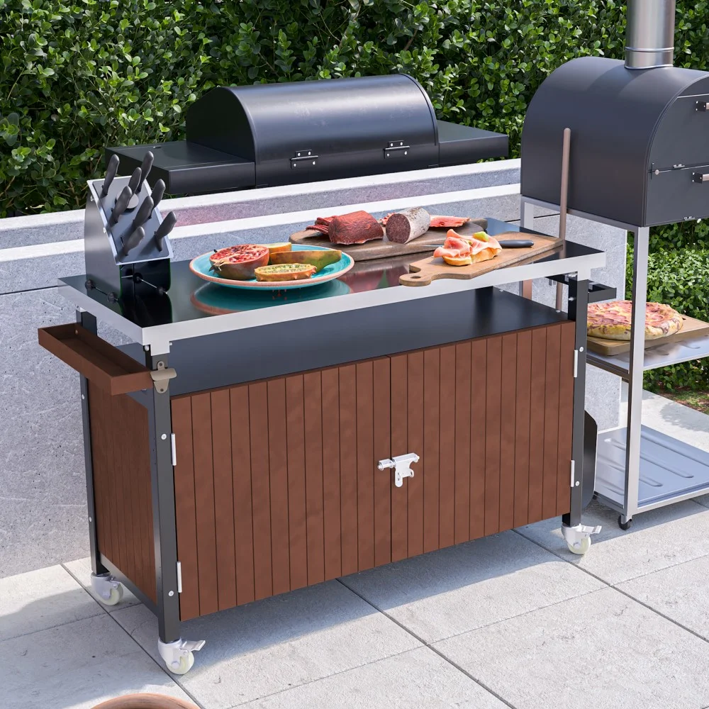 - ��Versatile Functionality�� More than just a grill cart, this versatile unit doubles as an outdoor bar, prep table, mobile kitchen island, and more. Whether you're mixing drinks, prepping meals, or serving guests, this cart is your ultimate outdoor companion.