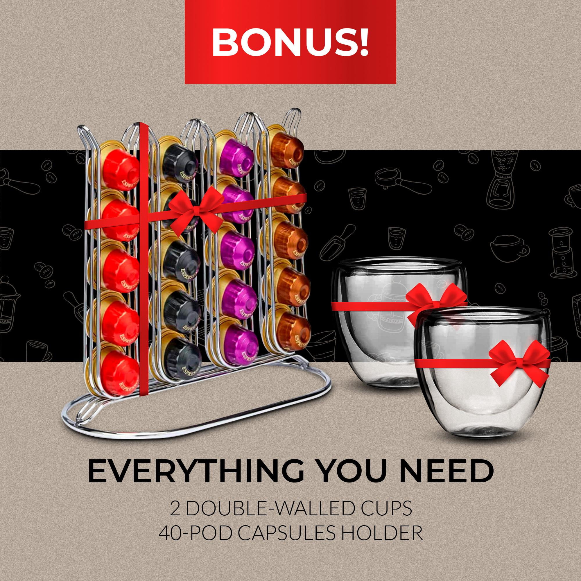 - Compatible with Nespresso Original Line Capsules: Designed for use with the Original Line Nespresso capsules or any other branded capsules. The Kava is equipped with a fast heat-up system that reaches the ideal temperature in under 30 seconds!