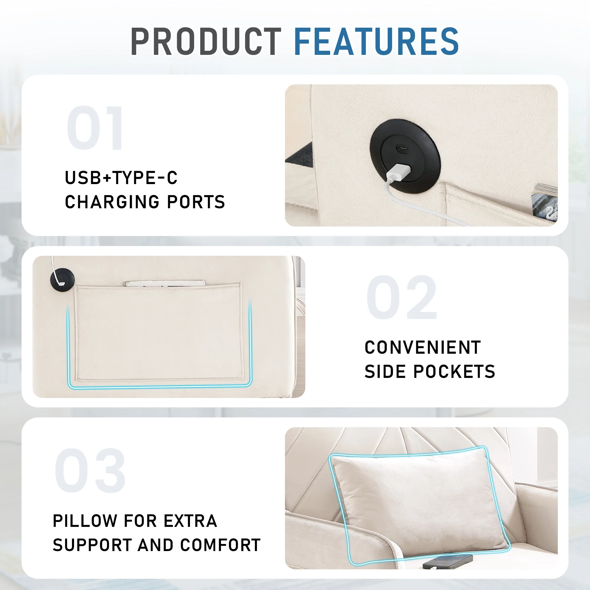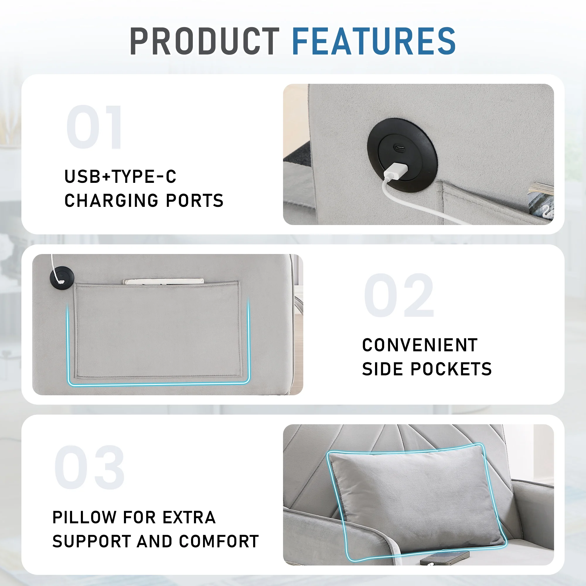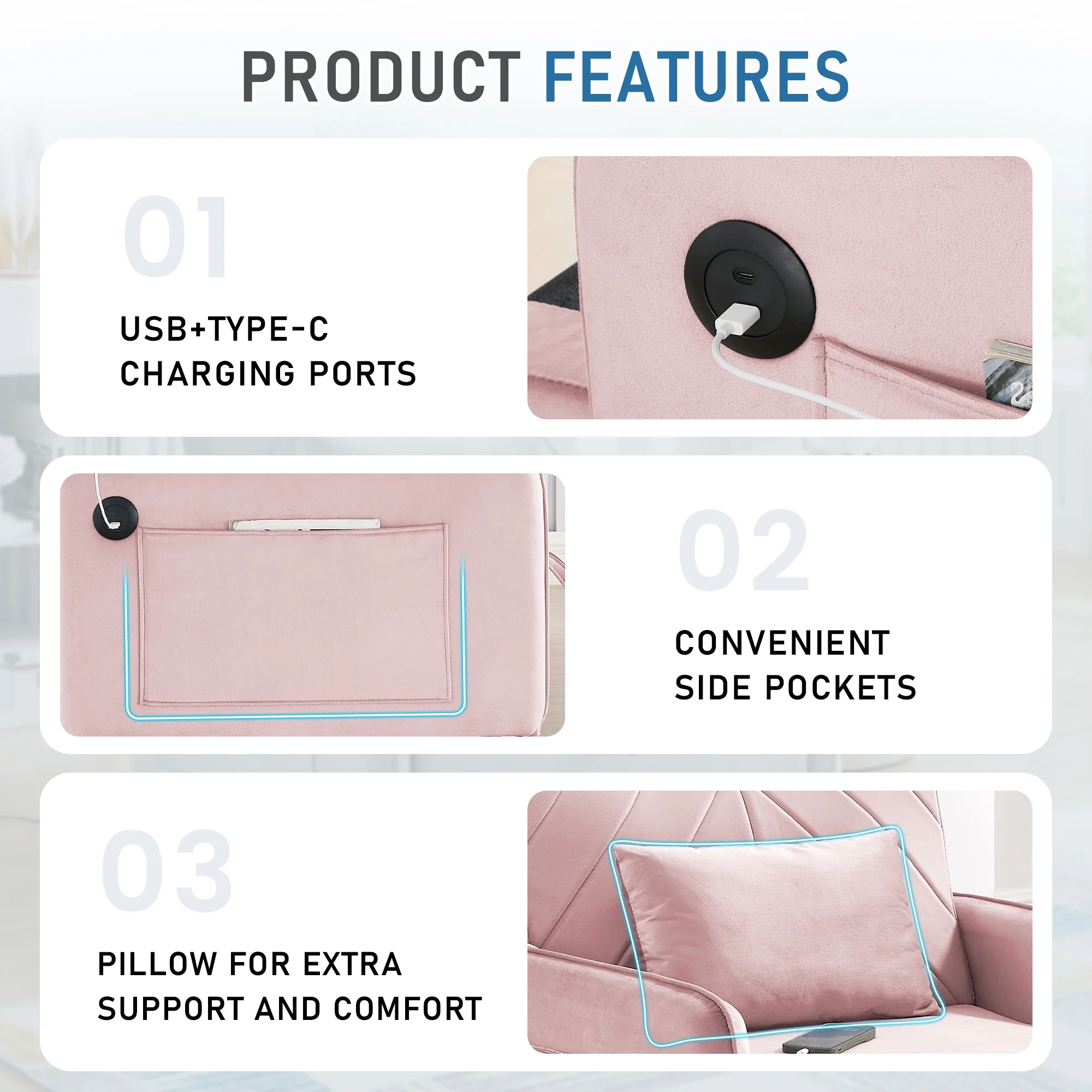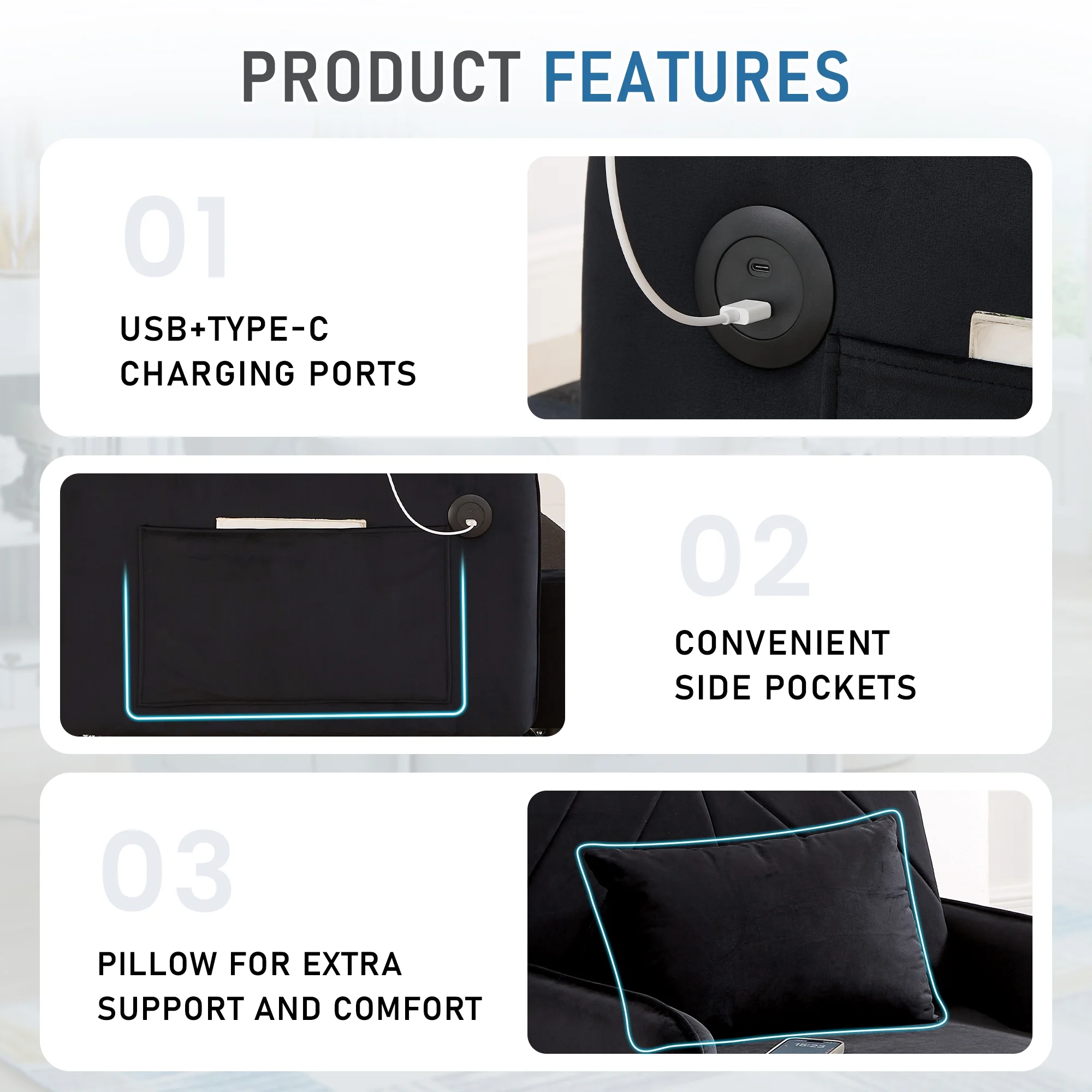 - Soft velvet fabric with high density foam padding for comfort and support
