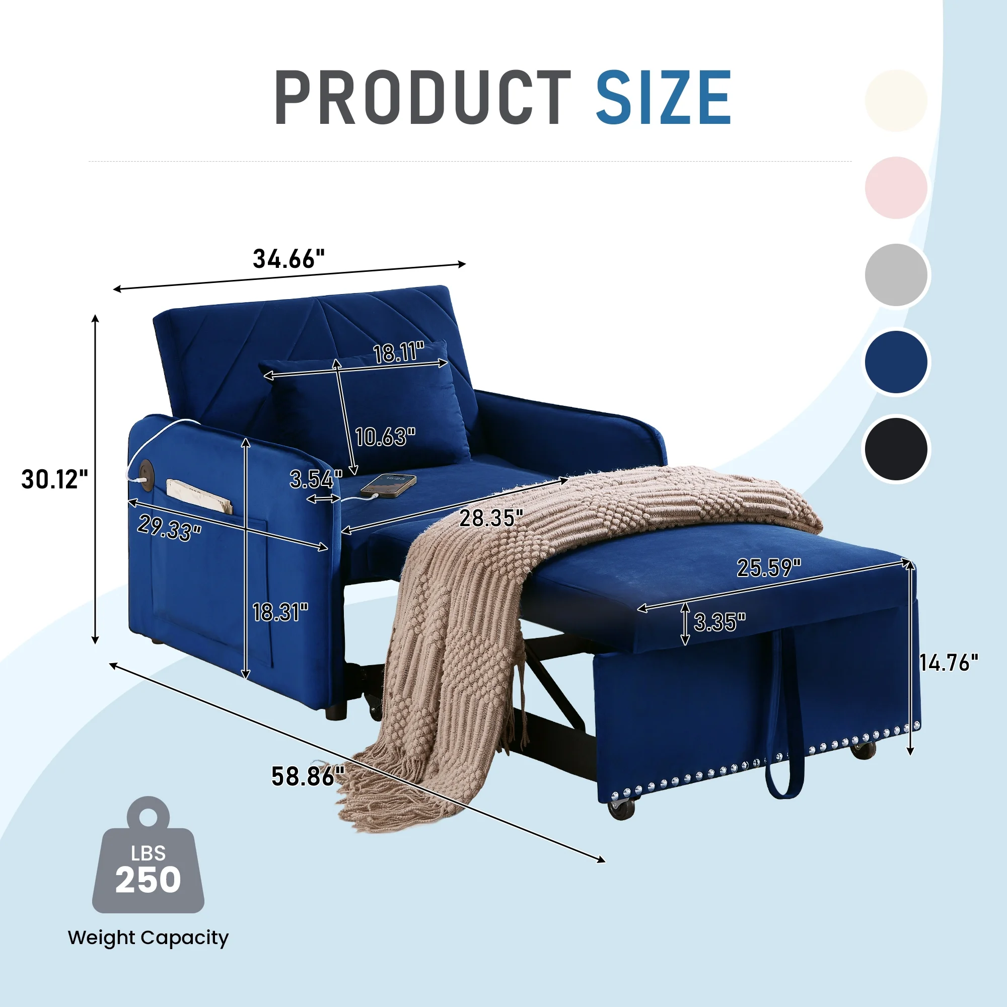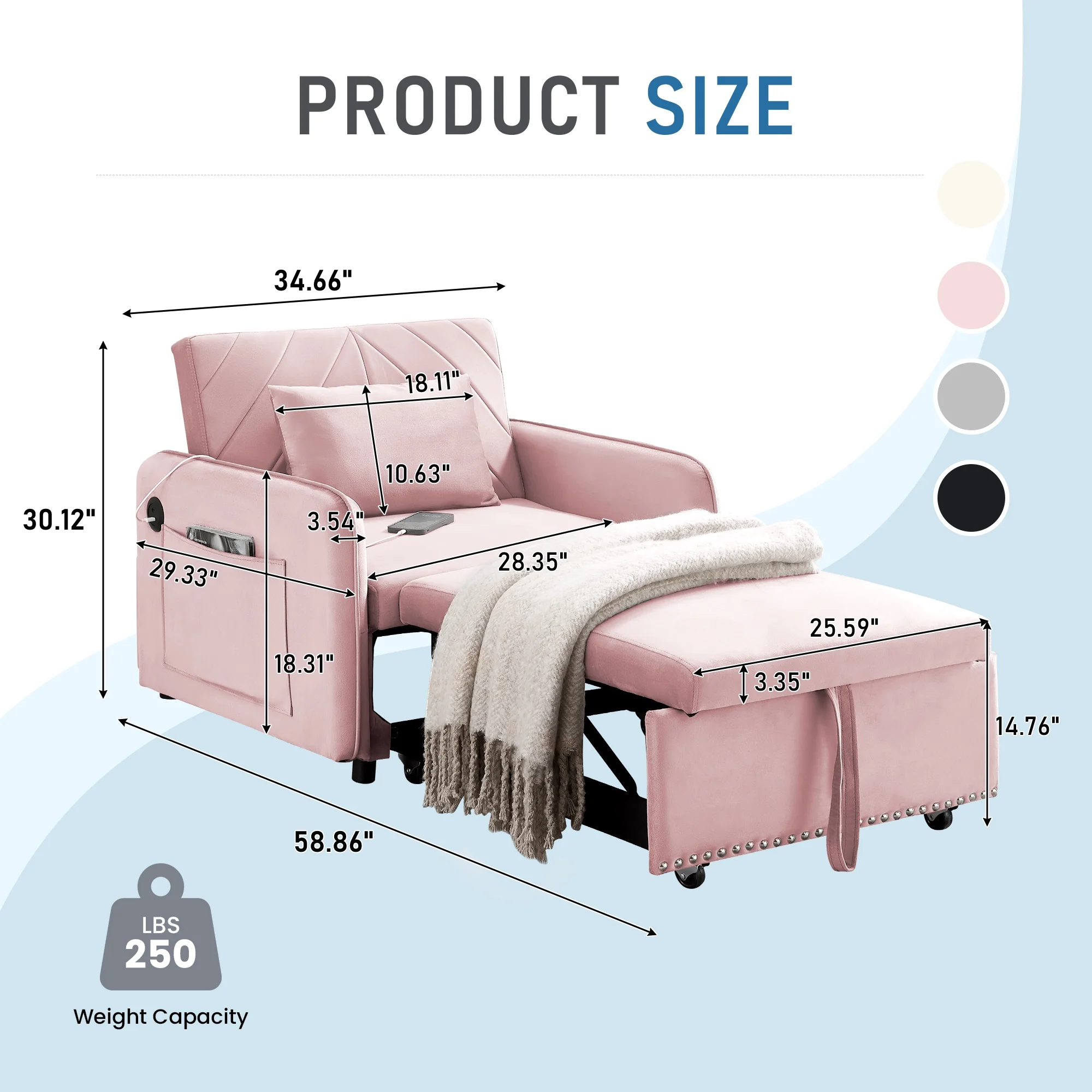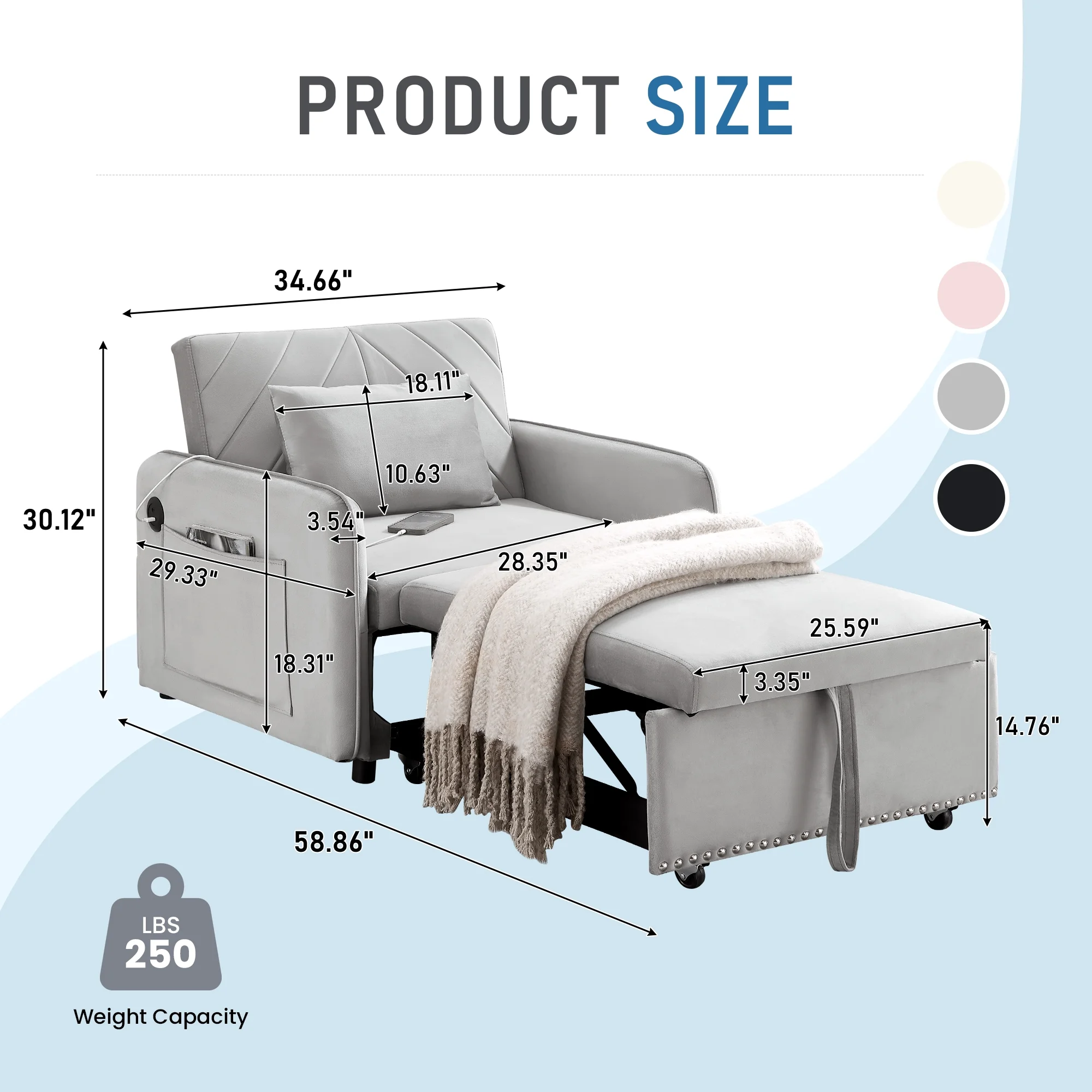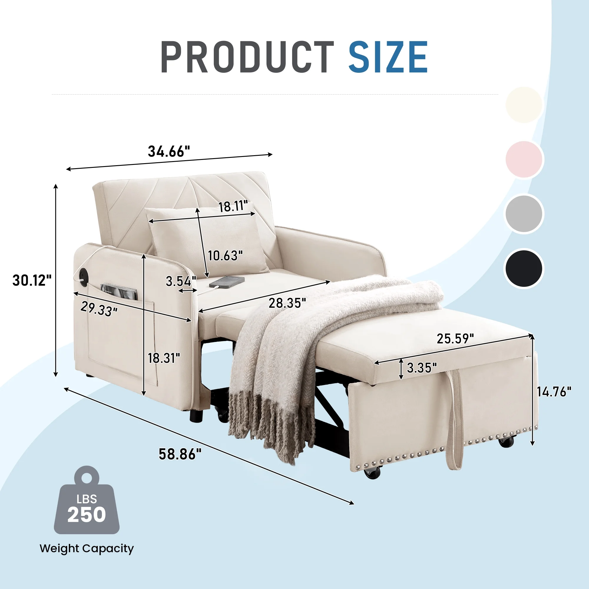 - Lunale 3-in-1 Multi-Funtional Sofa Chair Bed for Adults