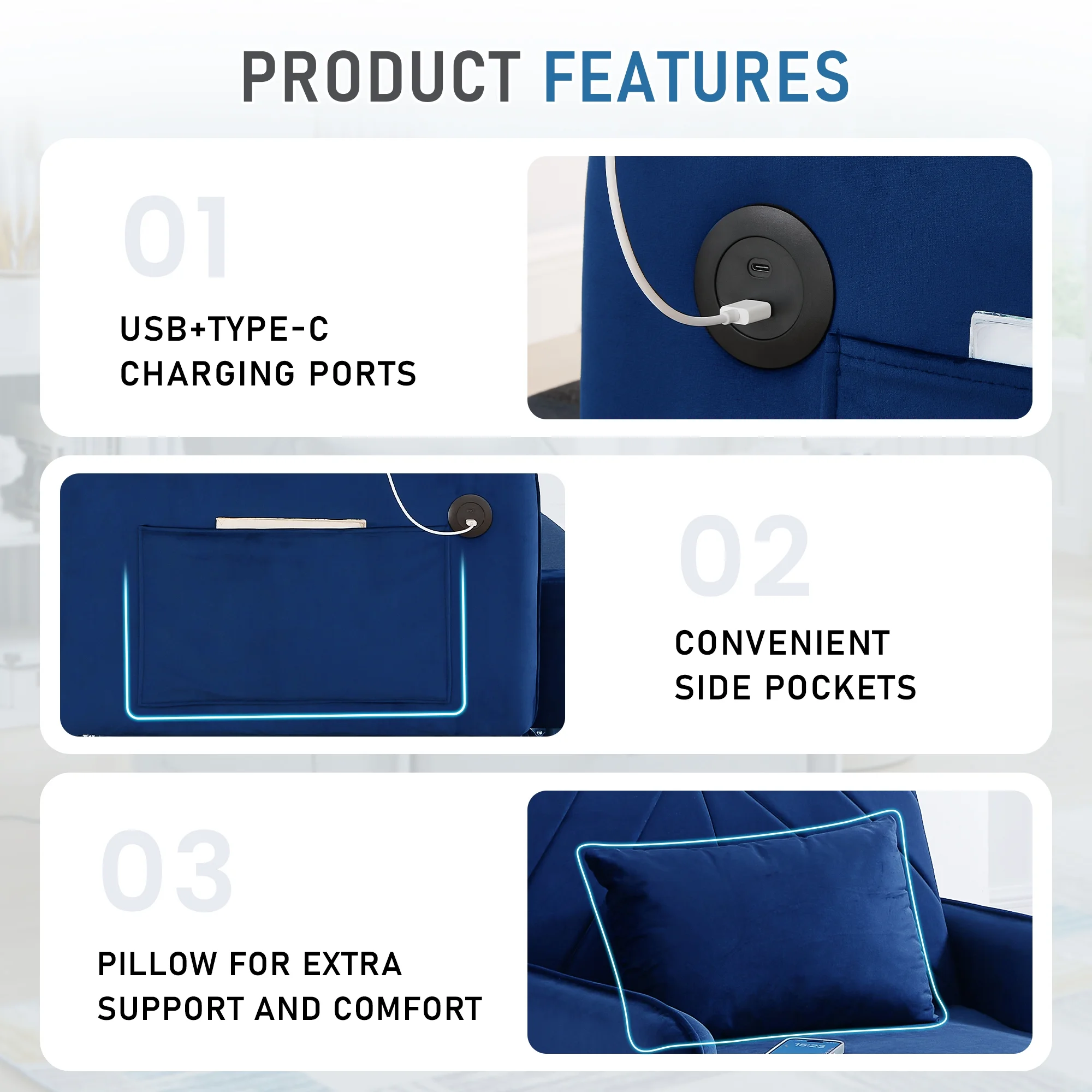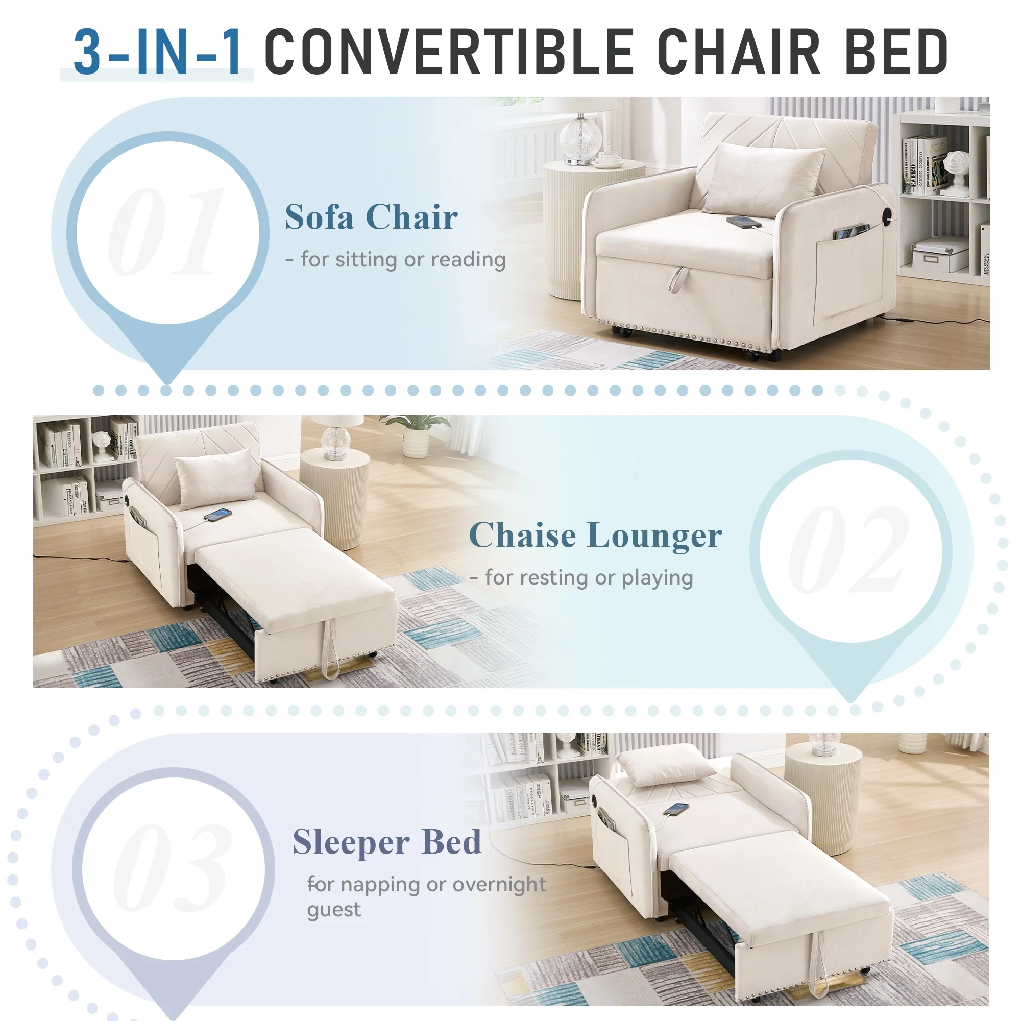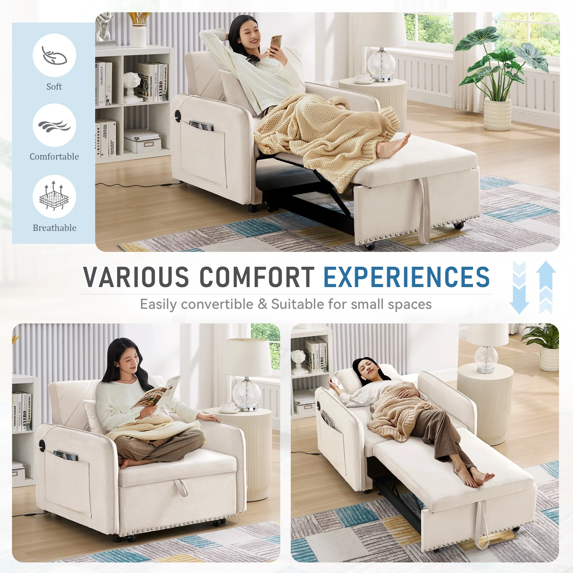 Elevate Your Space in Practicality and Cozy with Our Convertible Sleeper Sofa Chair
