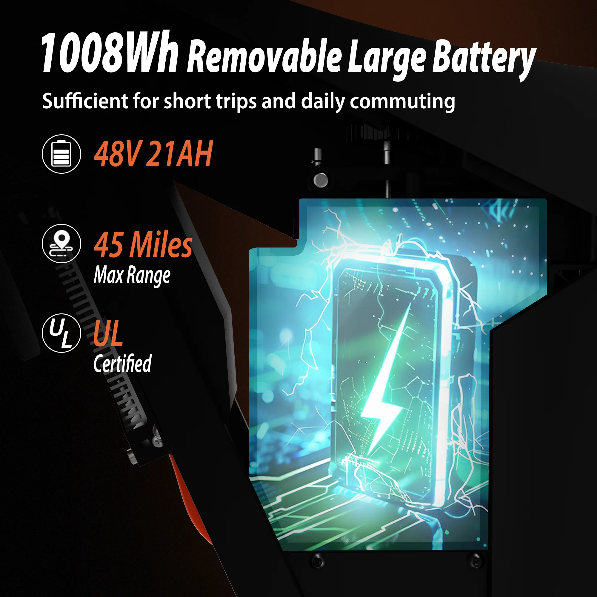 - Ride Further, Worry Less:The Tuttio Soleil01 features a 48V 21AH high-capacity battery that offers a remarkable range of up to 45 miles. This battery provides 31% more capacity than other models on the market, with an additional 16% increase in range, ensuring you can go the distance without frequent recharging. Enjoy extended rides with peace of mind, thanks to quick and safe charging in just 7-8 hours.