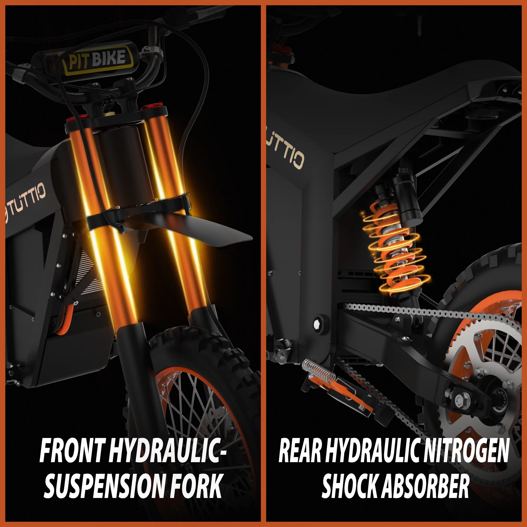 - Smooth and Comfortable Ride:Equipped with an advanced hydraulic suspension system, the Tuttio Soleil01 offers a smooth and comfortable ride, even on the roughest terrain. The front fork has a 40mm diameter and 6-inch travel, while the rear suspension features adjustable oil and nitrogen shocks. Whether you��re speeding through rugged trails or cruising on city streets, this suspension system guarantees stability and comfort in every ride.
