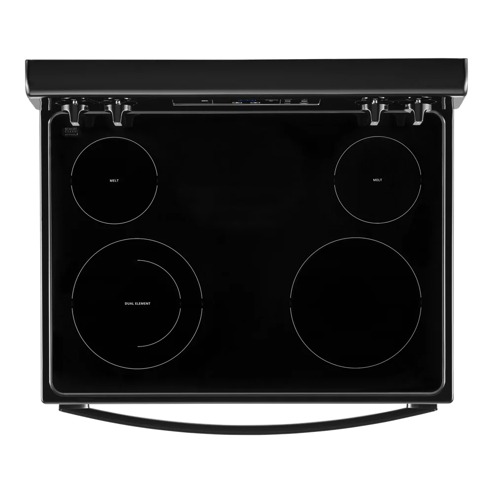 - Ceramic glass cooktop has raised edges helping contain spills