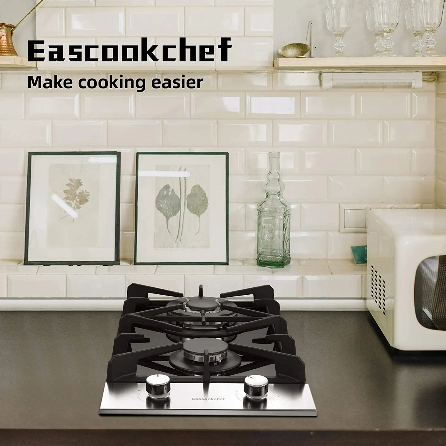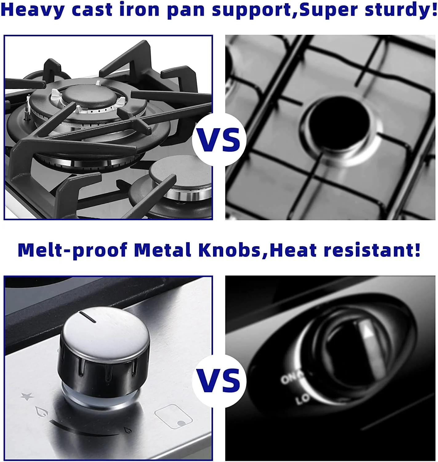 - ��DURABLE GAS STOVE TOP��Heavy-duty cast iron grate, super solid! One-piece cast iron grate design, stable and will not deform. Unique eight claw structure, hold pans firmly, won't drop a pan. The distance between two burners is around 8 inches, suitable for most pan sizes.
