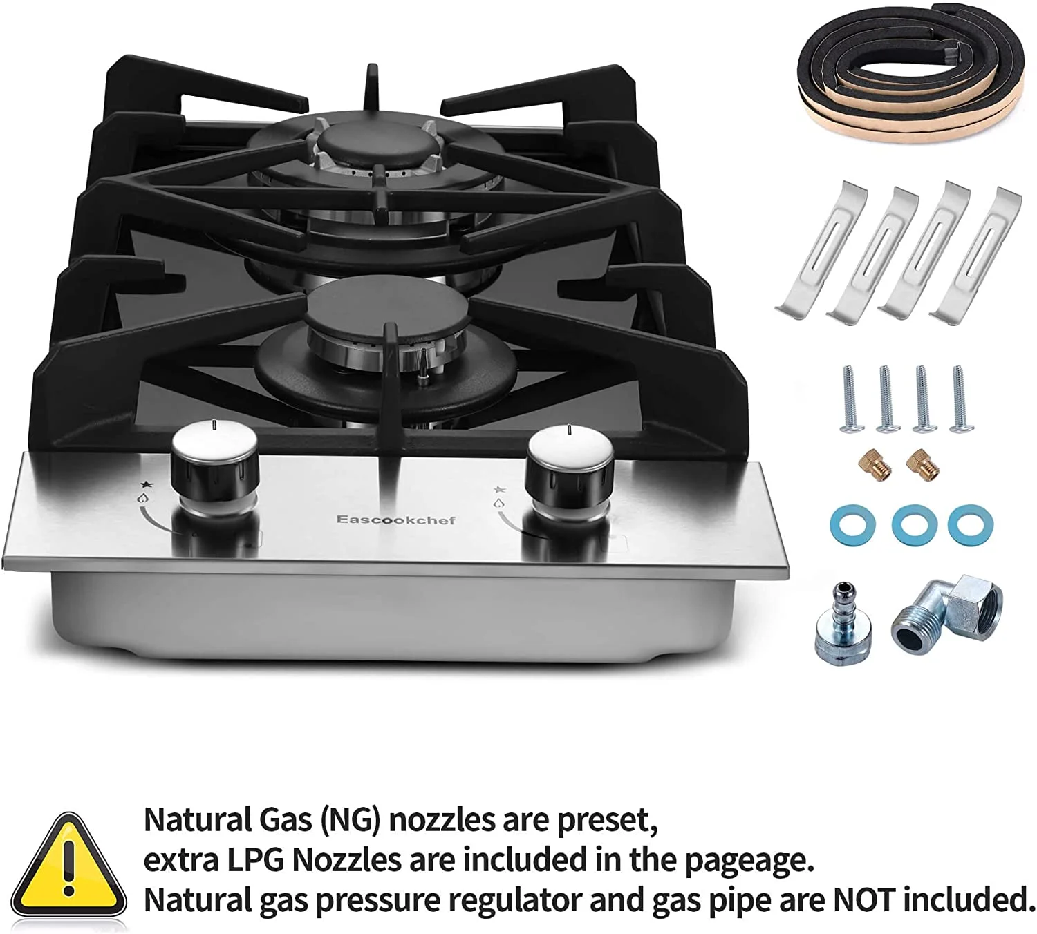 - ��GAS COOKTOP WITH 2 BURNERS��Features two sealed burners of different power, burner power is 5,000-BTU and 10,500-BTU, can be adjusted individually, meet various cooking needs. This kitchen stove is preinstalled for NG, extra LPG Nozzles included, can be changed to meet your needs.