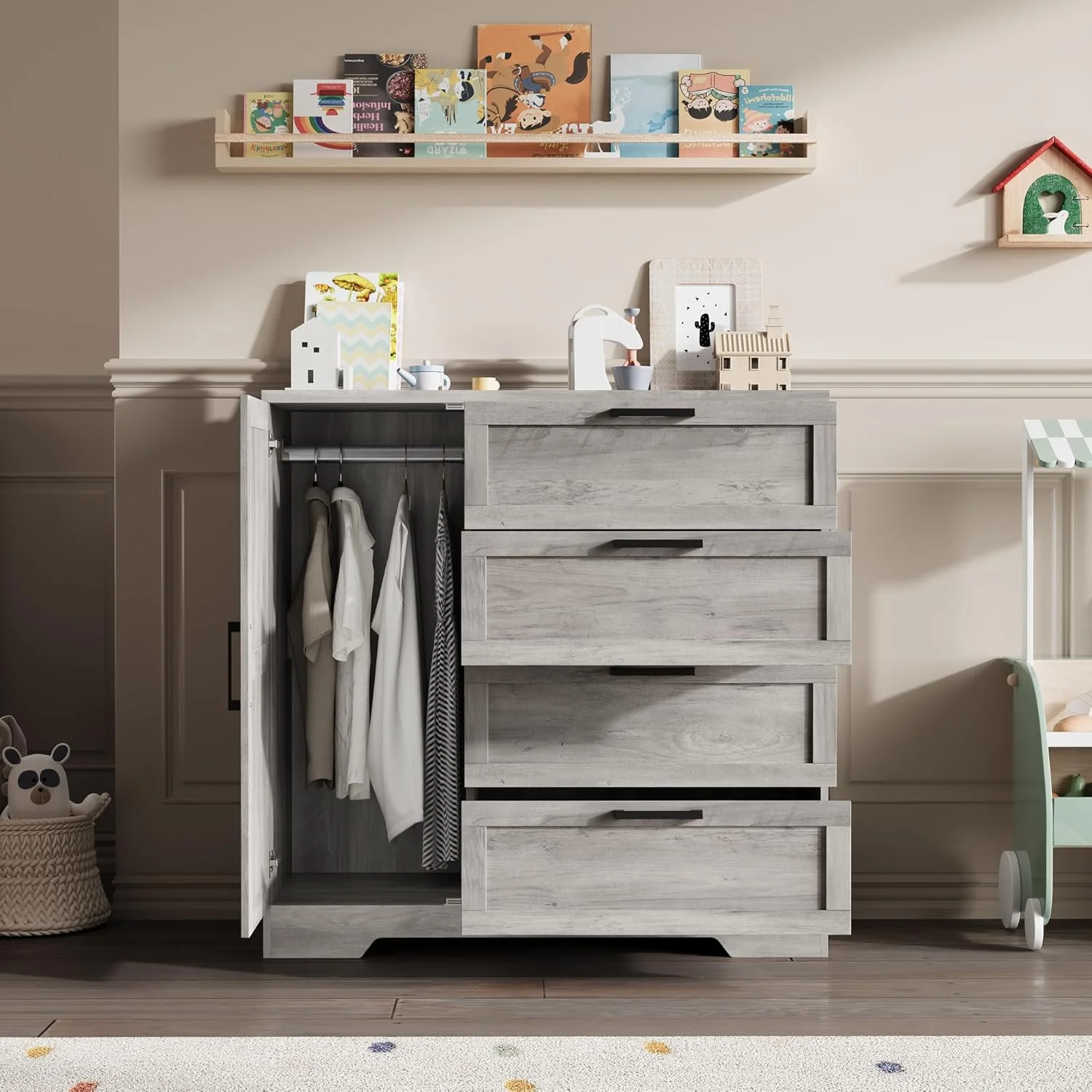 - ��Child-Safe with Included Anti-Tip Device��Safety is prioritized with a built-in anti-tipping device. Easily secure this freestanding armoire closet to your wall to prevent accidental tipping, making it a stable and secure storage solution for nurseries, kids' rooms, bedrooms, or any living space. Meets US safety standards.