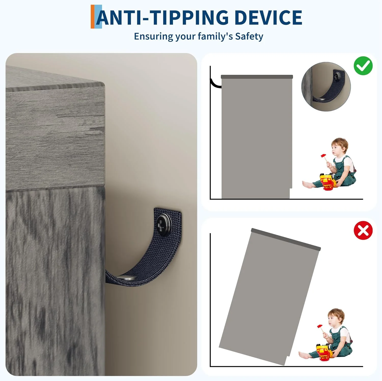 ? Anti-tip safety kit for secure, child-friendly use