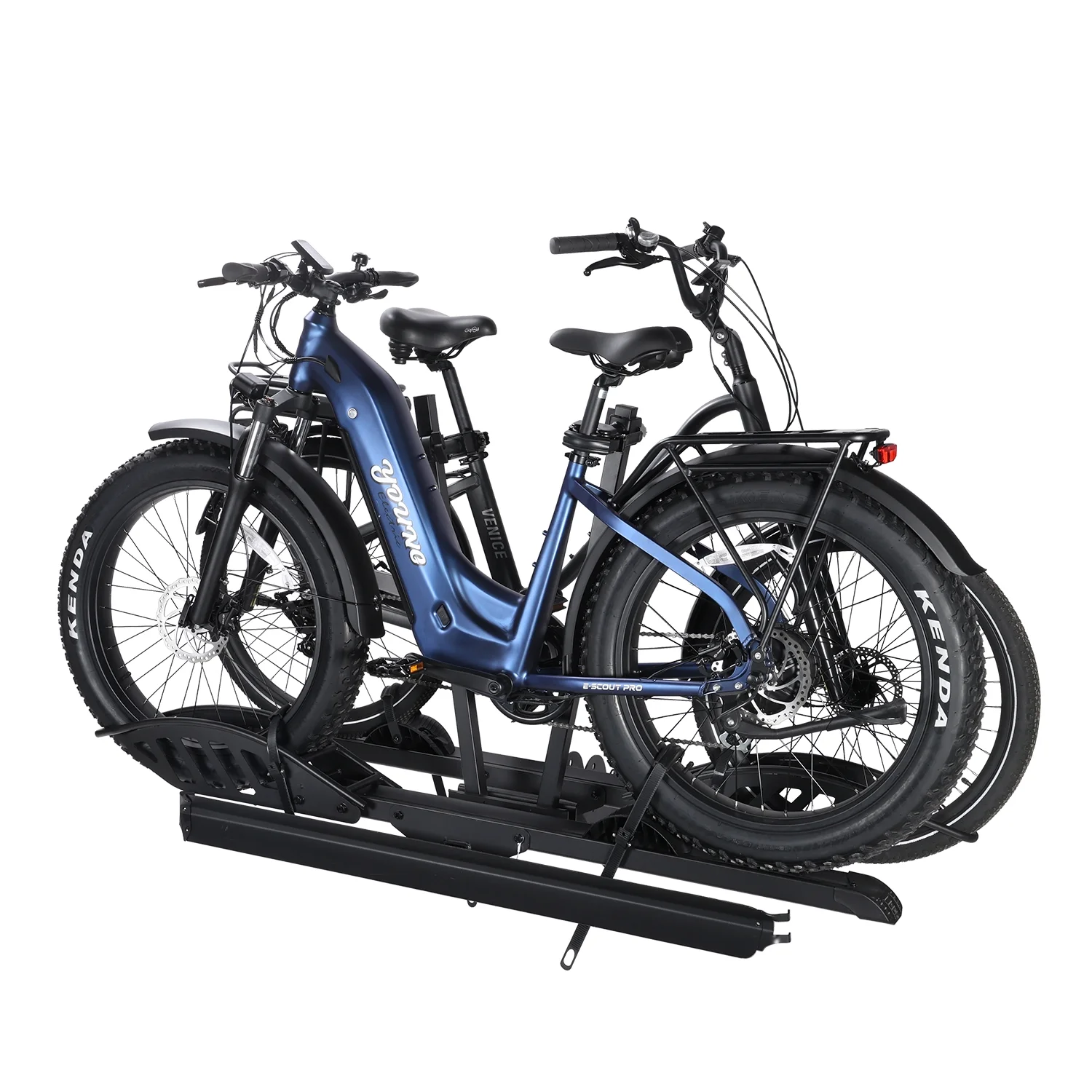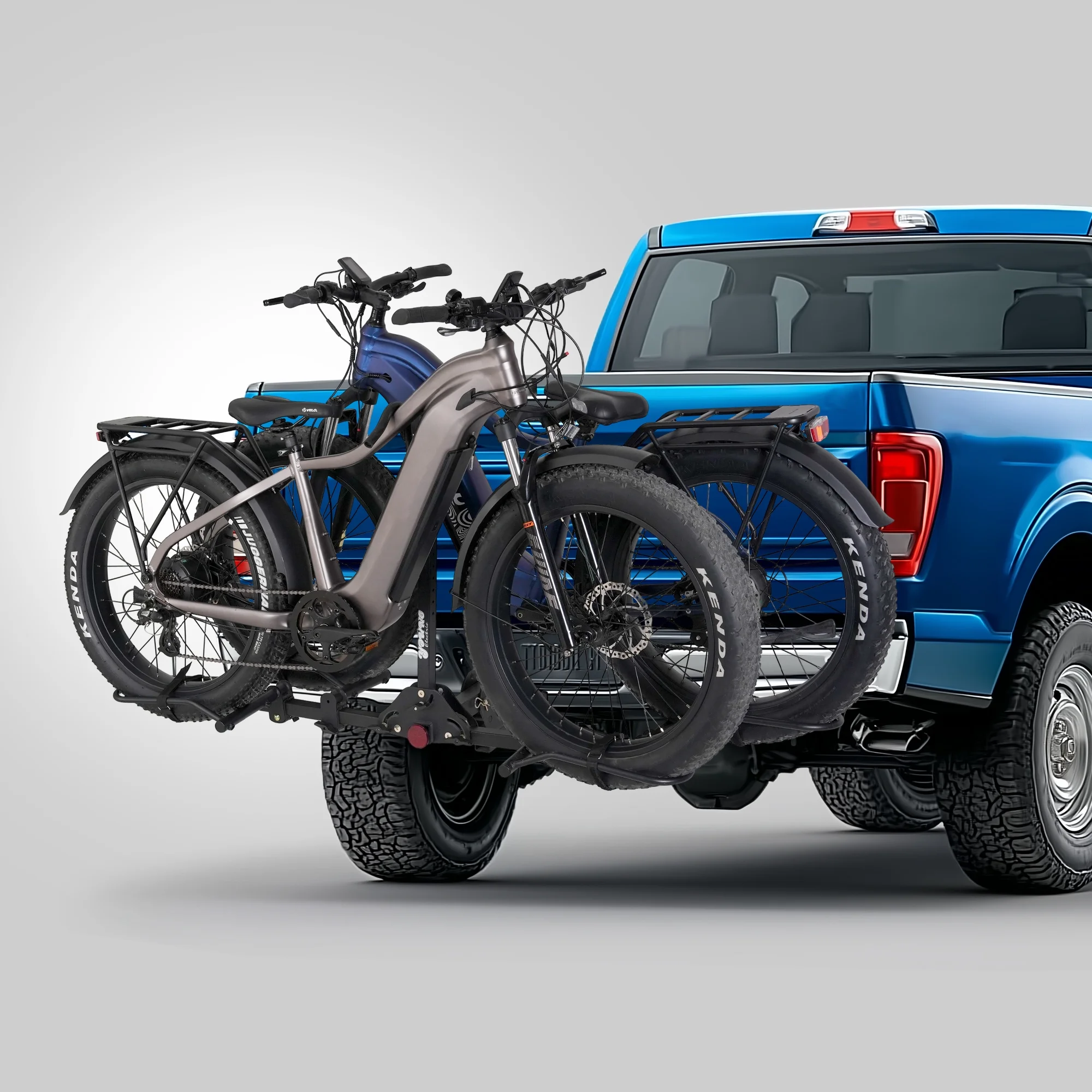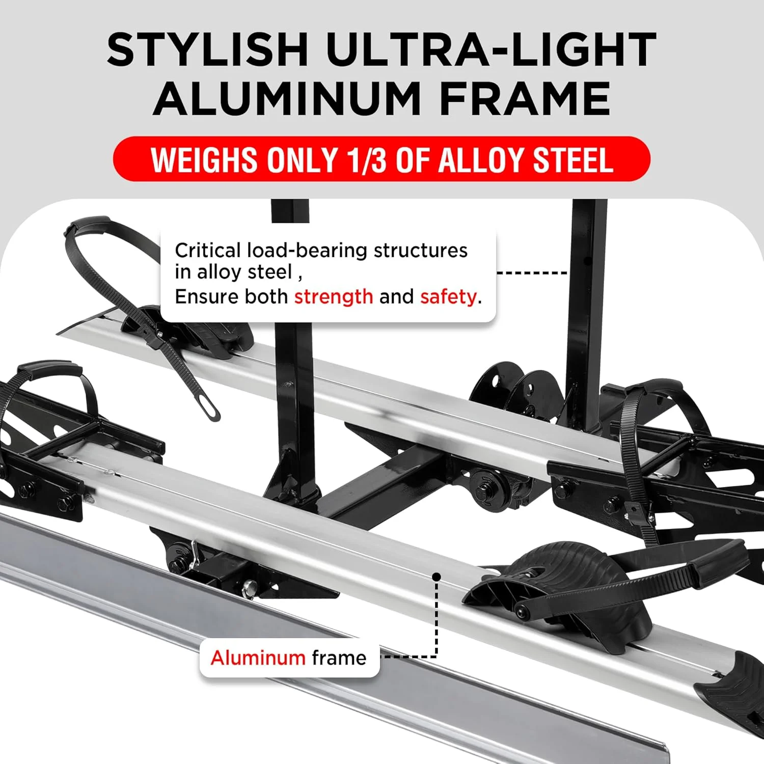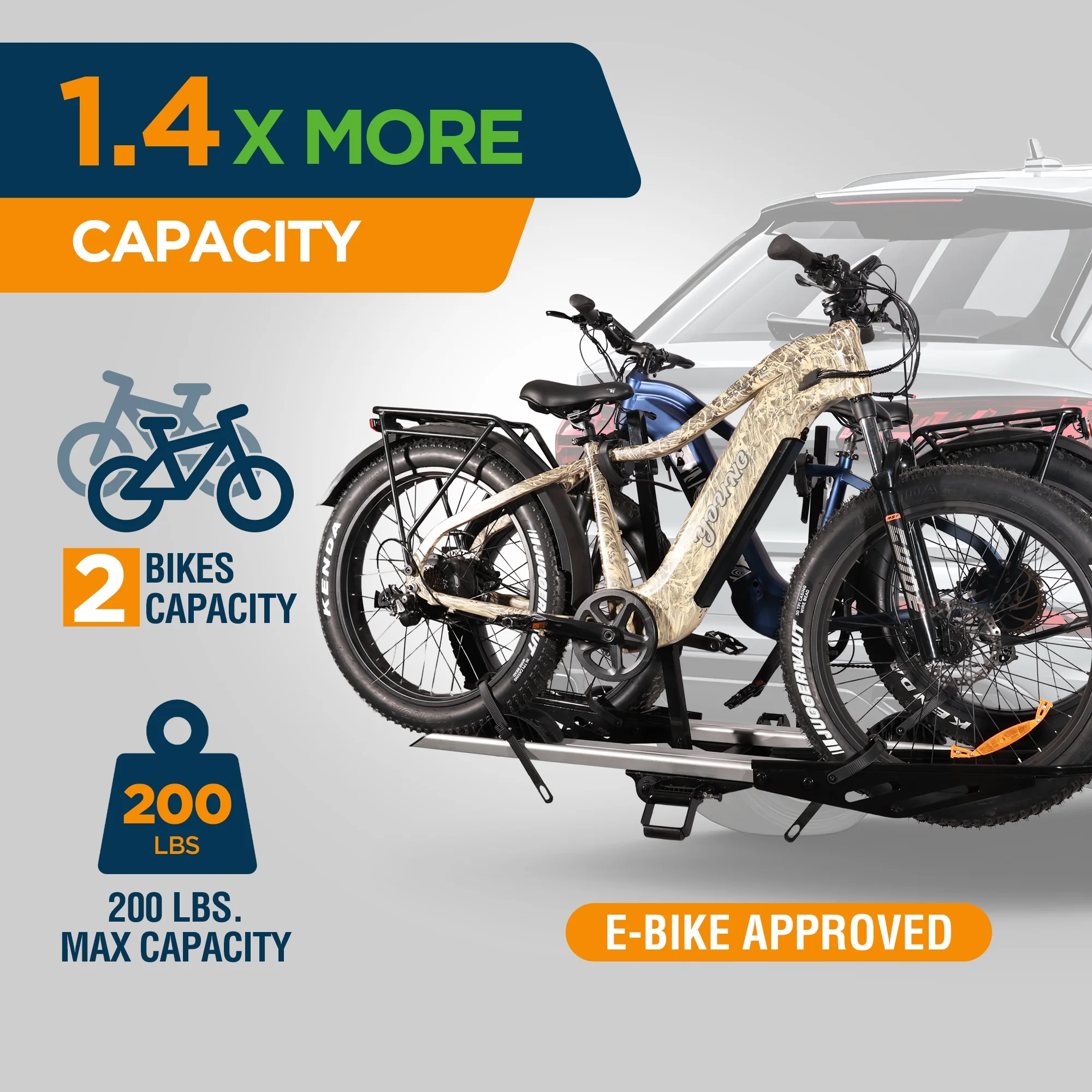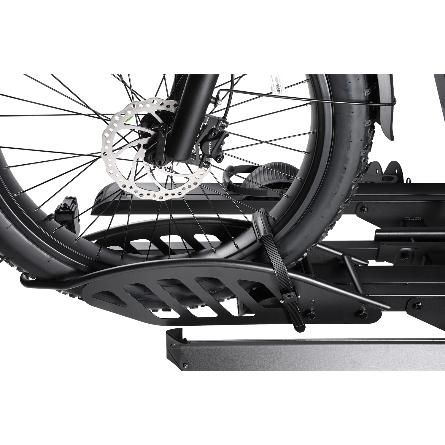 - 200 LB TOTAL CAPACITY: Easily transports up to 2 bikes, with a maximum weight of 100 lbs per bike. The universal tire holders and wheel straps are compatible with mountain bikes, road bikes, and fat tire bikes with tire widths up to 5 inches, fitting tire diameters from 20" to 29" and bikes with a wheelbase up to 58".
