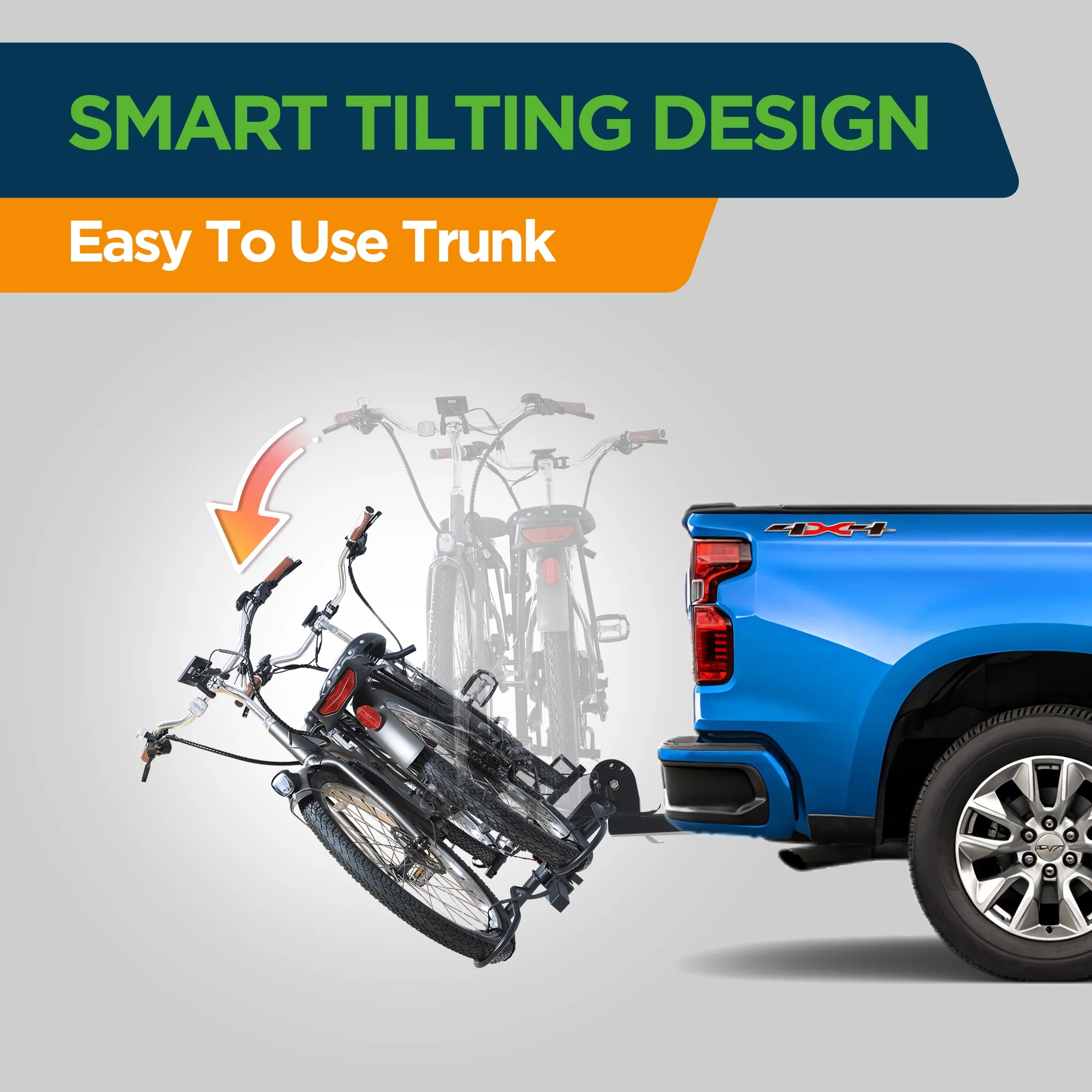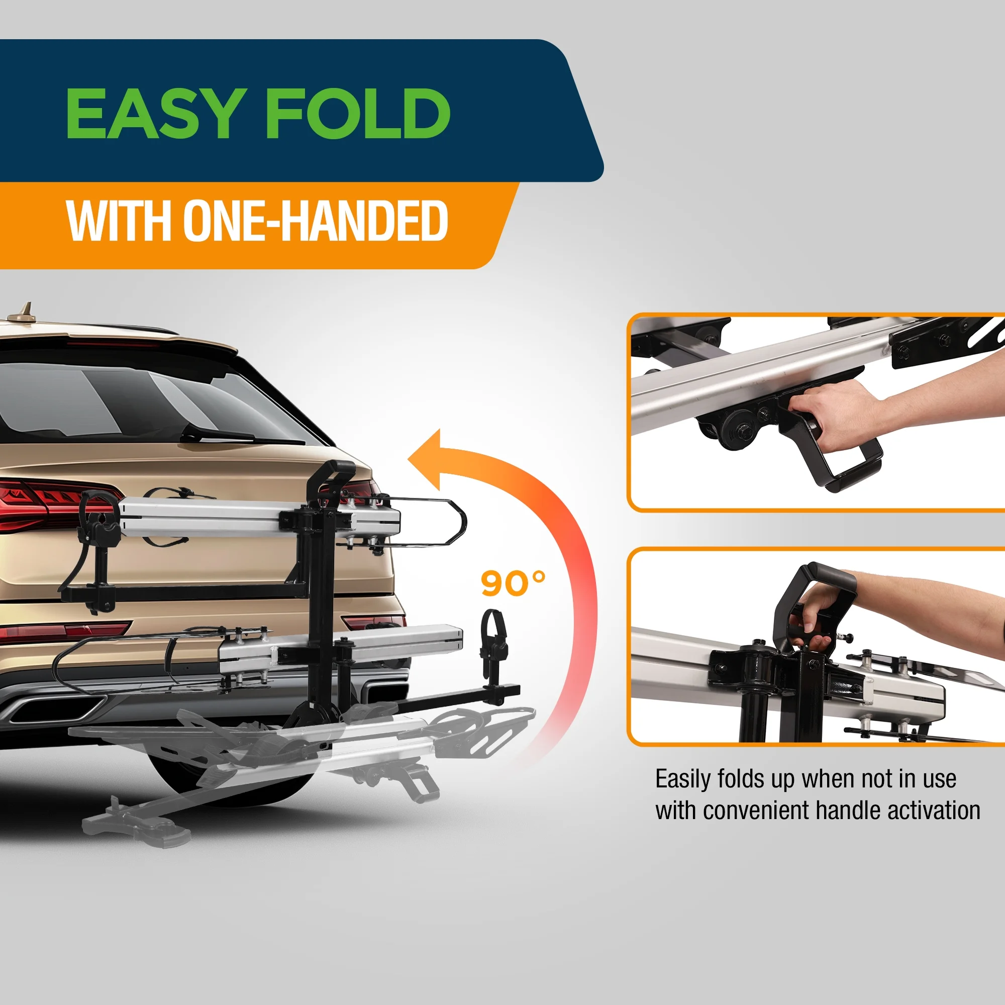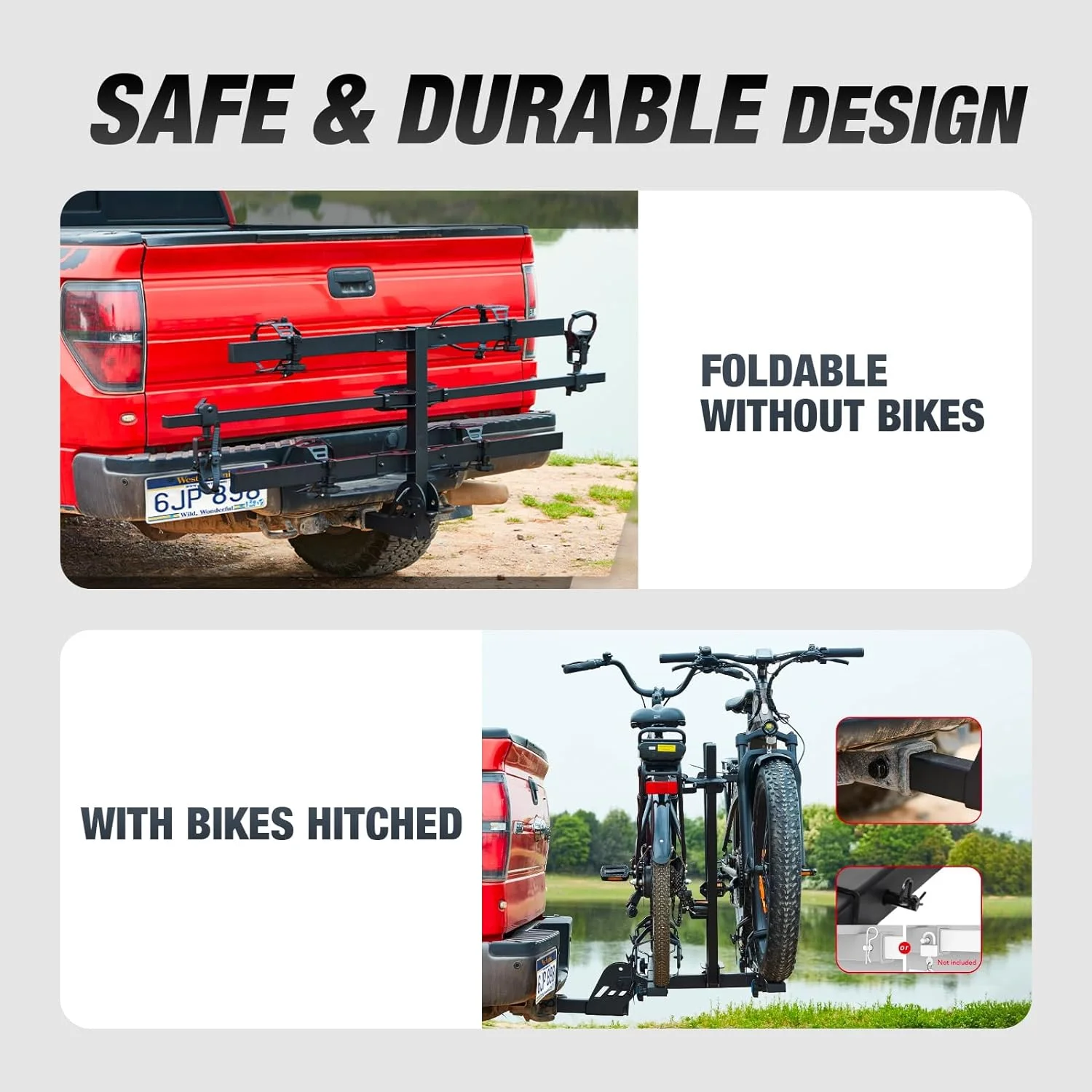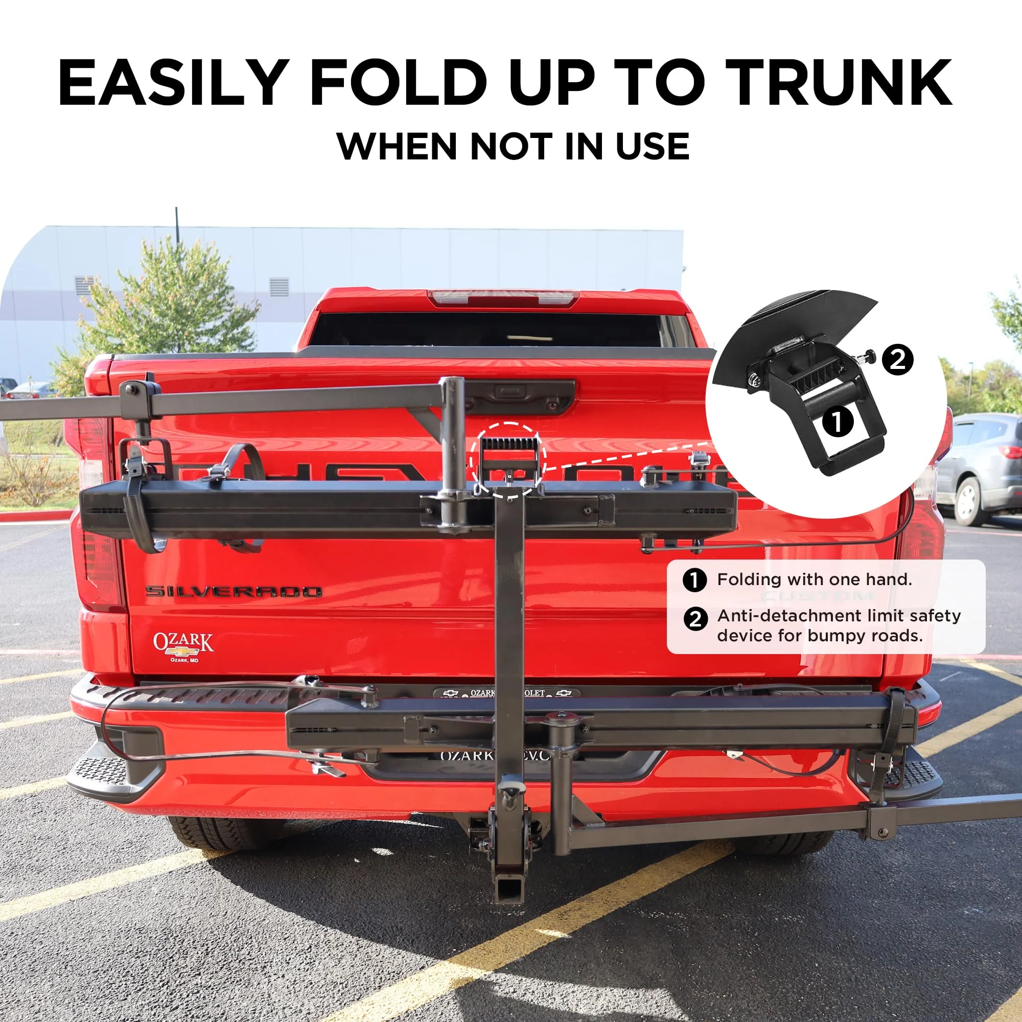 - 85�� + 33�� FOLDABLE & TILT-BACK DESIGN: Users can fold up this rack to save space when not in use, convenient for garage parking. Quick release tilting down feature allows easy access to trunk without detaching the hitch rack.