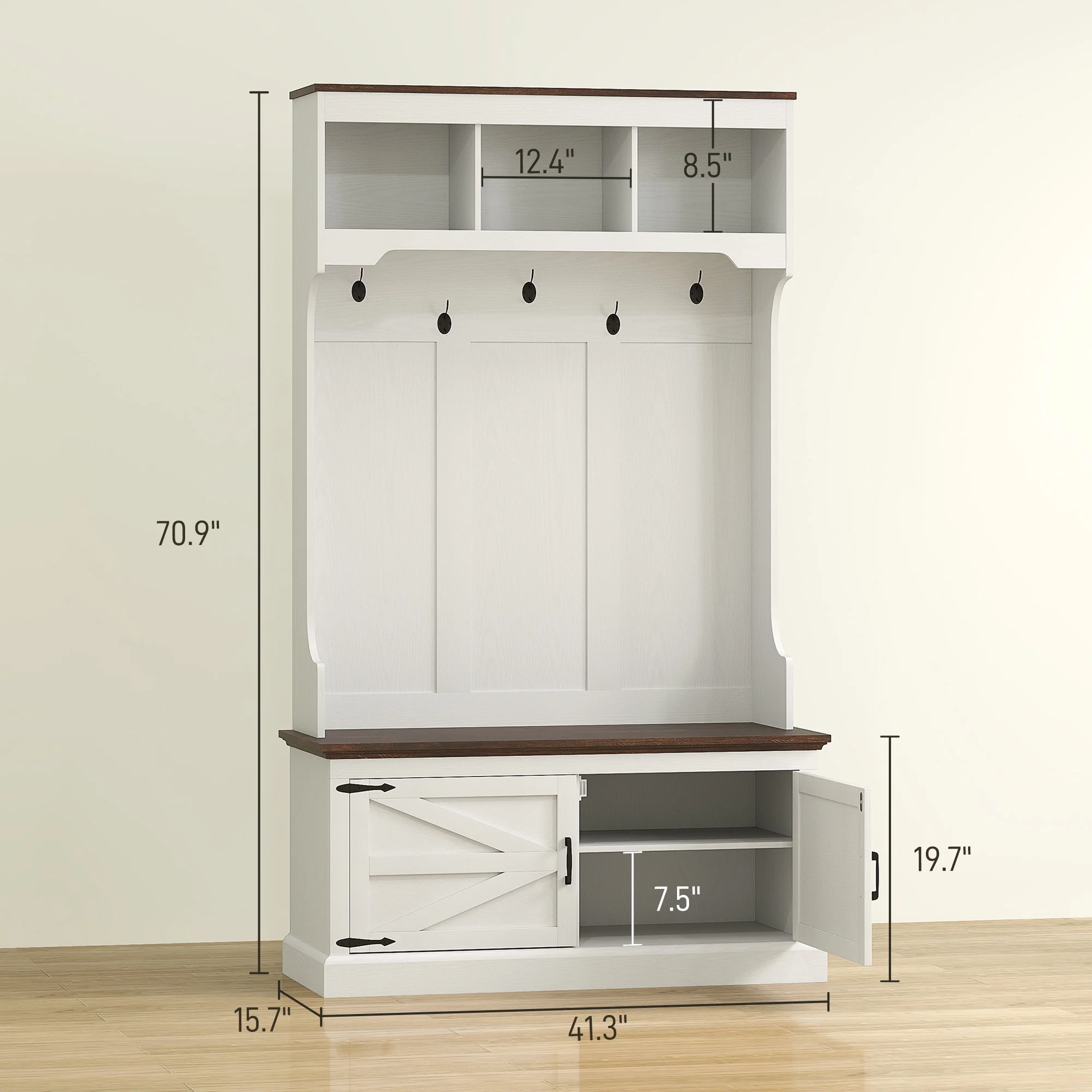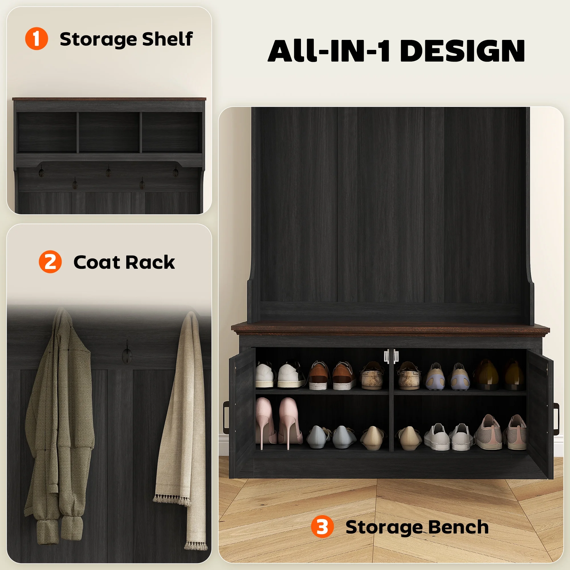 - Safe Standing: Our hall tree bench with shoe storage has an anti-tipping device on the back, so you can attach it to the wall, ensuring it won't fall over.
