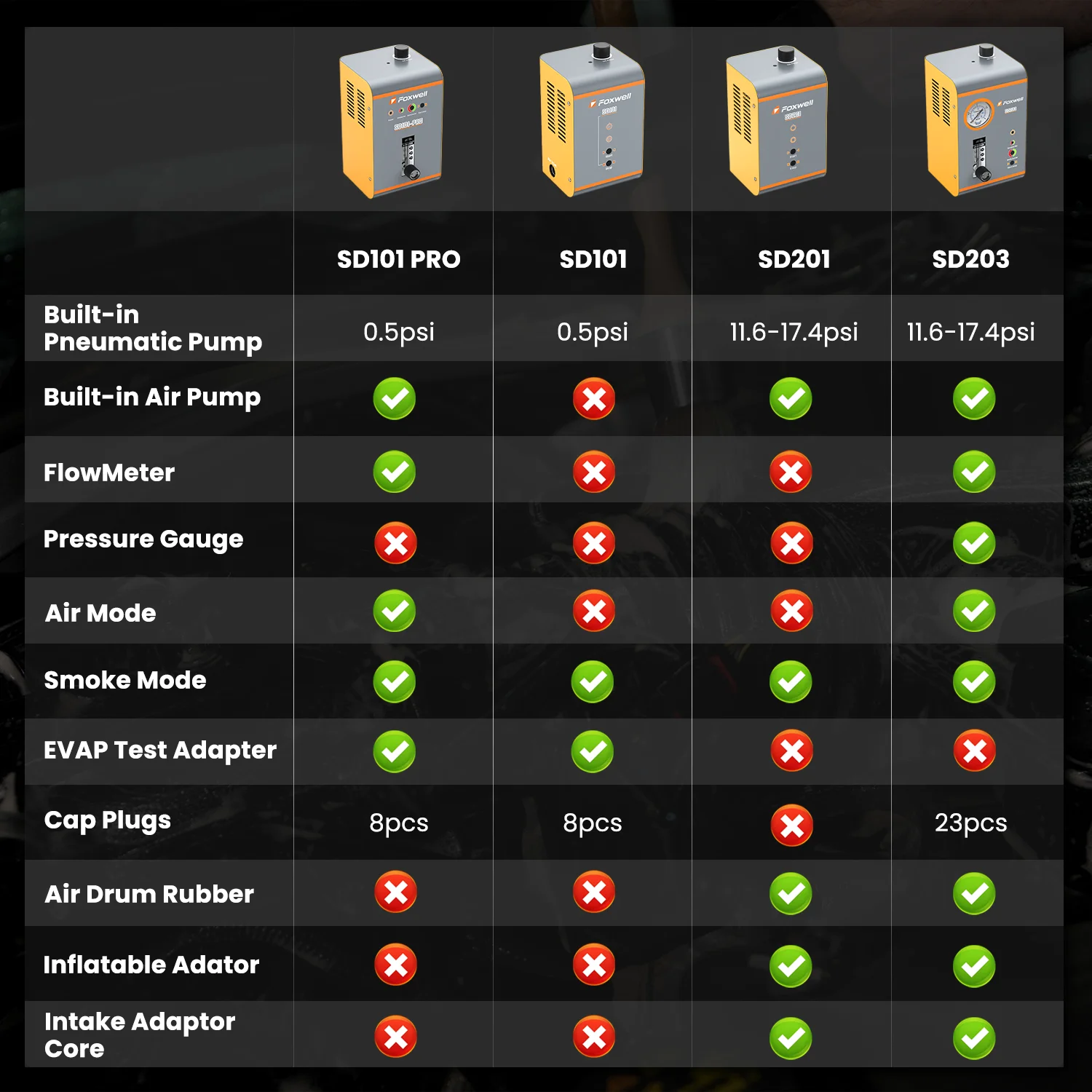 - ??��Built-In Air Pump��: No air compressor needed. Just connect staright to your vehicle's 12V battery and generate. The SD203 has an integrated air pump that produces dense smoke in just 10 seconds. Weighing only 5.5 lbs and featuring one-button operation, it's perfect for both DIYers and shop use.