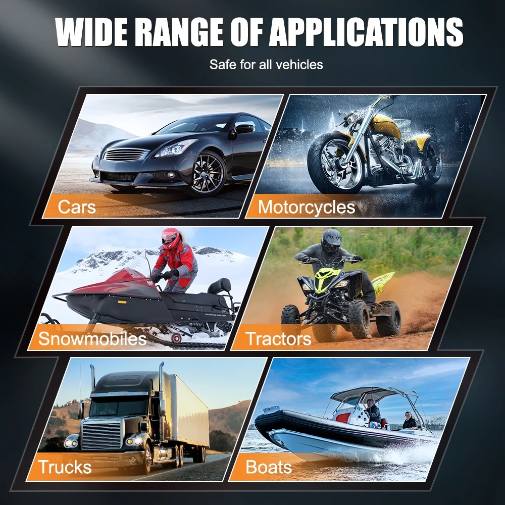 - ??��Wide Coverage��: Suitable for all domestic cars, motorcycles, snowmobiles, off-road vehicles, beaches. Cars, light trucks and speedboats, etc. Using together with automotive diagnostic tool, you can find the vehicle problem accurately and diagnose fault.