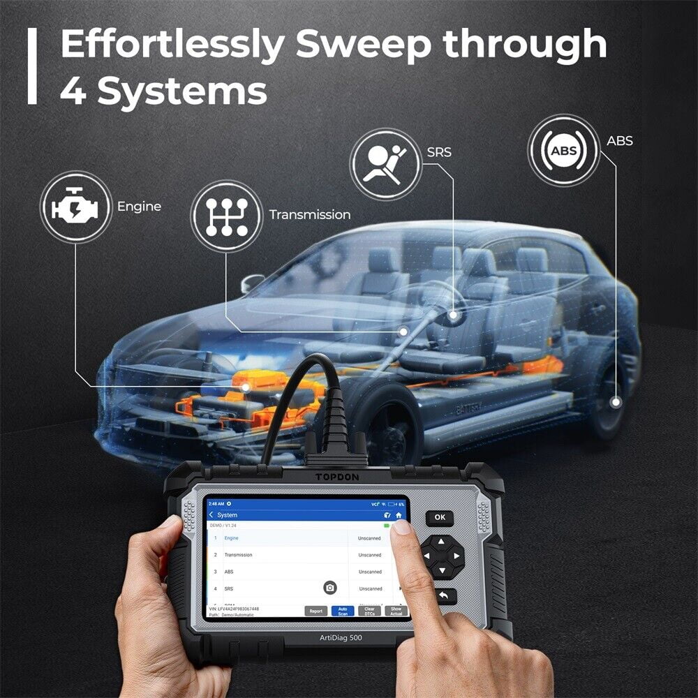 The AD500 offers in-depth diagnostics for engine, transmission, ABS, and SRS systems, reads fault codes and data streams, and displays real-time data in chart form for simplified storage and playback, aiding DIY users in quickly pinpointing issues.