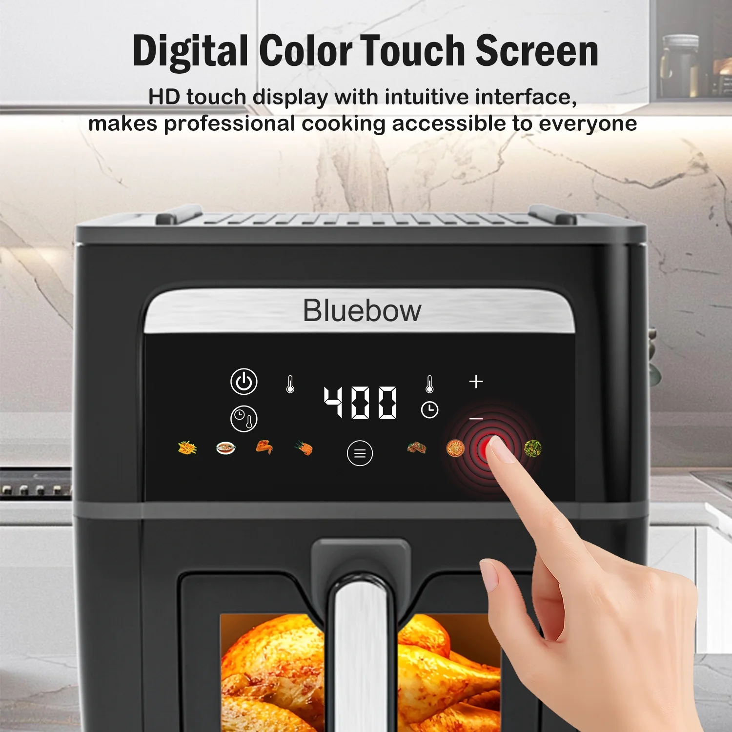 - Large Capacity&View Window: The generous 9QT capacity provides ample space for family-sized meals or entertaining guests. You can easily monitor your food's progress through the clear viewing window without heat dissipation.